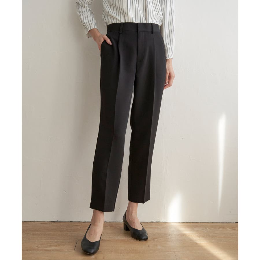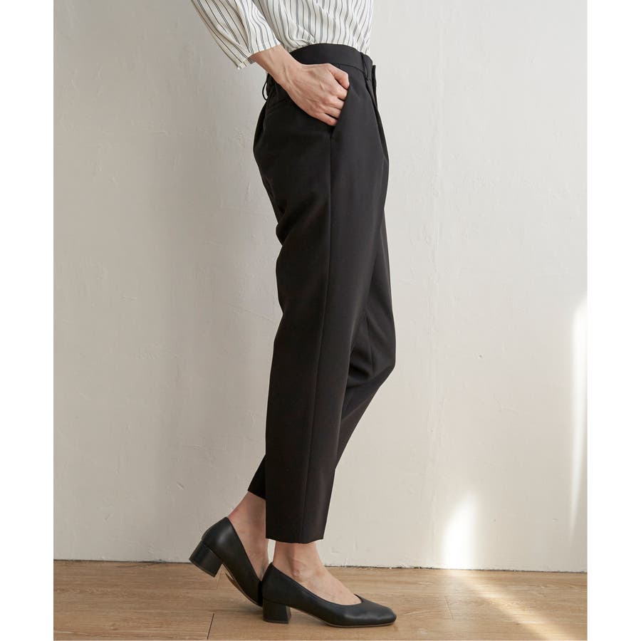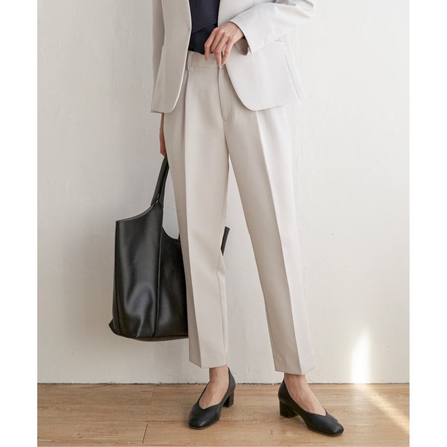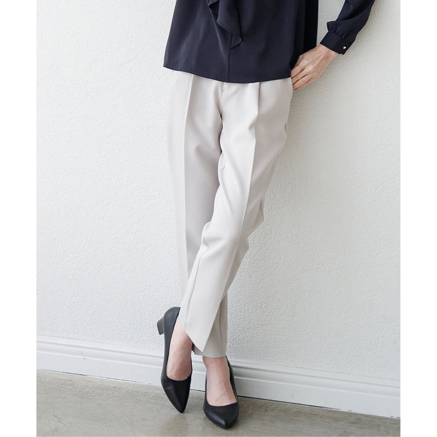 フォーマルシーンからビジネスシーンまでこなすきれい目テーパードパンツ。