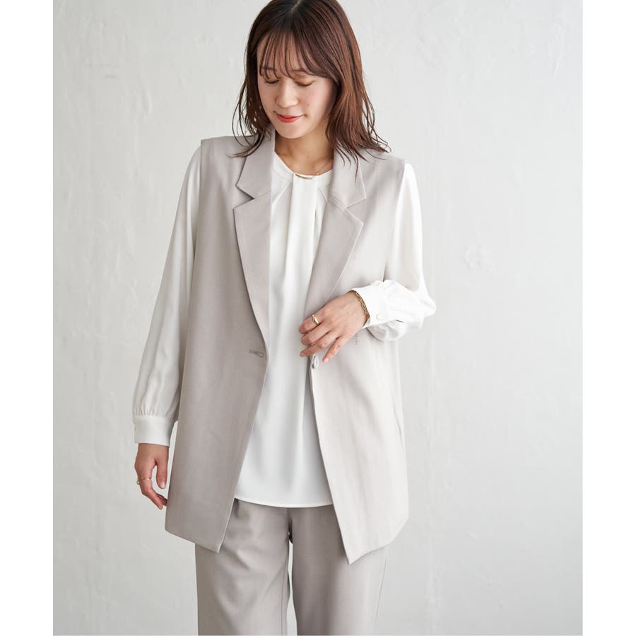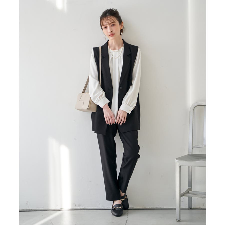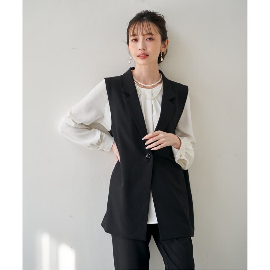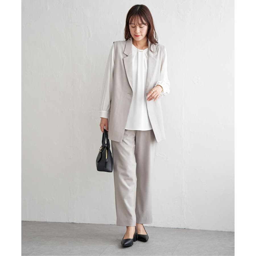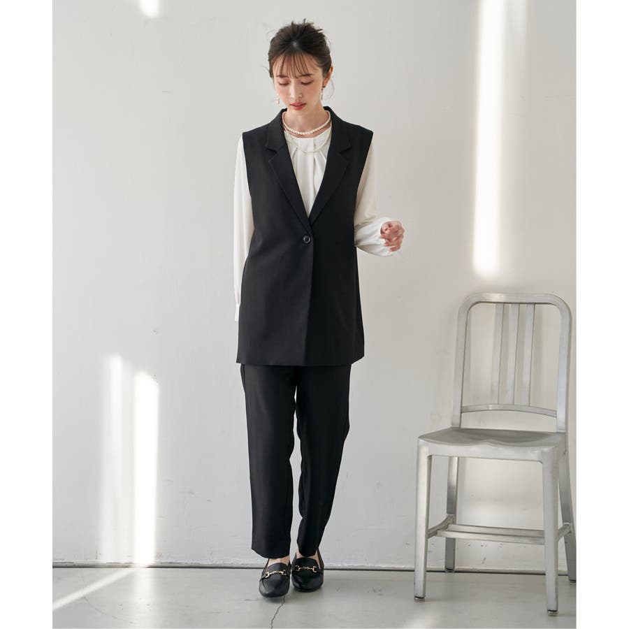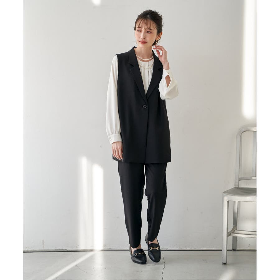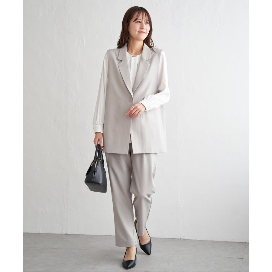 テーラードカラーのジレ・きれいめブラウス・パンツが揃った、上品な印象のセットアップ3点セット。