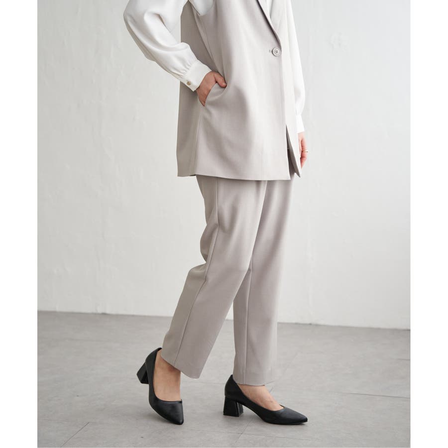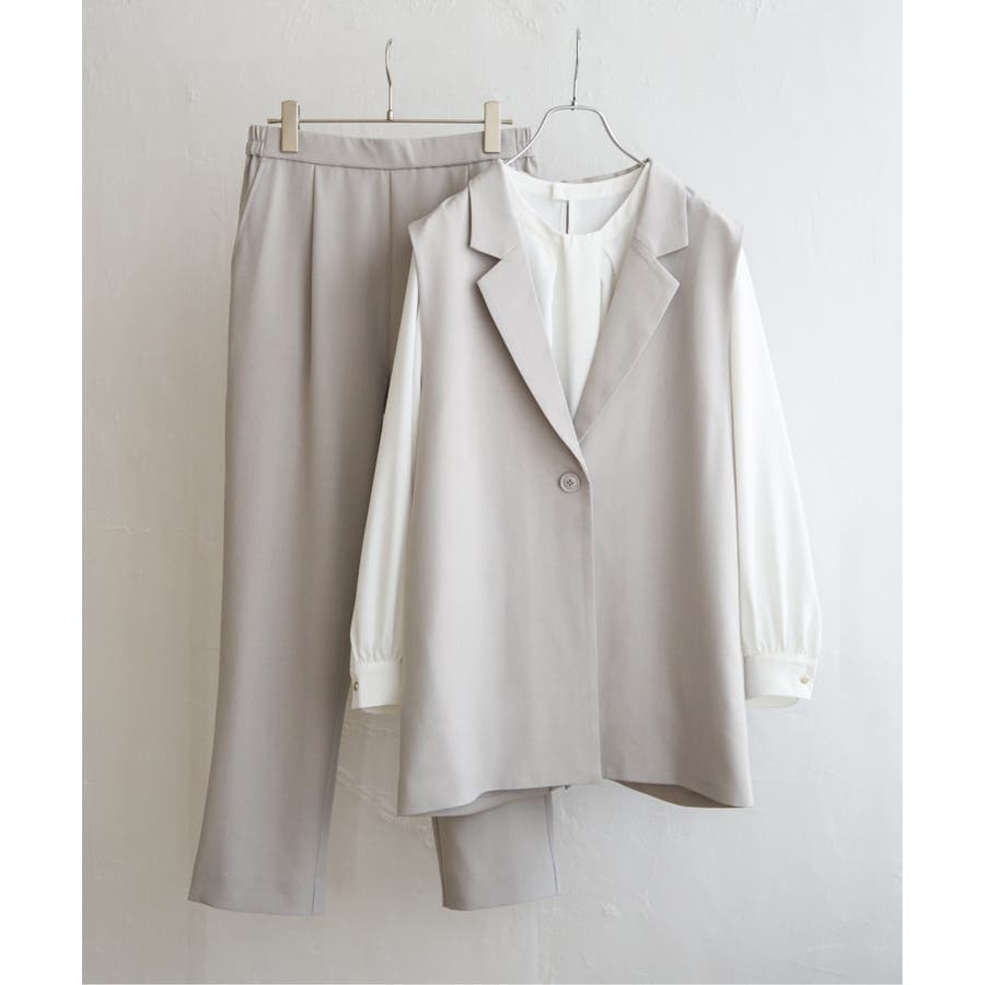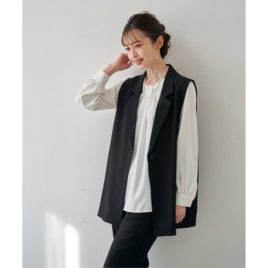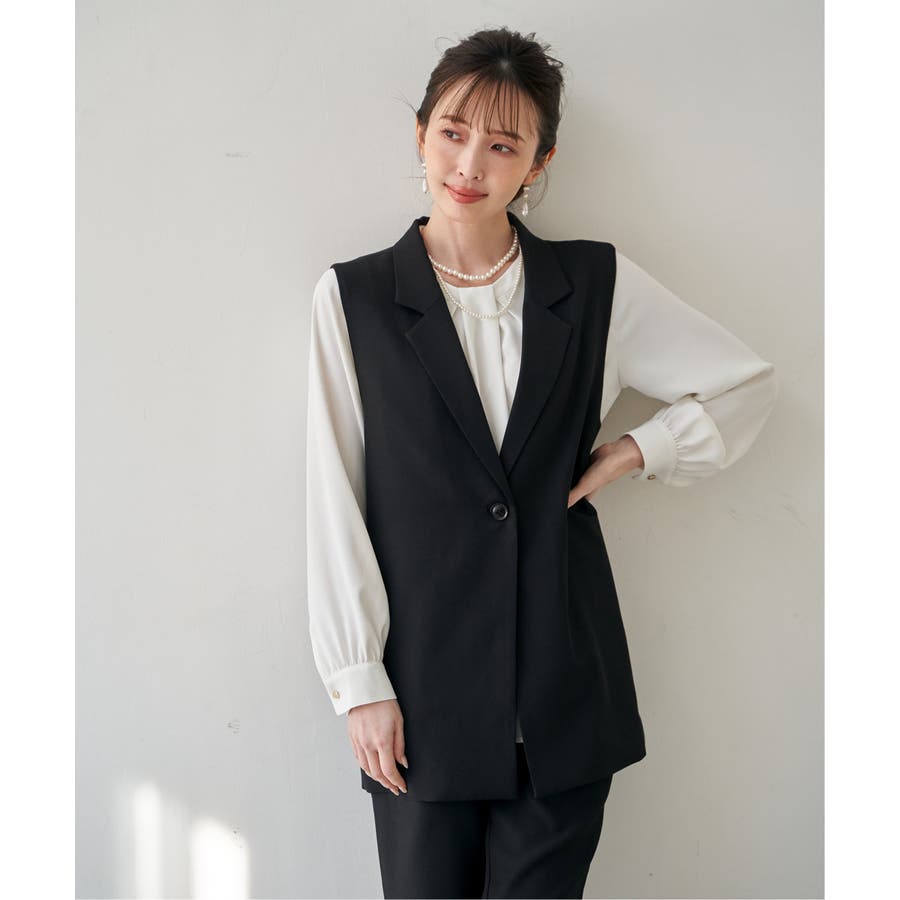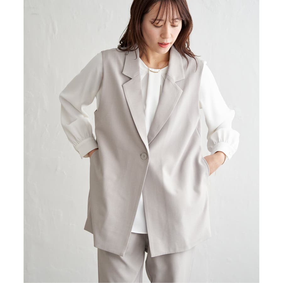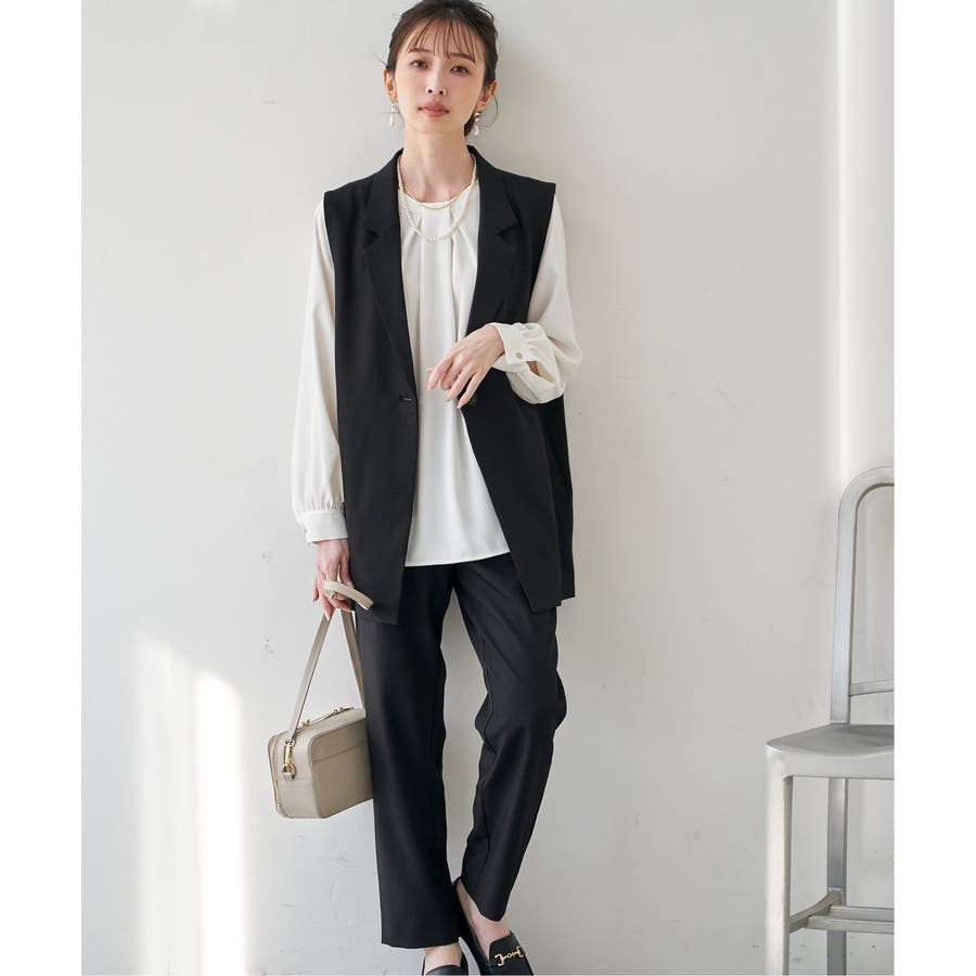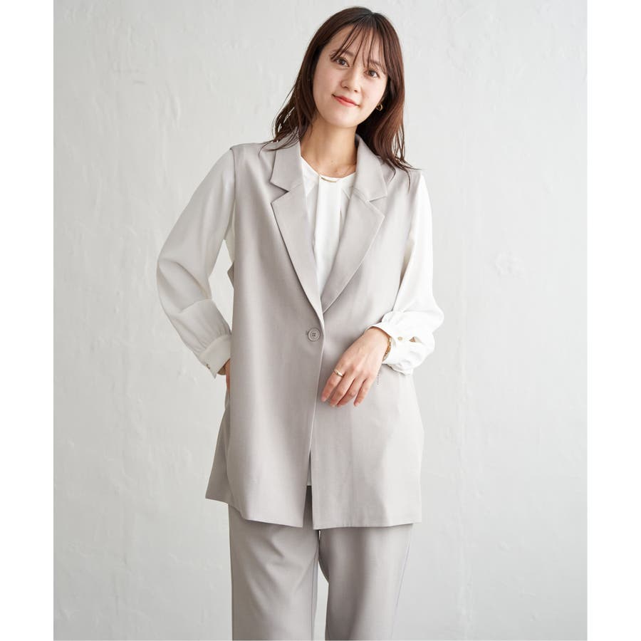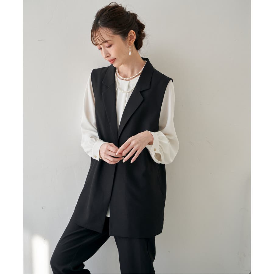 テーラードカラーのジレ・きれいめブラウス・パンツが揃った、上品な印象のセットアップ3点セット。