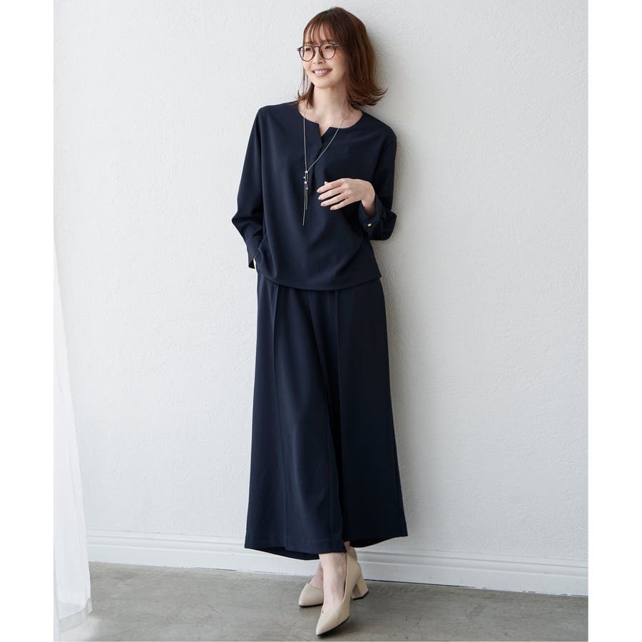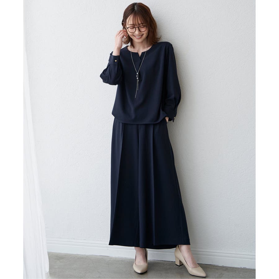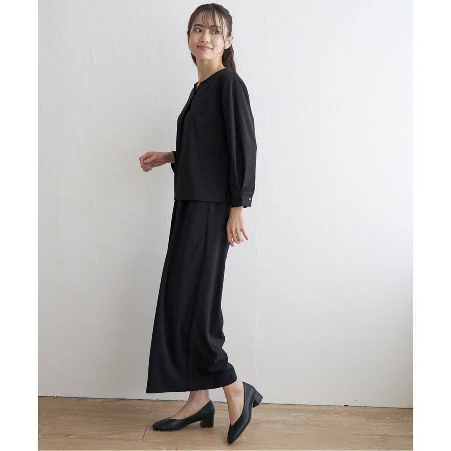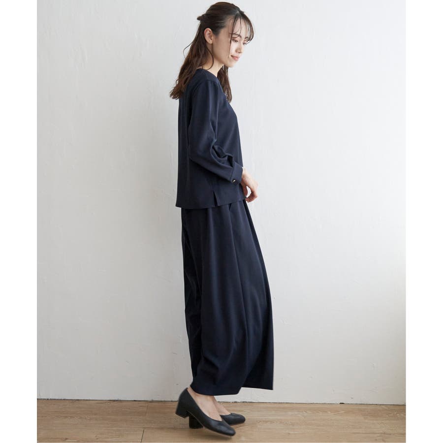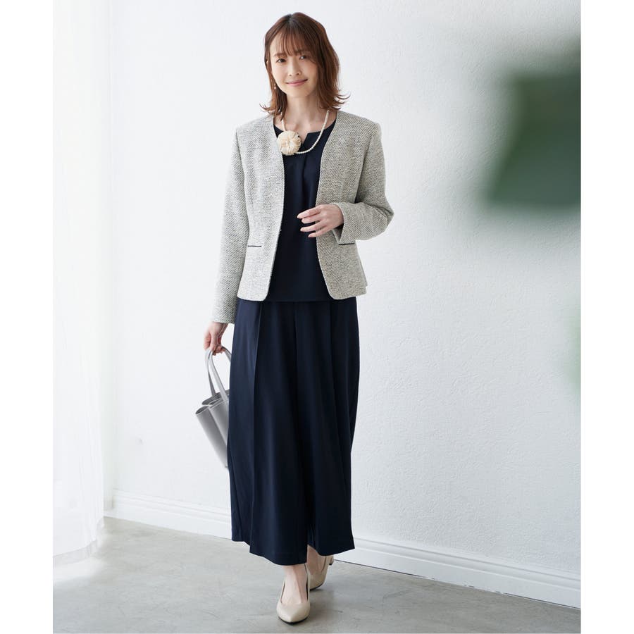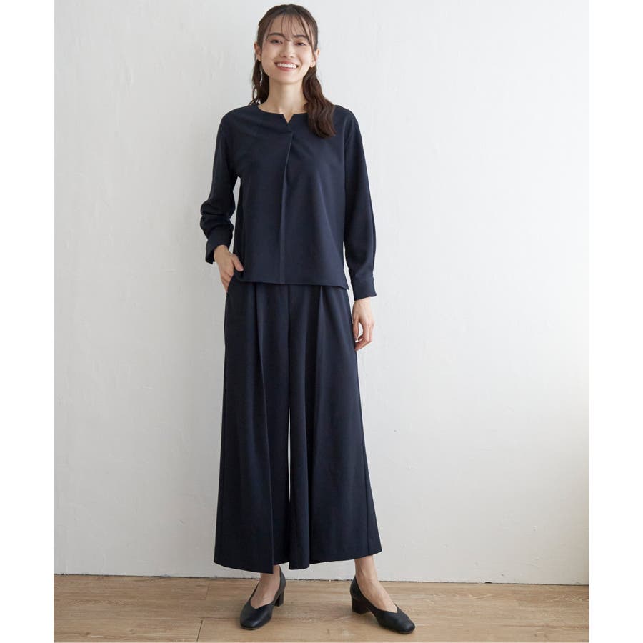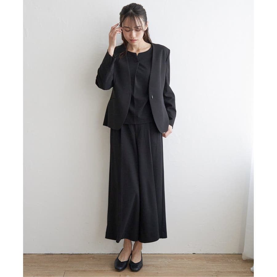 通勤やちょっとしたお呼ばれ、学校行事などにも着て行けるフレアパンツ型のセットアップ。