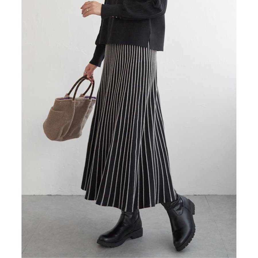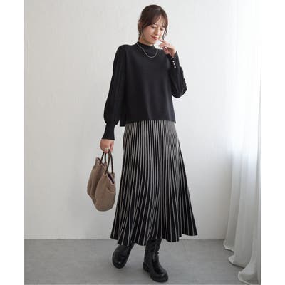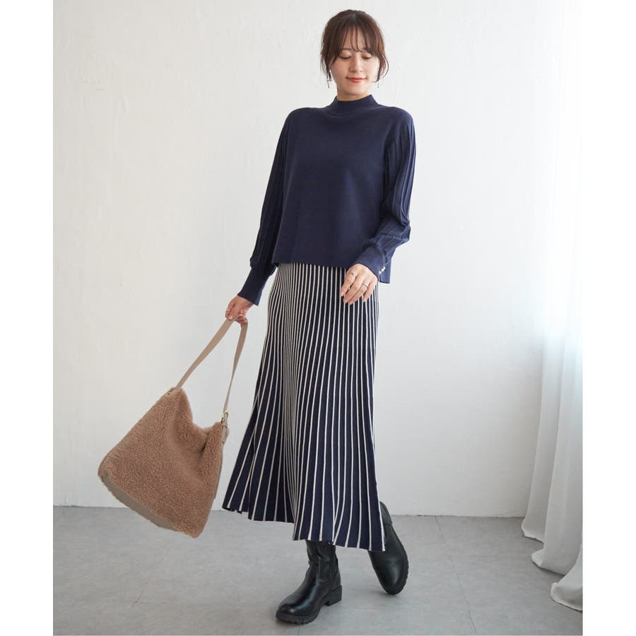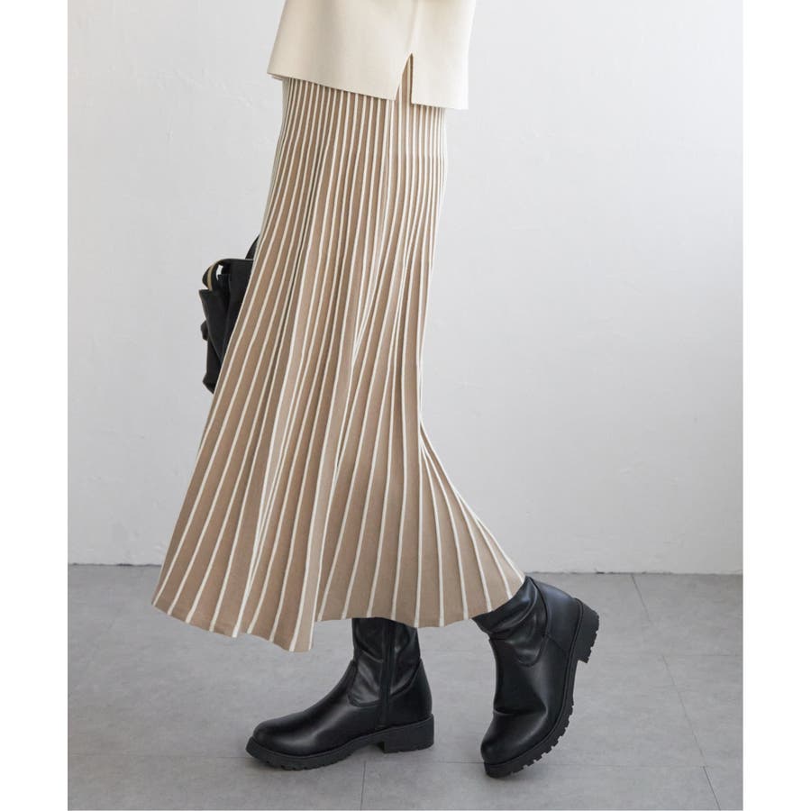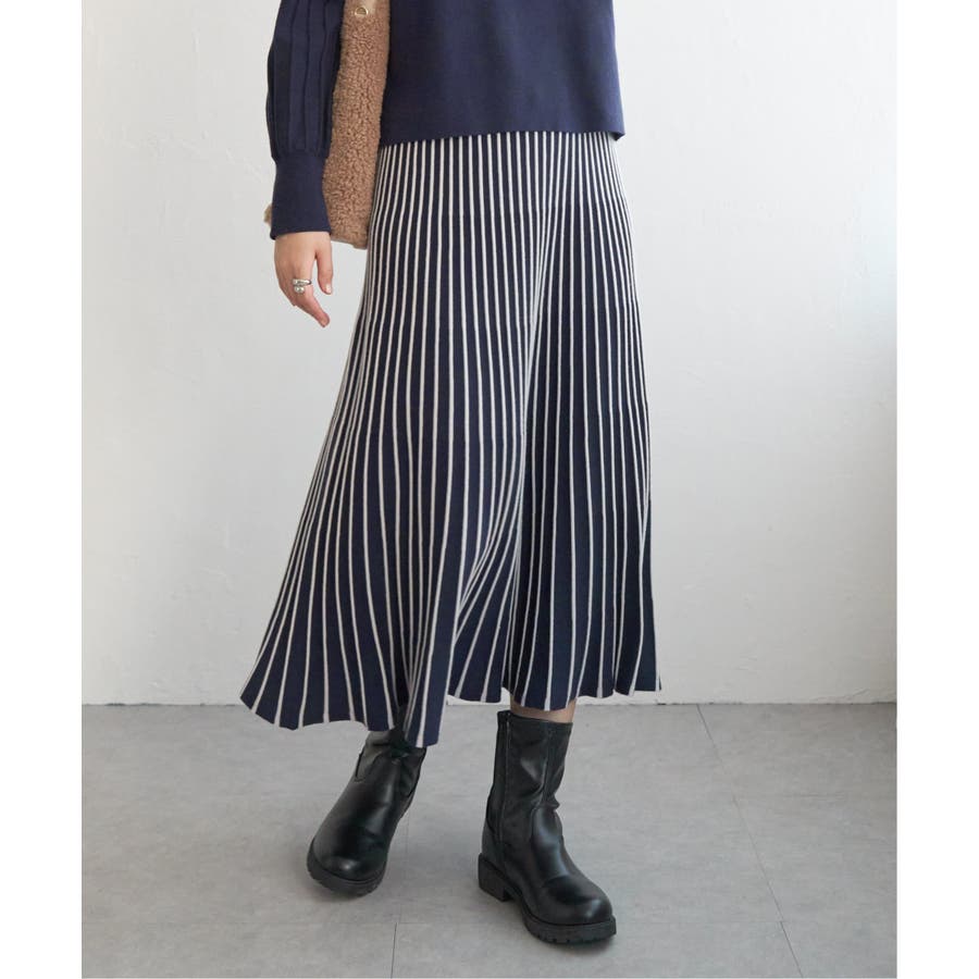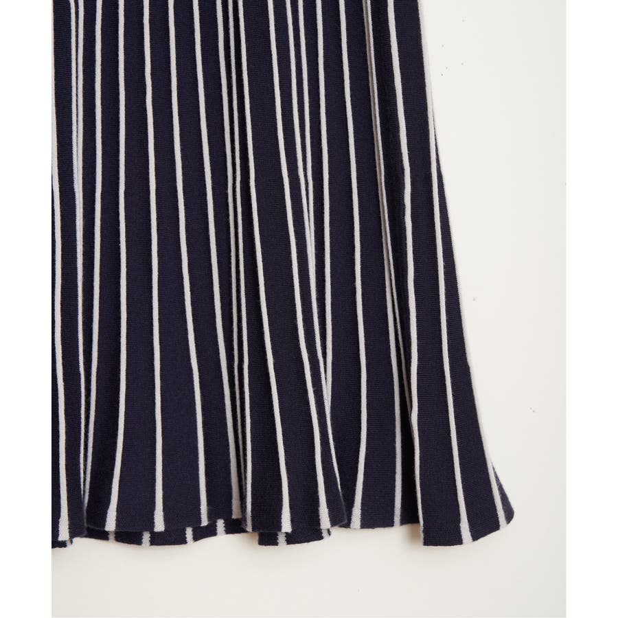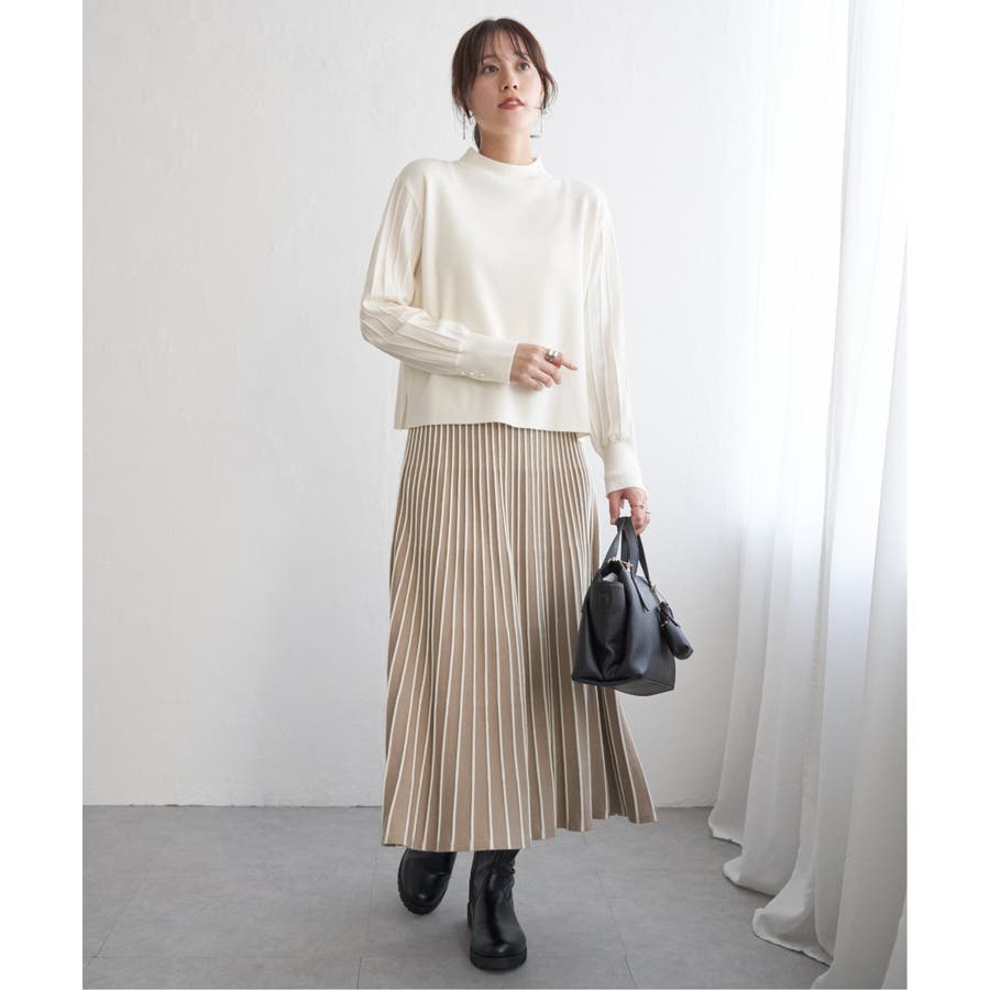 スカートはプリーツ風の編地が特徴で、歩くたびに軽やかに揺れるフレアシルエットが魅力です。