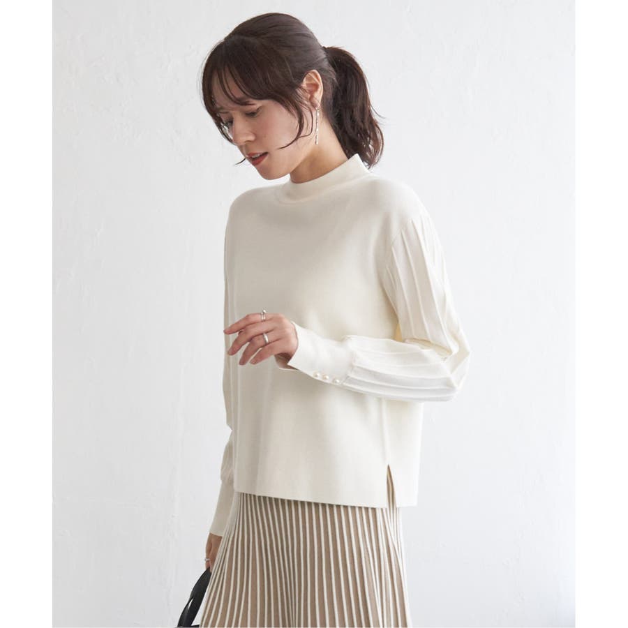・袖にもプリーツ見えする編地を入れて、上下デザインのリンク感を高めました