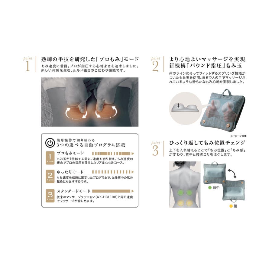 さらに薄さ約11cmで、座り心地に影響しない快適なもみ心地を叶えたルルドのマッサージクッションです。