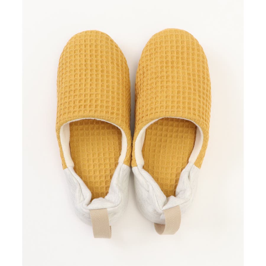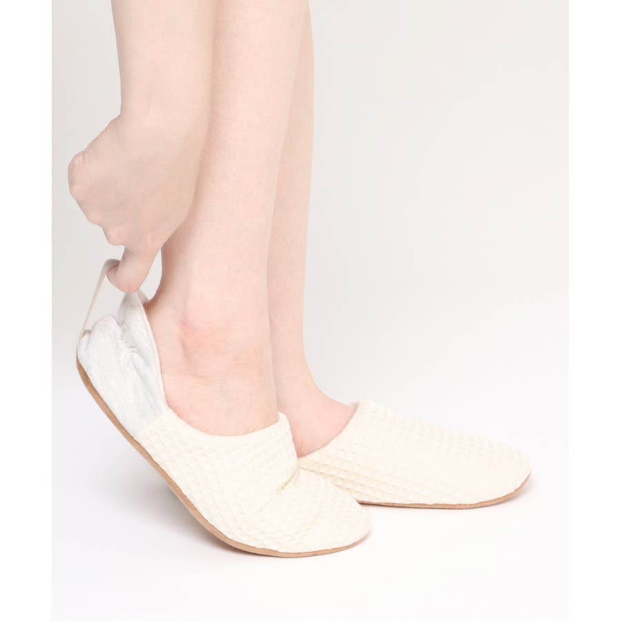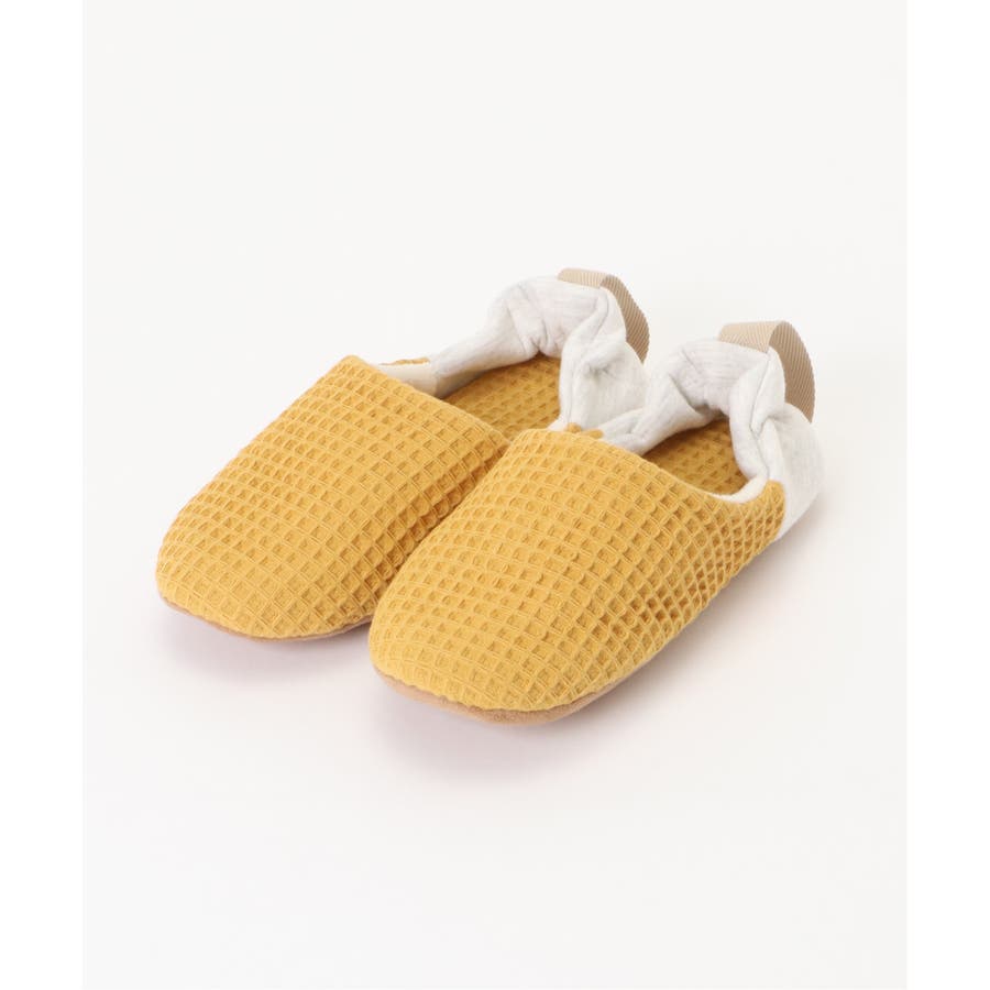 「脱げにくく、履きやすい」ワッフル素材のバブーシュ。
