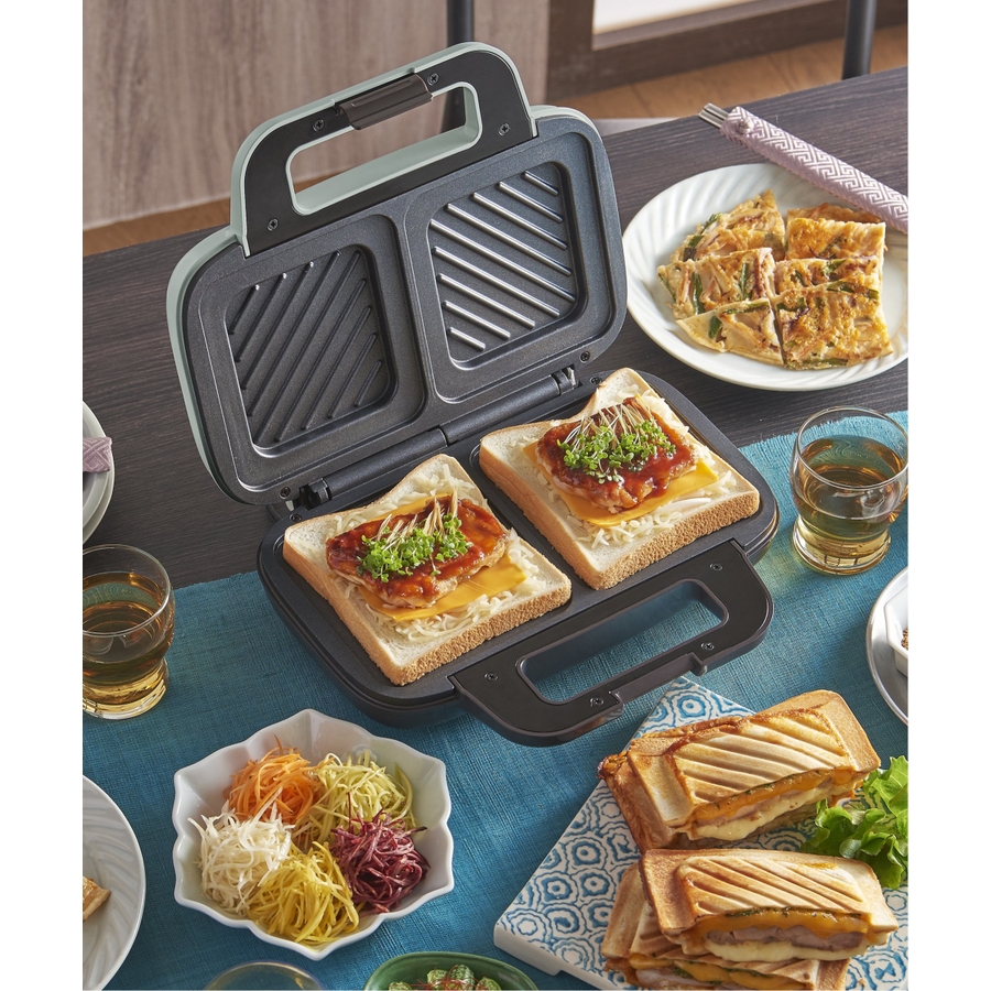 ミミまでカリッと焼ける、ファミリーにも最適な2枚焼きホットサンドメーカーです。