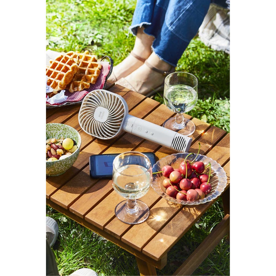 なんとスマートフォンと連携することで、涼みながら好きな音楽を屋内外問わず楽しめます。