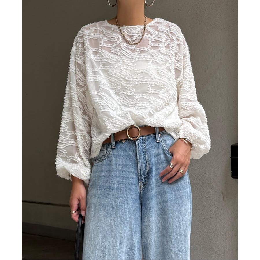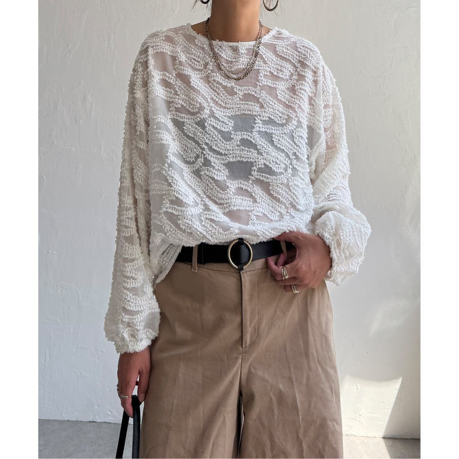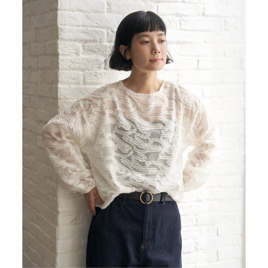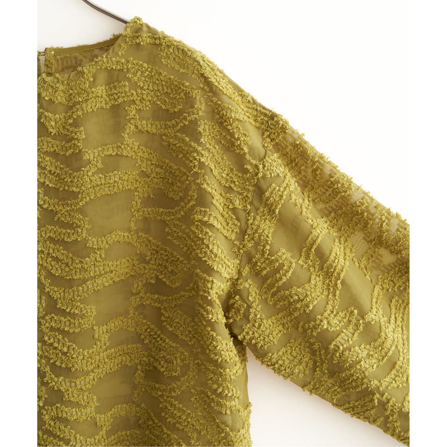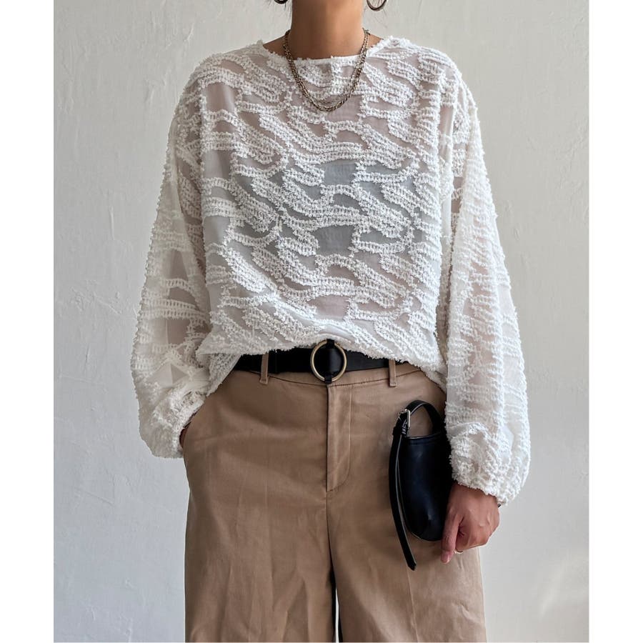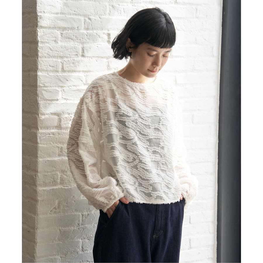波のような模様のカットジャカードが印象的なシアーブラウス。