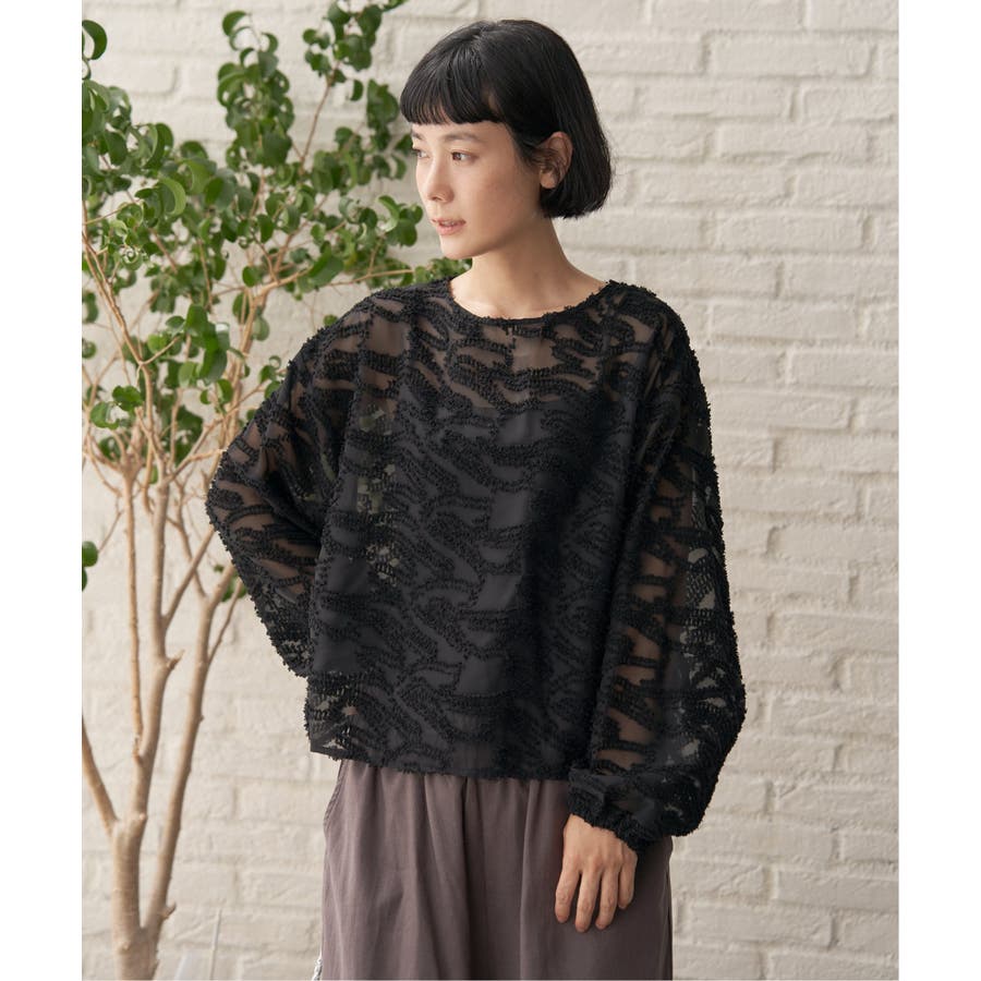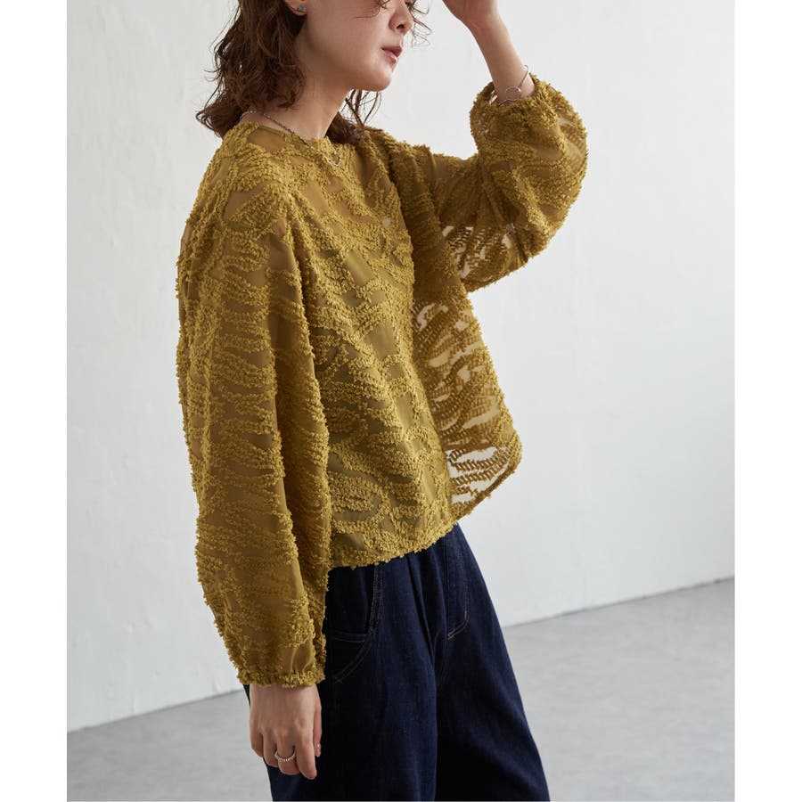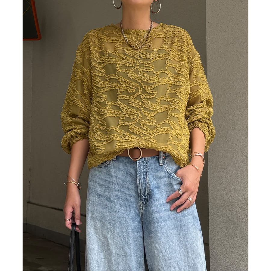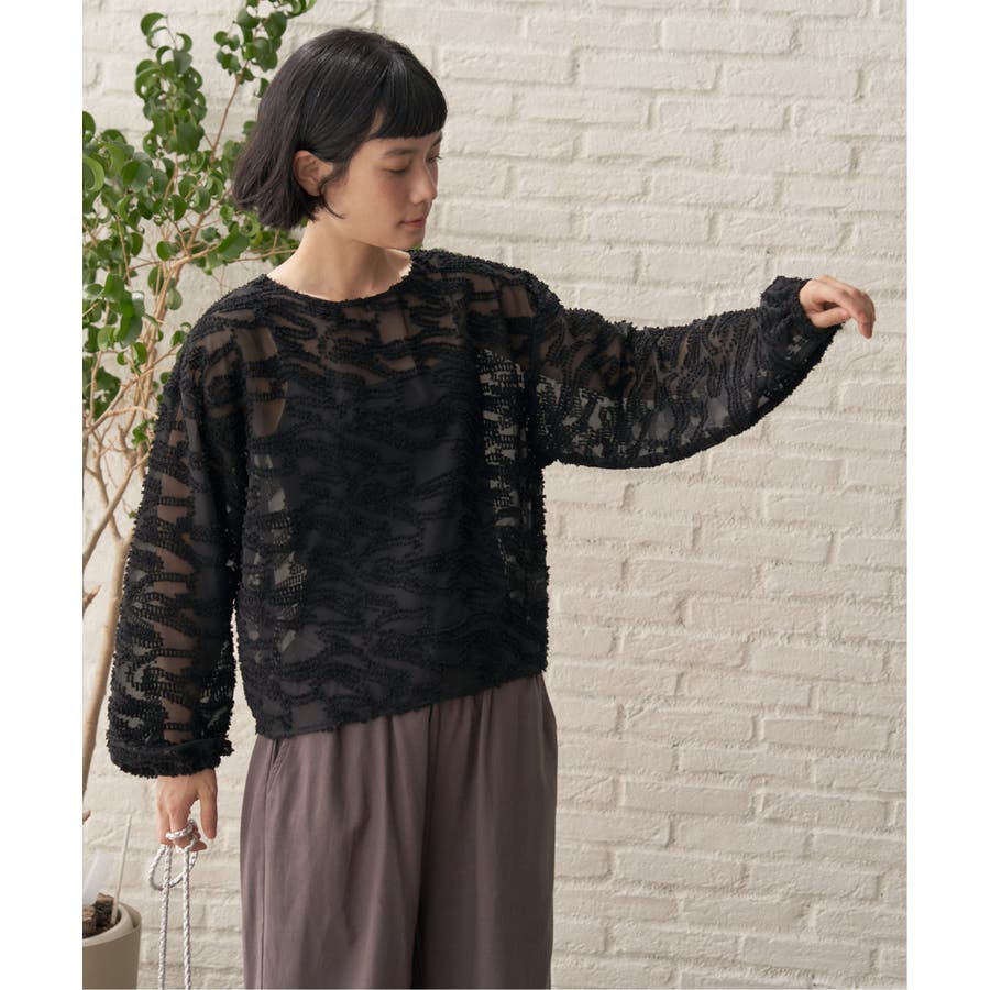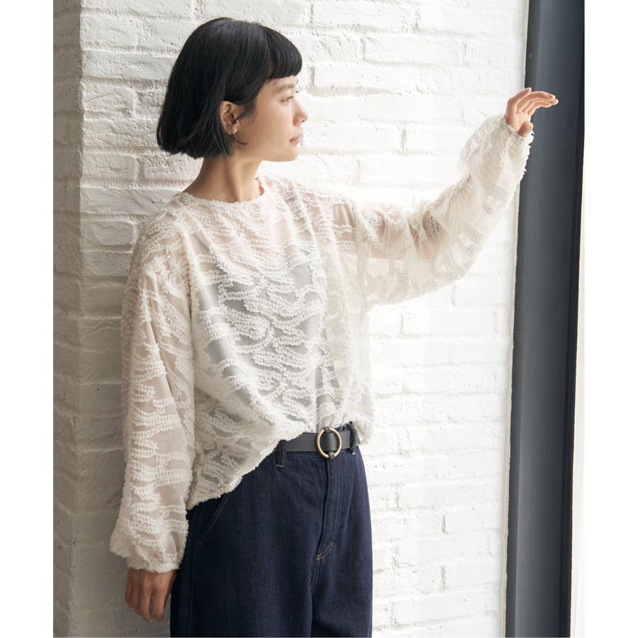 波のような模様のカットジャカードが印象的なシアーブラウス。