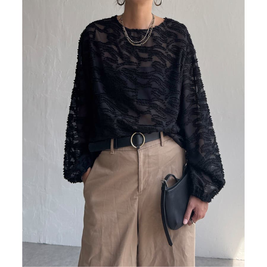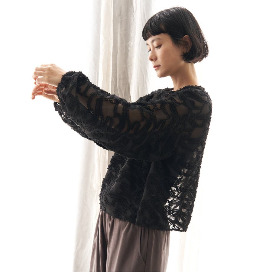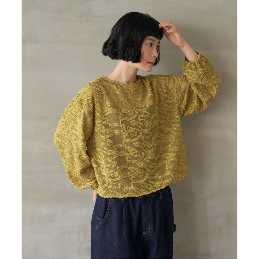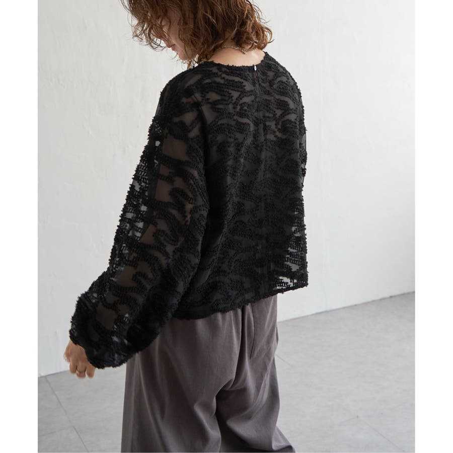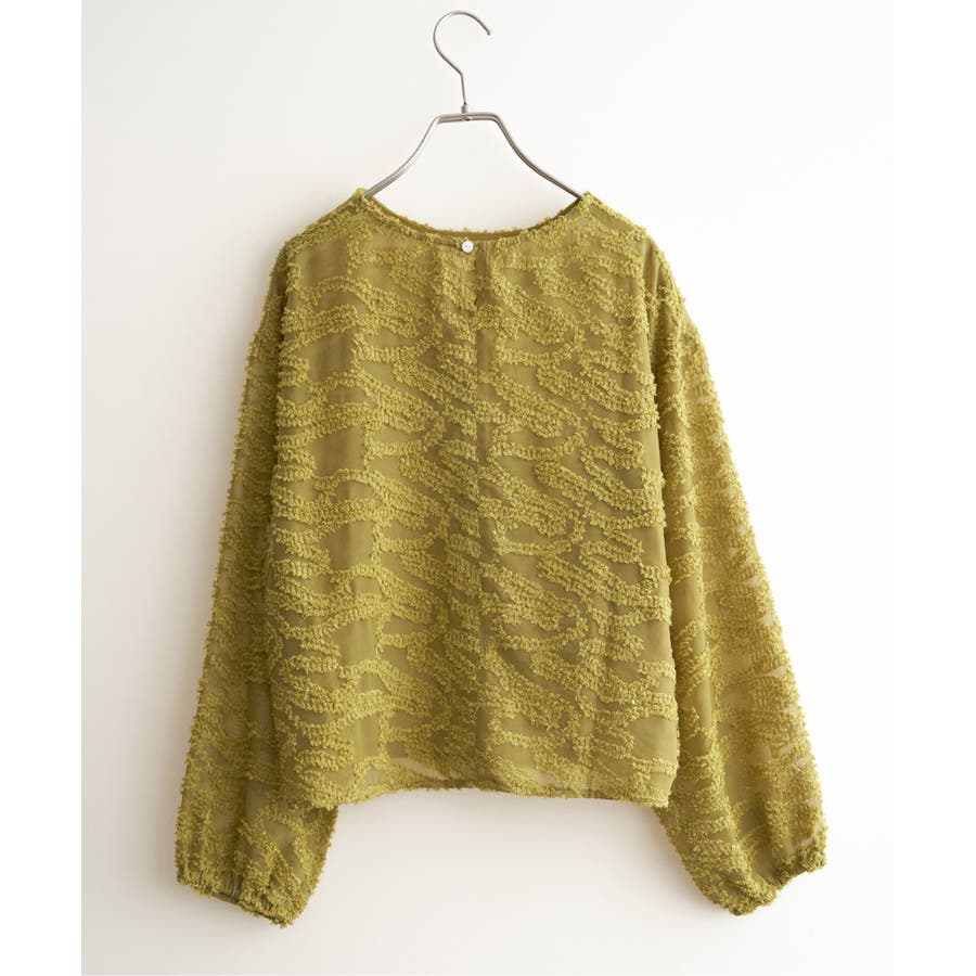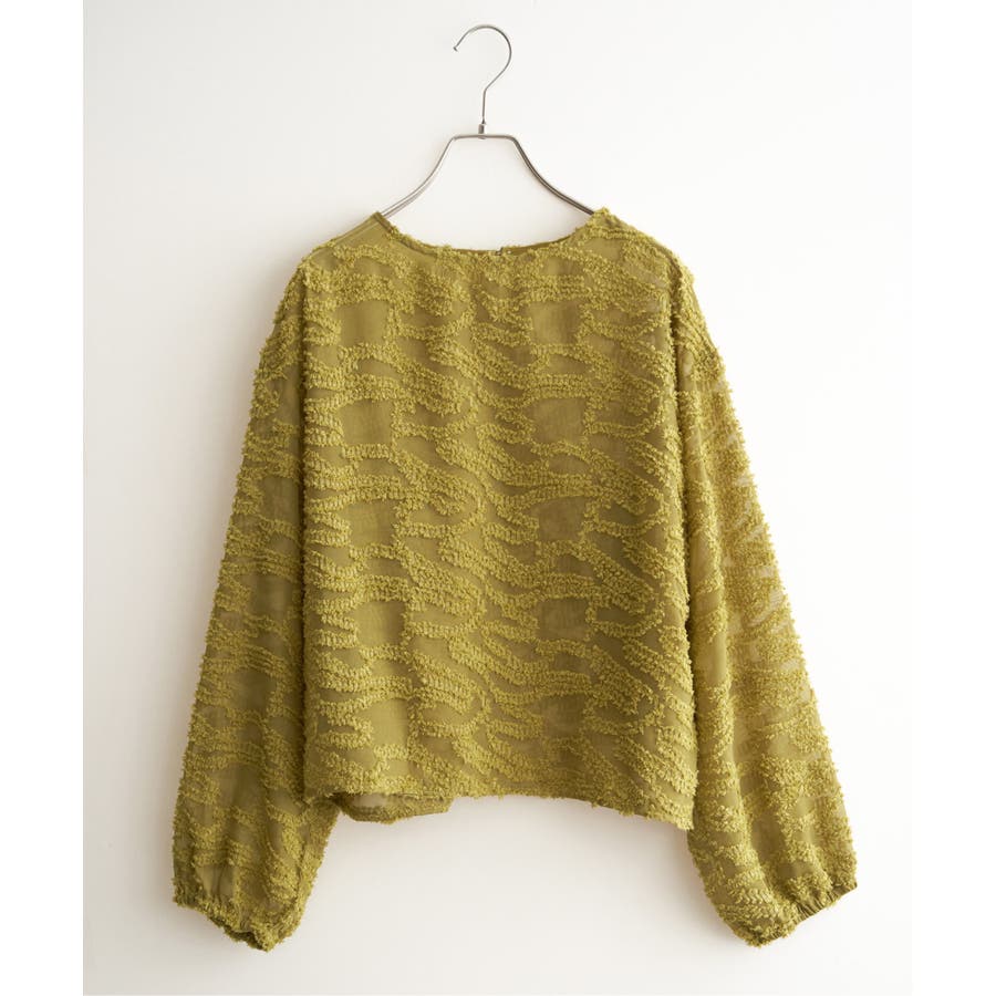 波のような模様のカットジャカードが印象的なシアーブラウス。