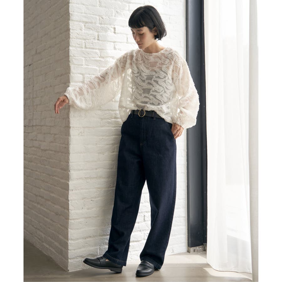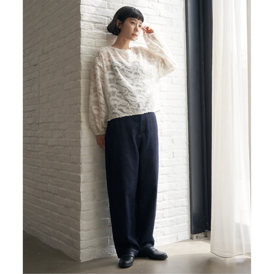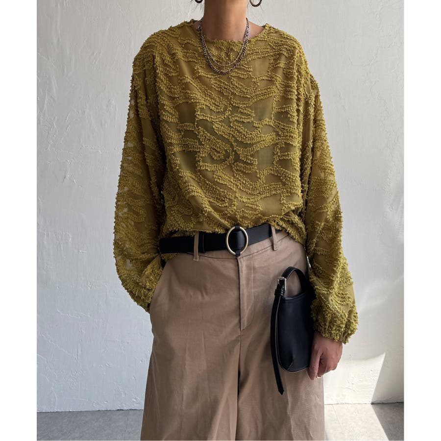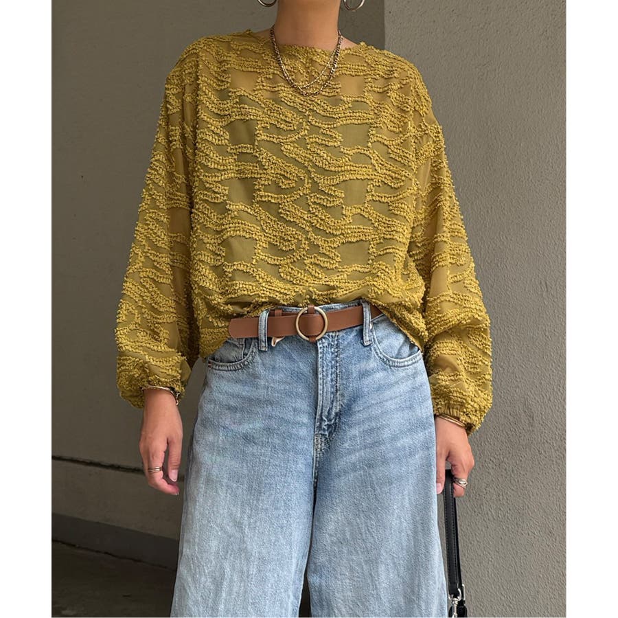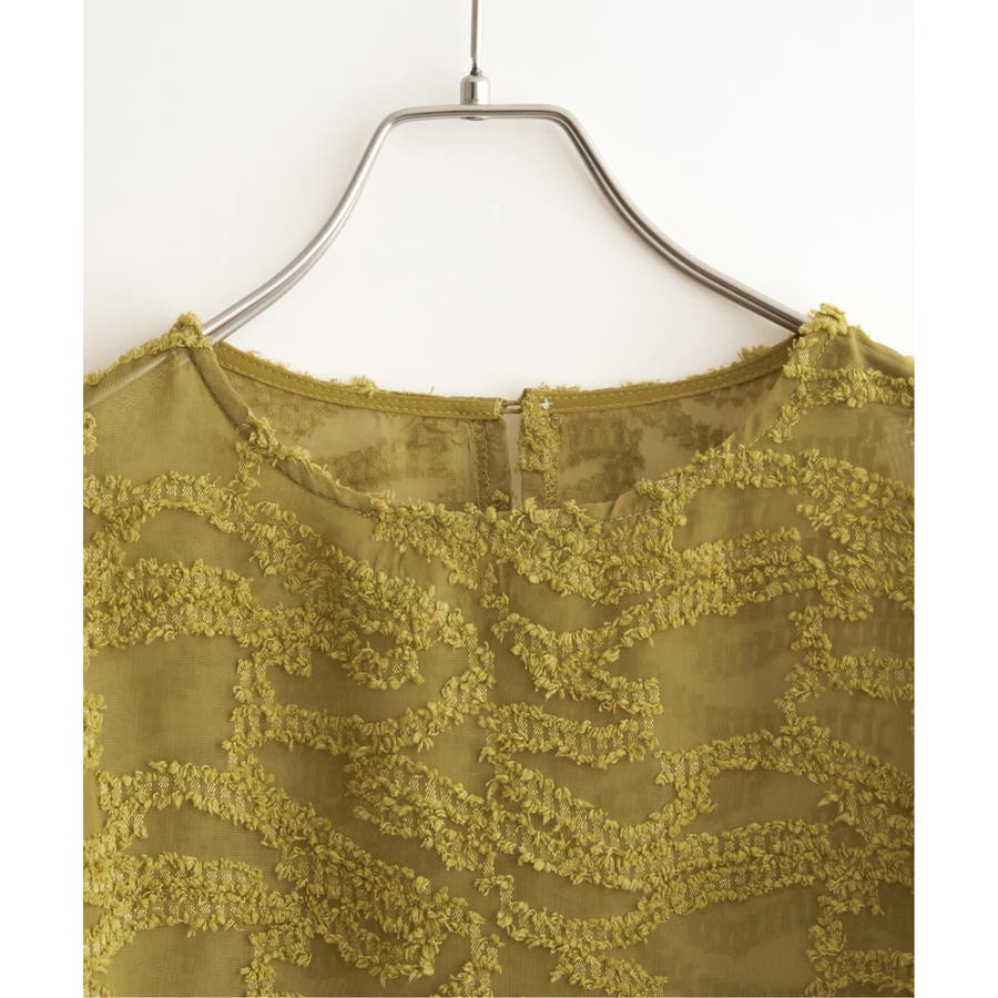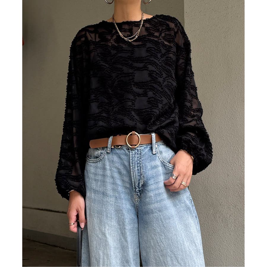 波のような模様のカットジャカードが印象的なシアーブラウス。
