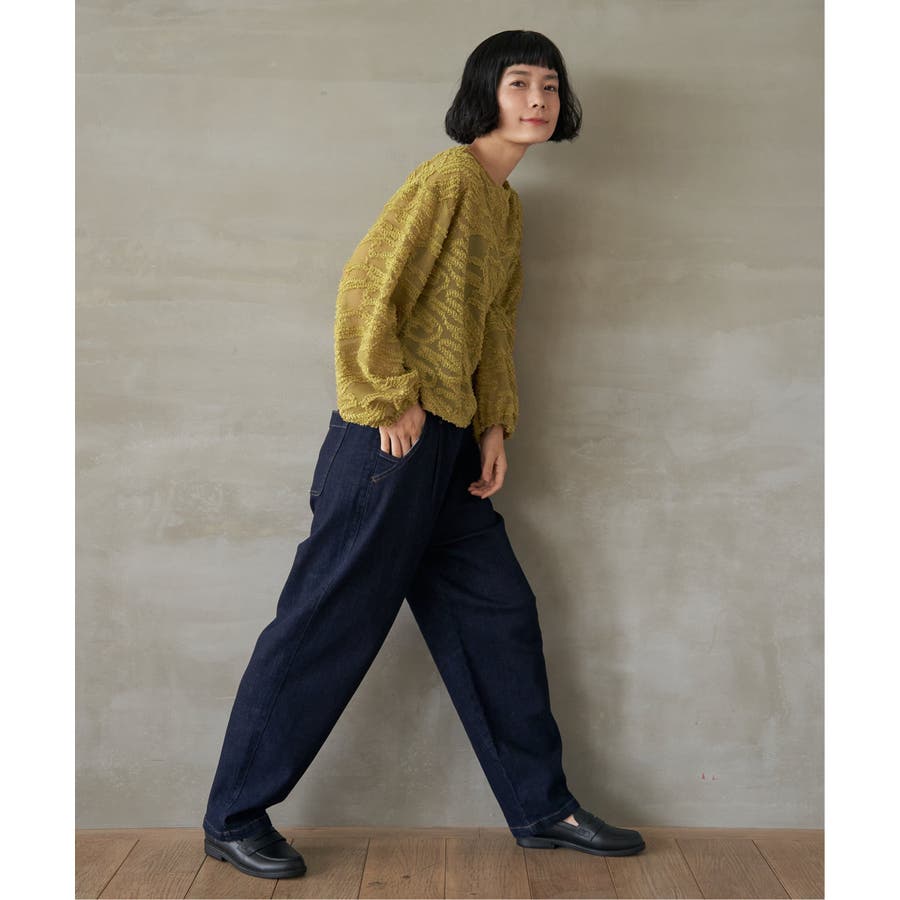 シンプルなボトムと合わせるだけで、着こなしにリズムが生まれる一枚です。