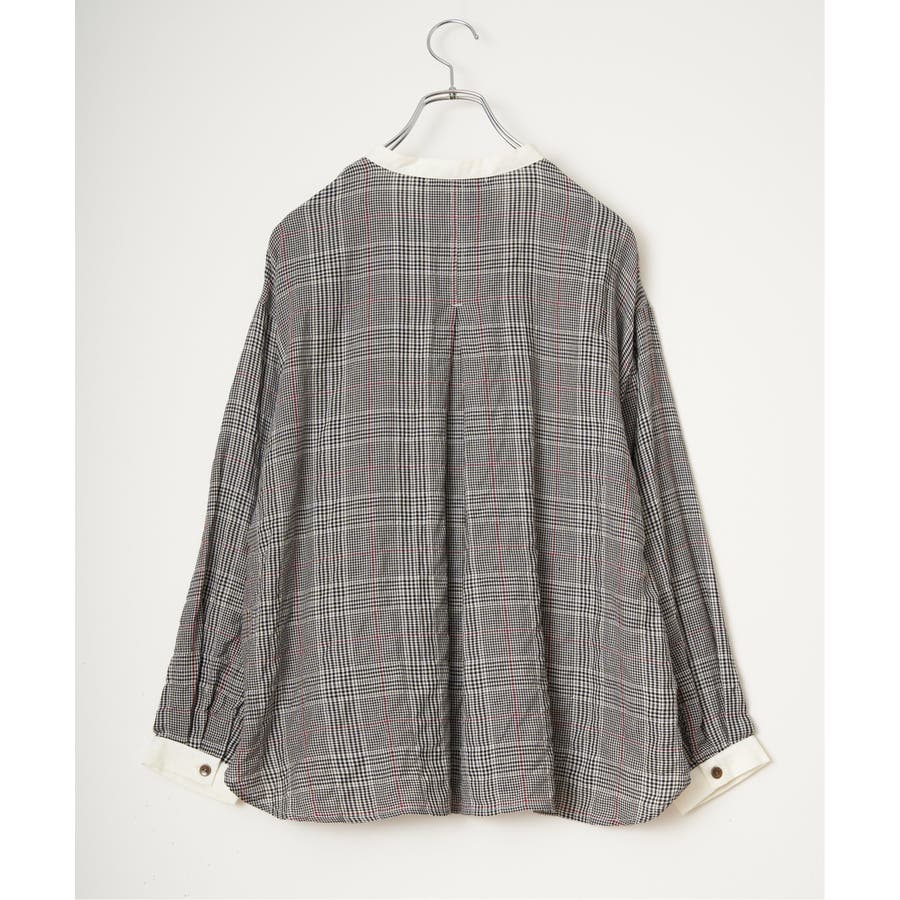 クラシカルな印象を与える、クレリックカラーとパイピングデザインが特徴のシャツ。