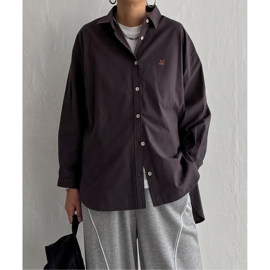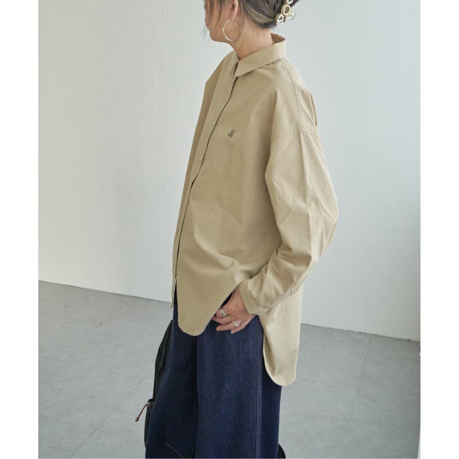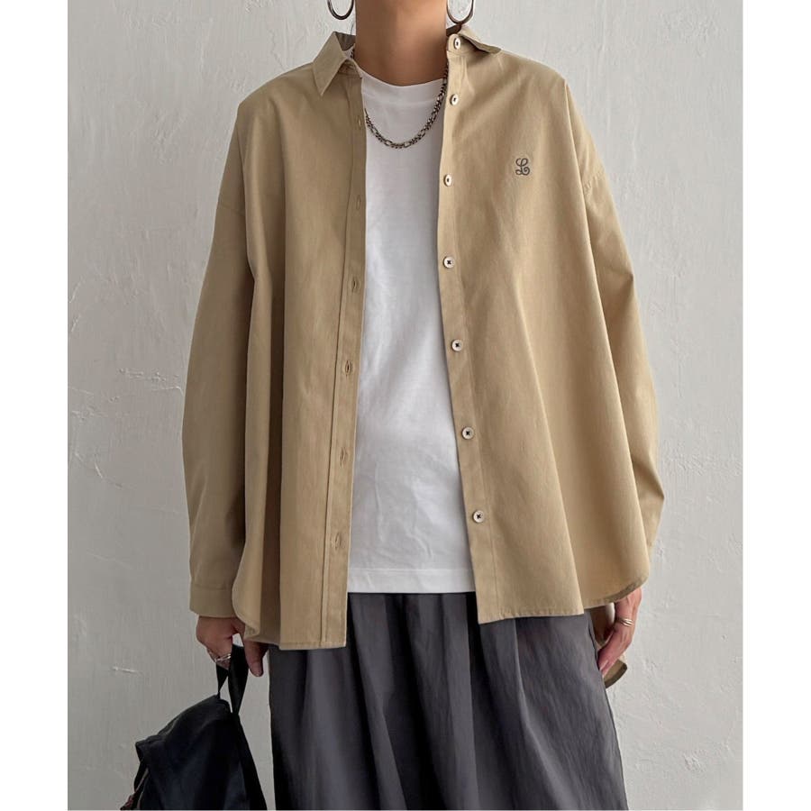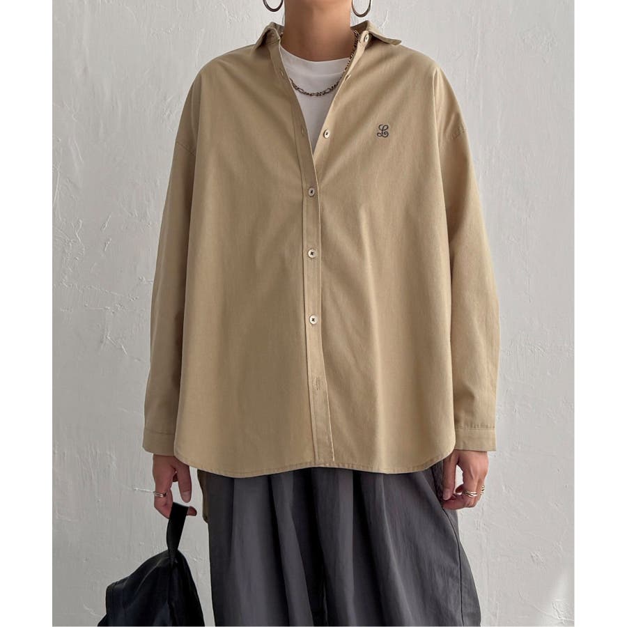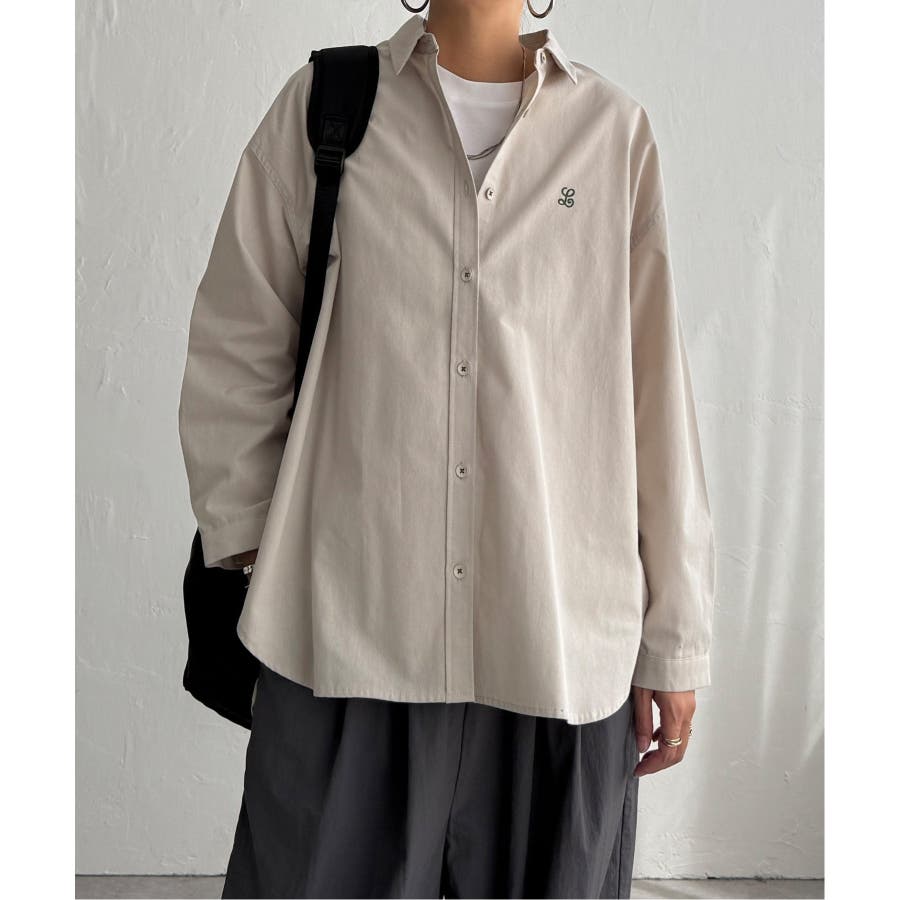 ミニロゴ刺繍がさりげないアクセントのオーバーサイズシャツ。