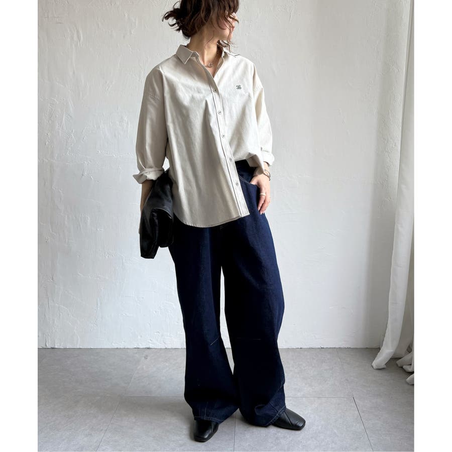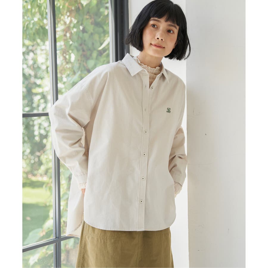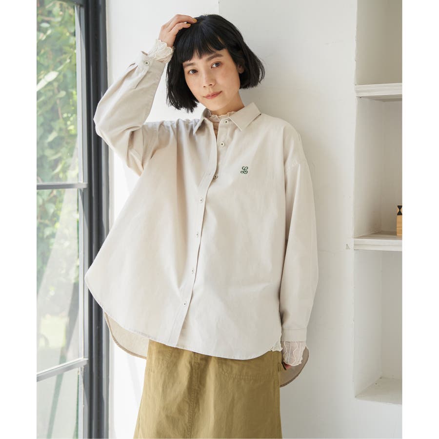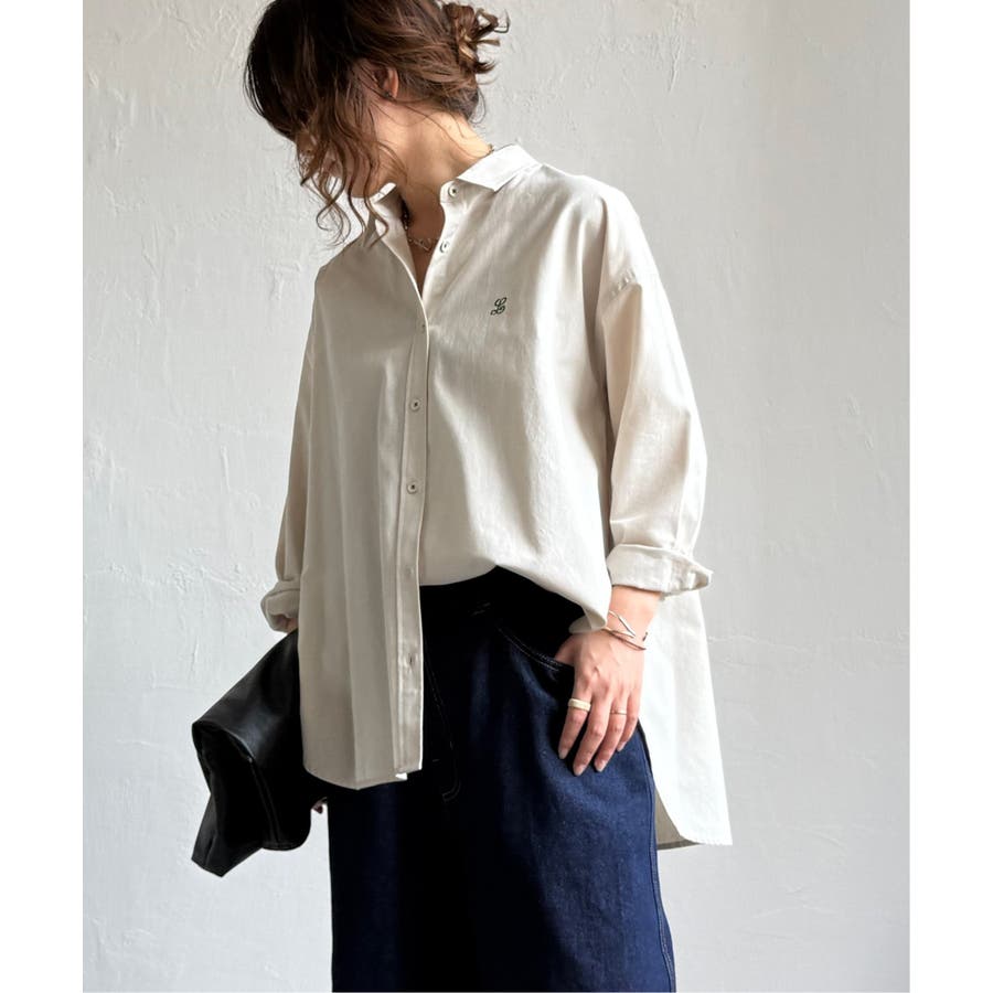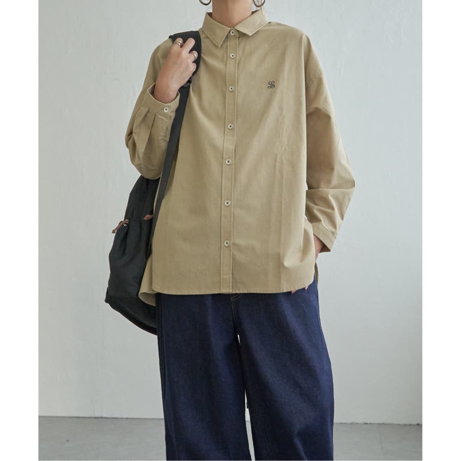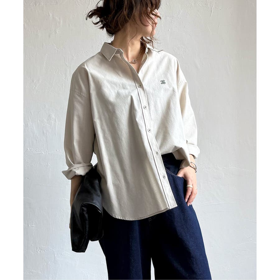 ミニロゴ刺繍がさりげないアクセントのオーバーサイズシャツ。