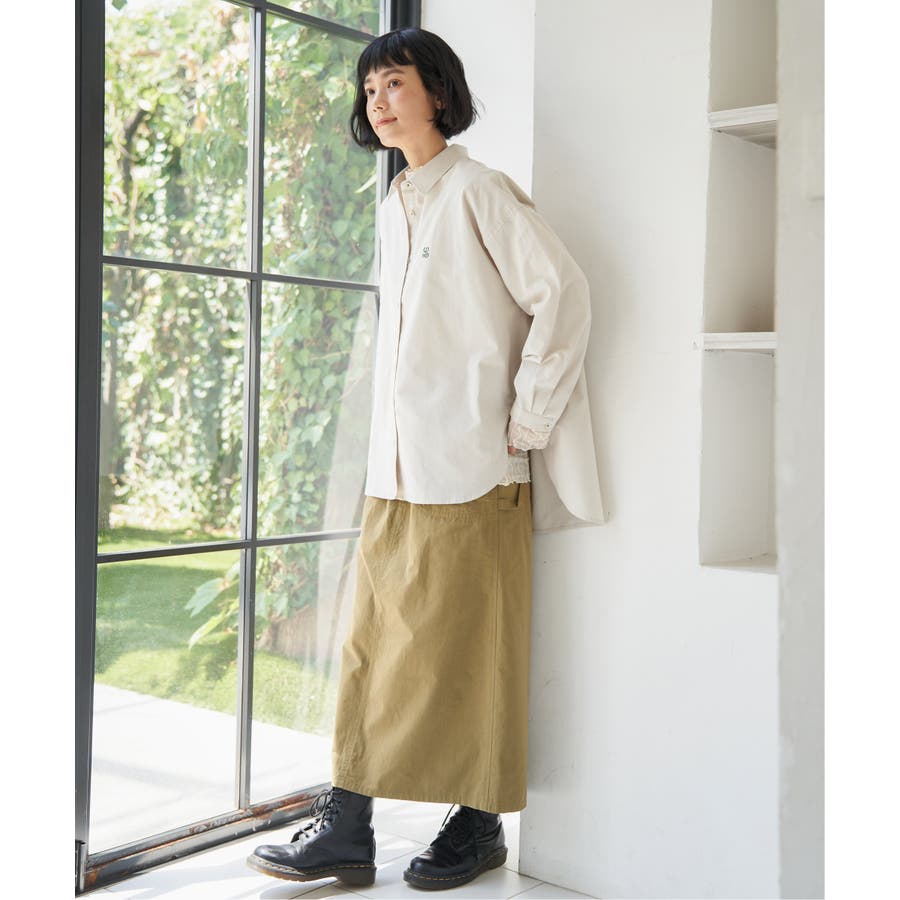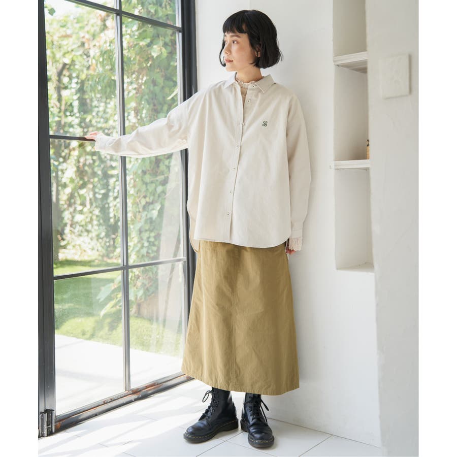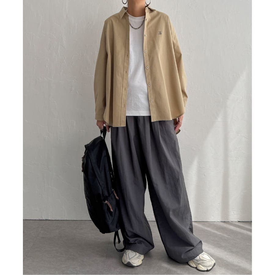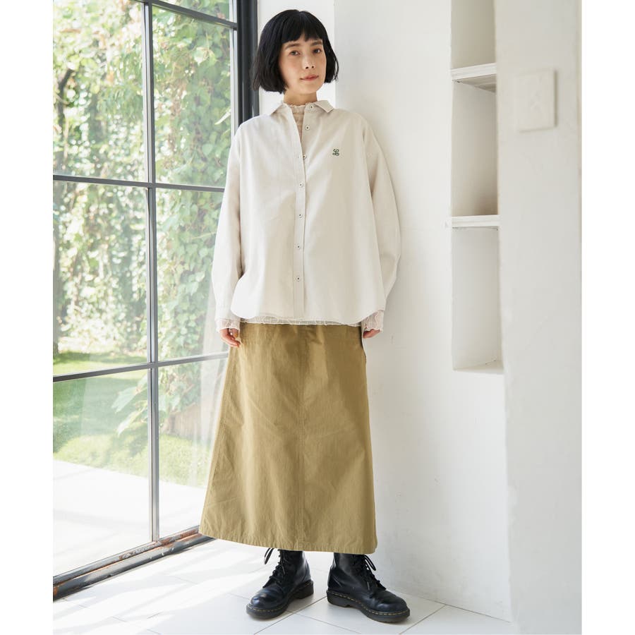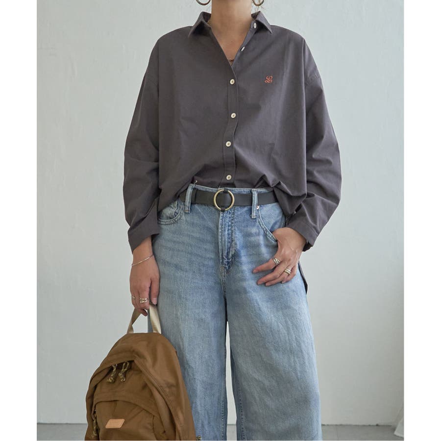 ミニロゴ刺繍がさりげないアクセントのオーバーサイズシャツ。