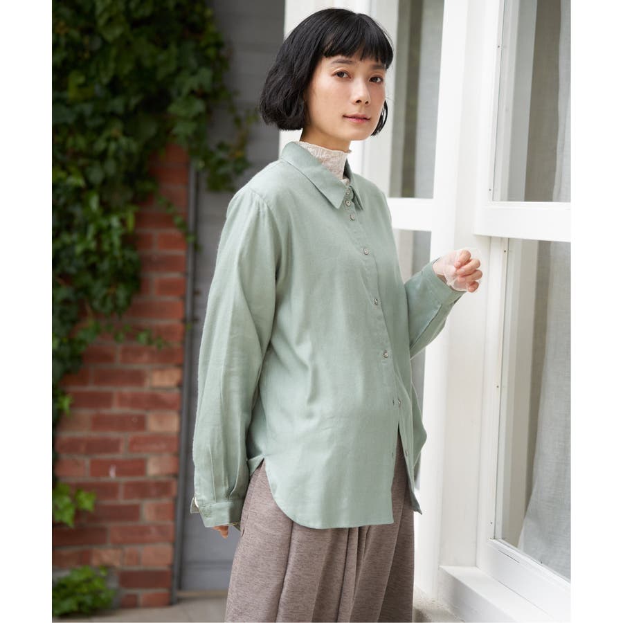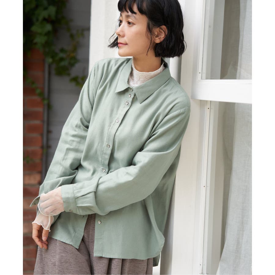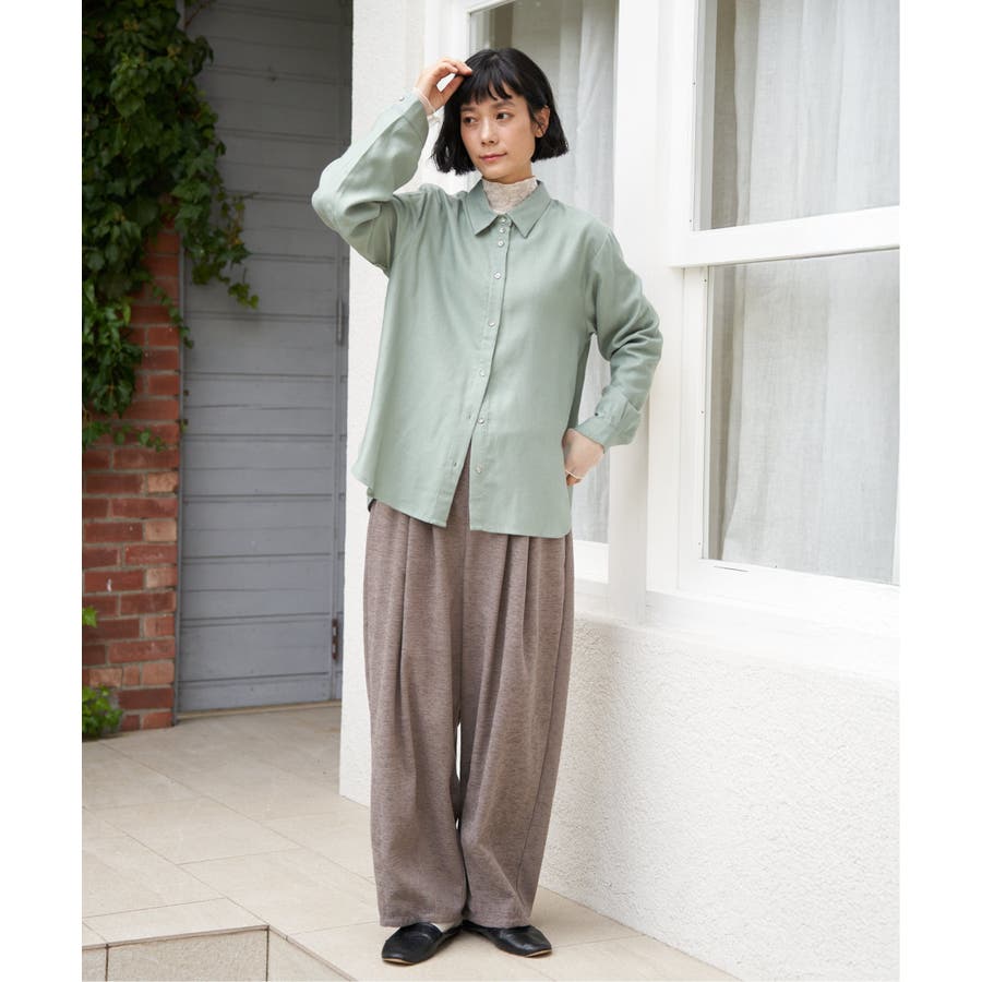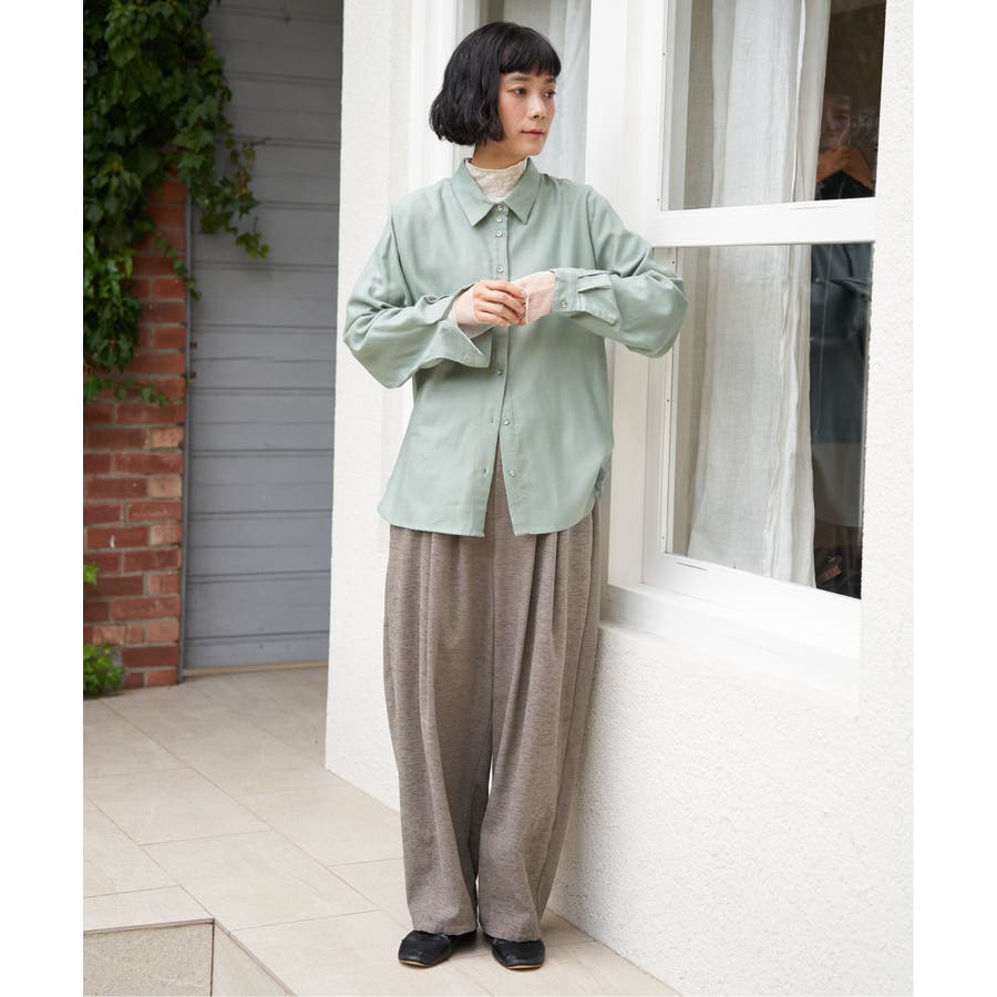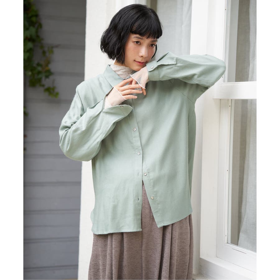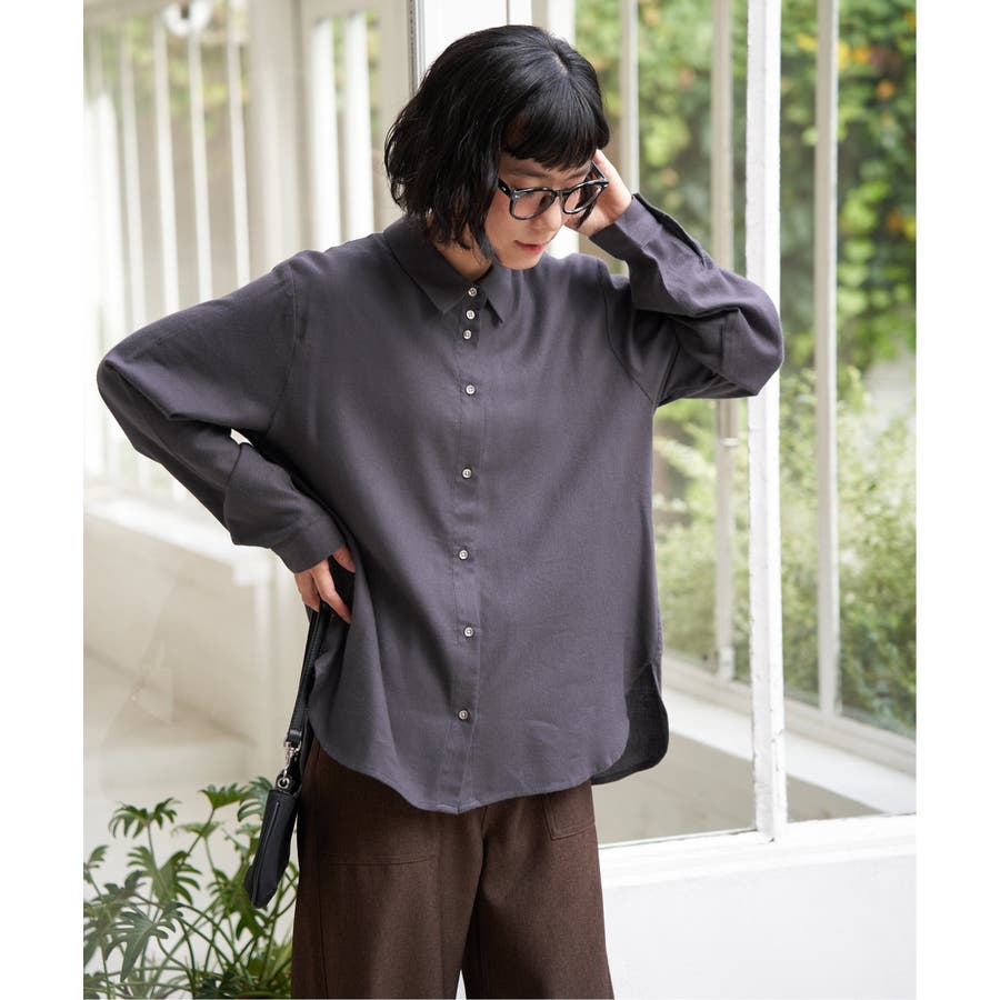 落ち感のある綿レーヨン素材で、さらりとした肌ざわりが魅力のシャツ。