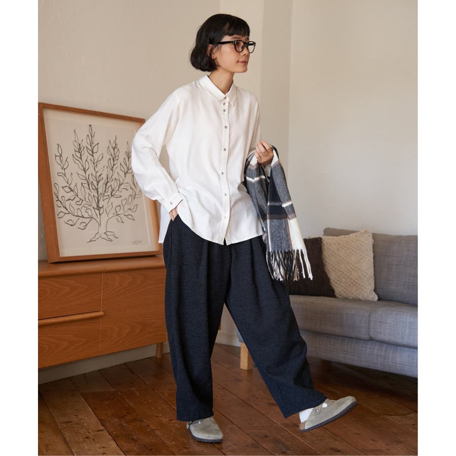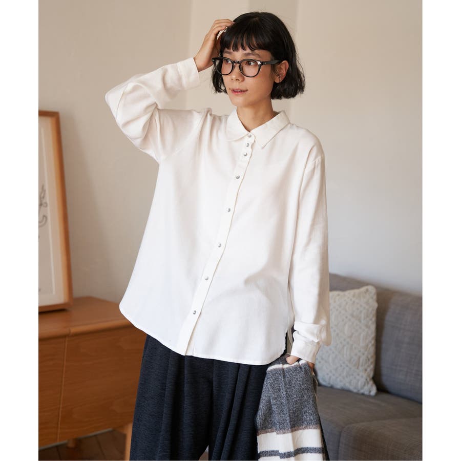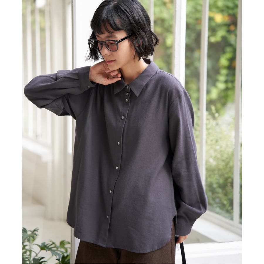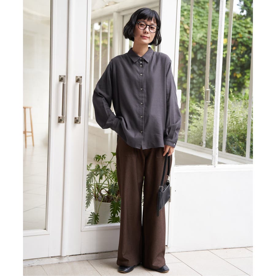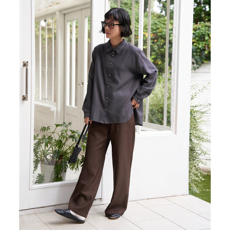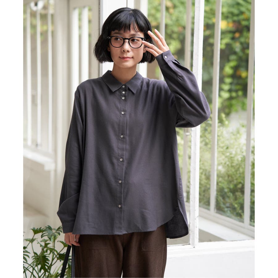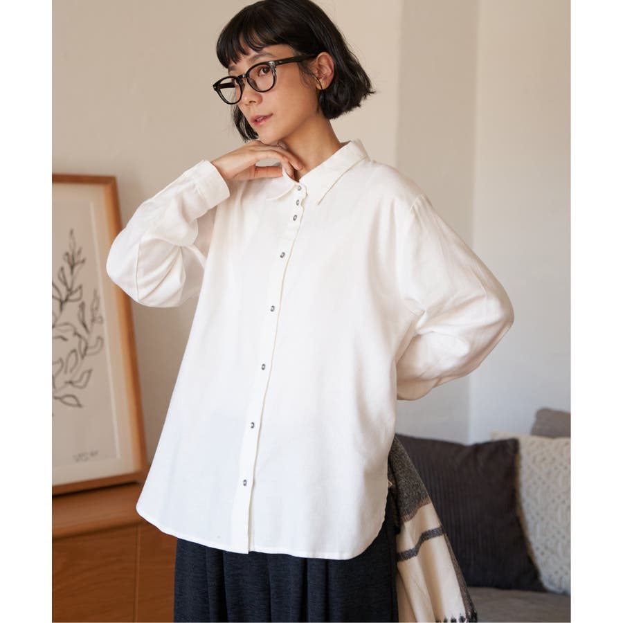 落ち感のある綿レーヨン素材で、さらりとした肌ざわりが魅力のシャツ。