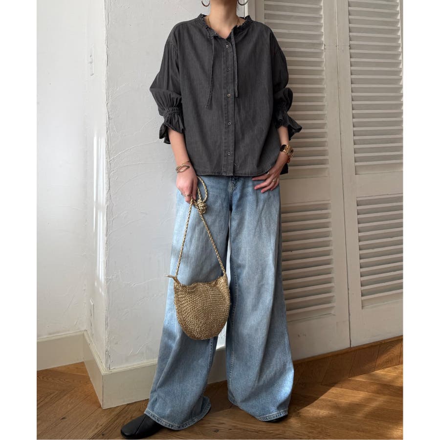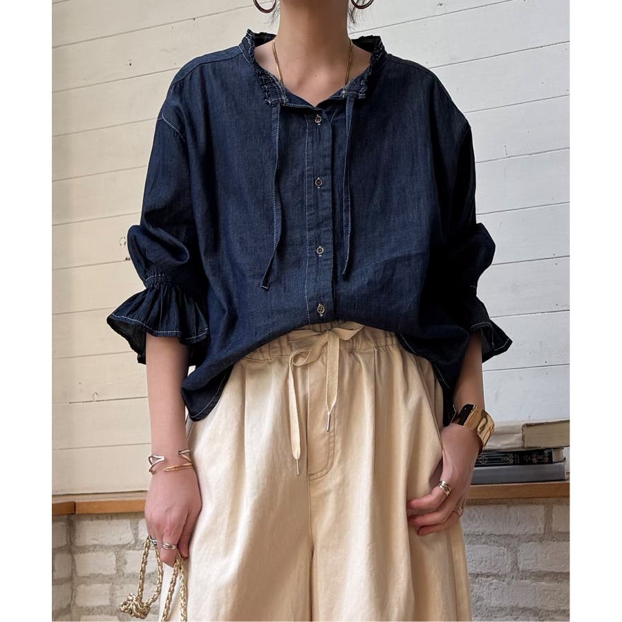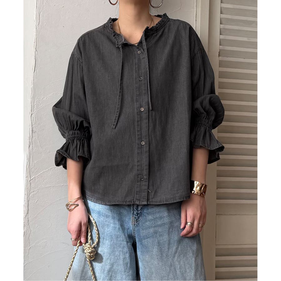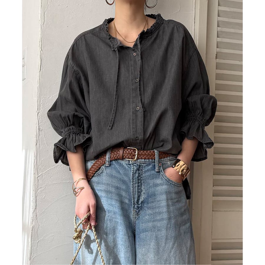 軽やかなライトオンスデニムを使用した、表情のあるシャーリングブラウス。