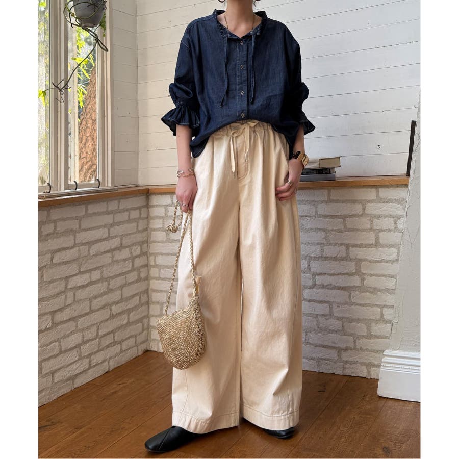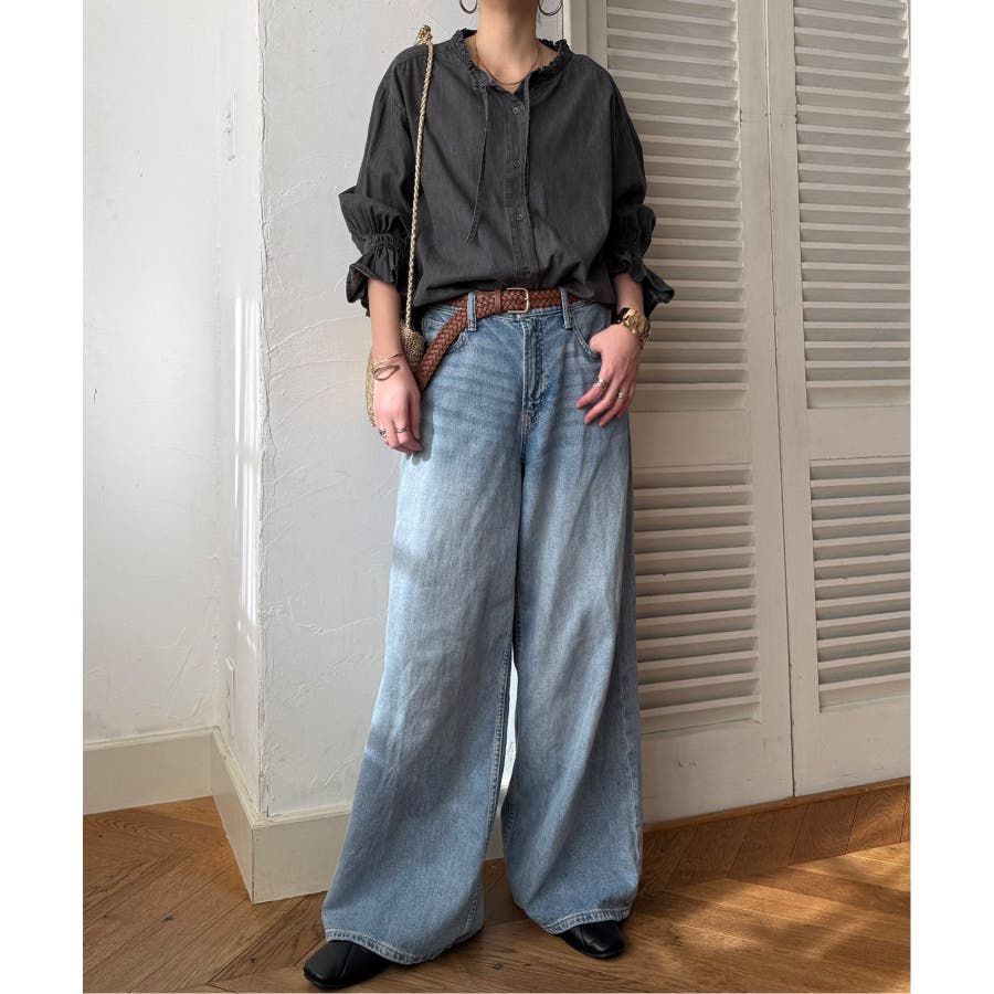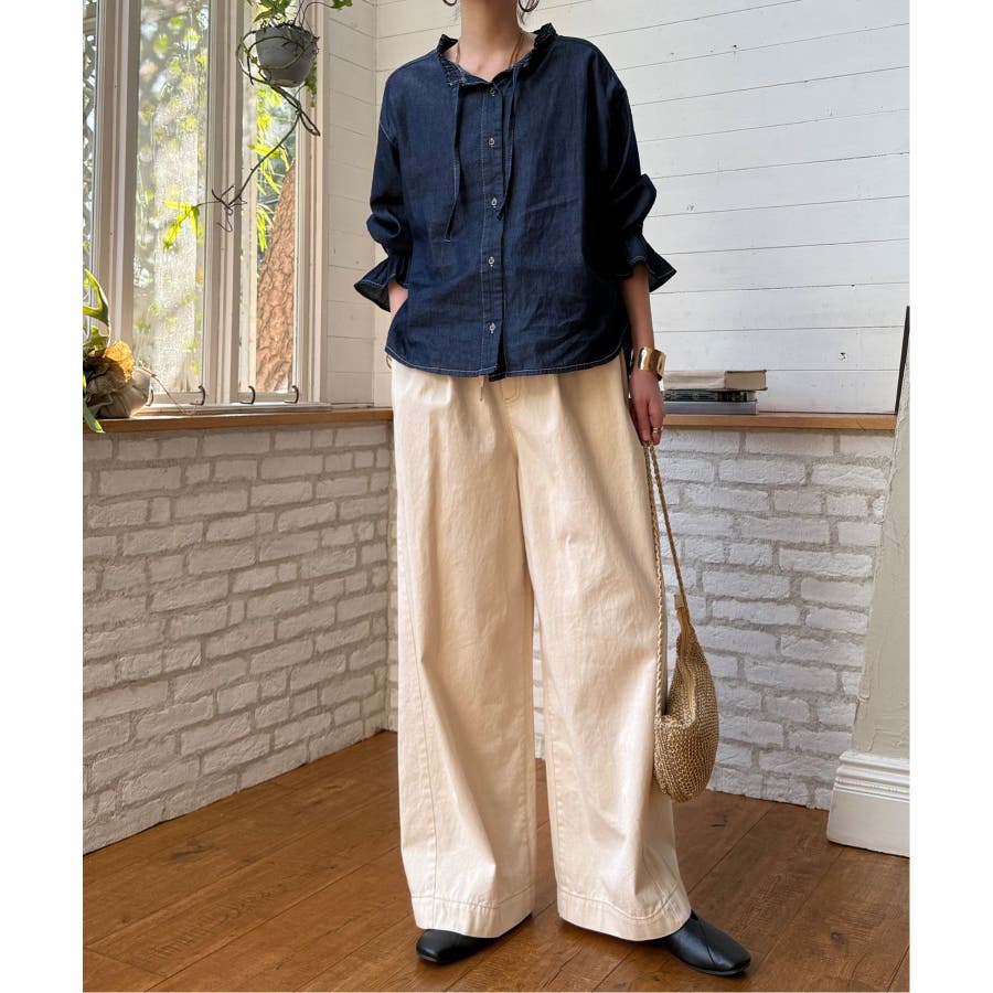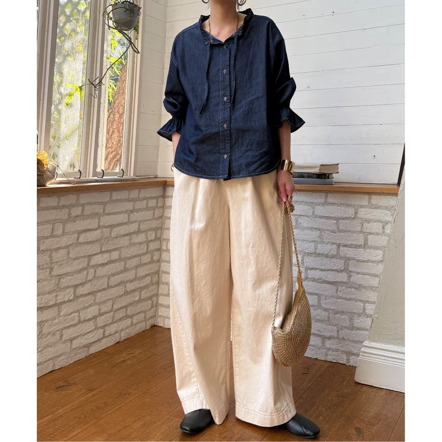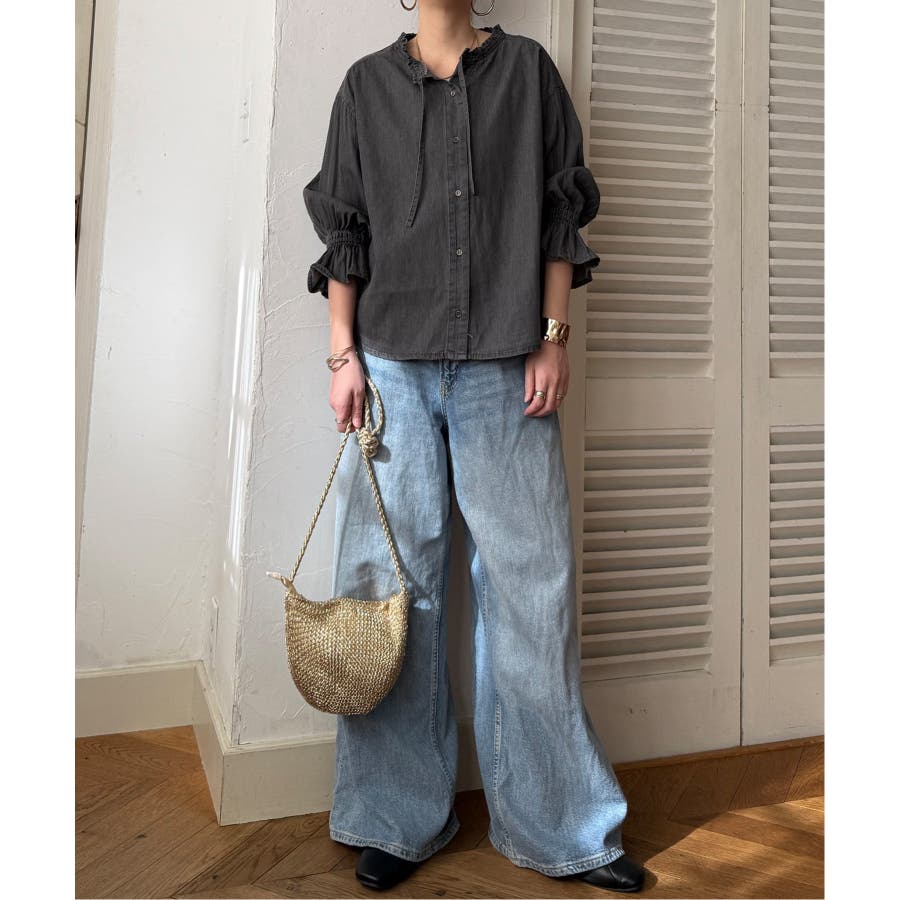 軽やかなライトオンスデニムを使用した、表情のあるシャーリングブラウス。