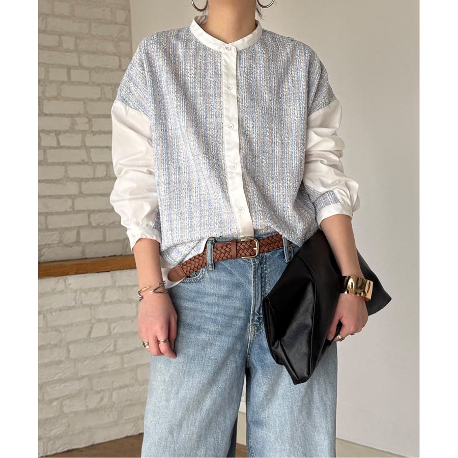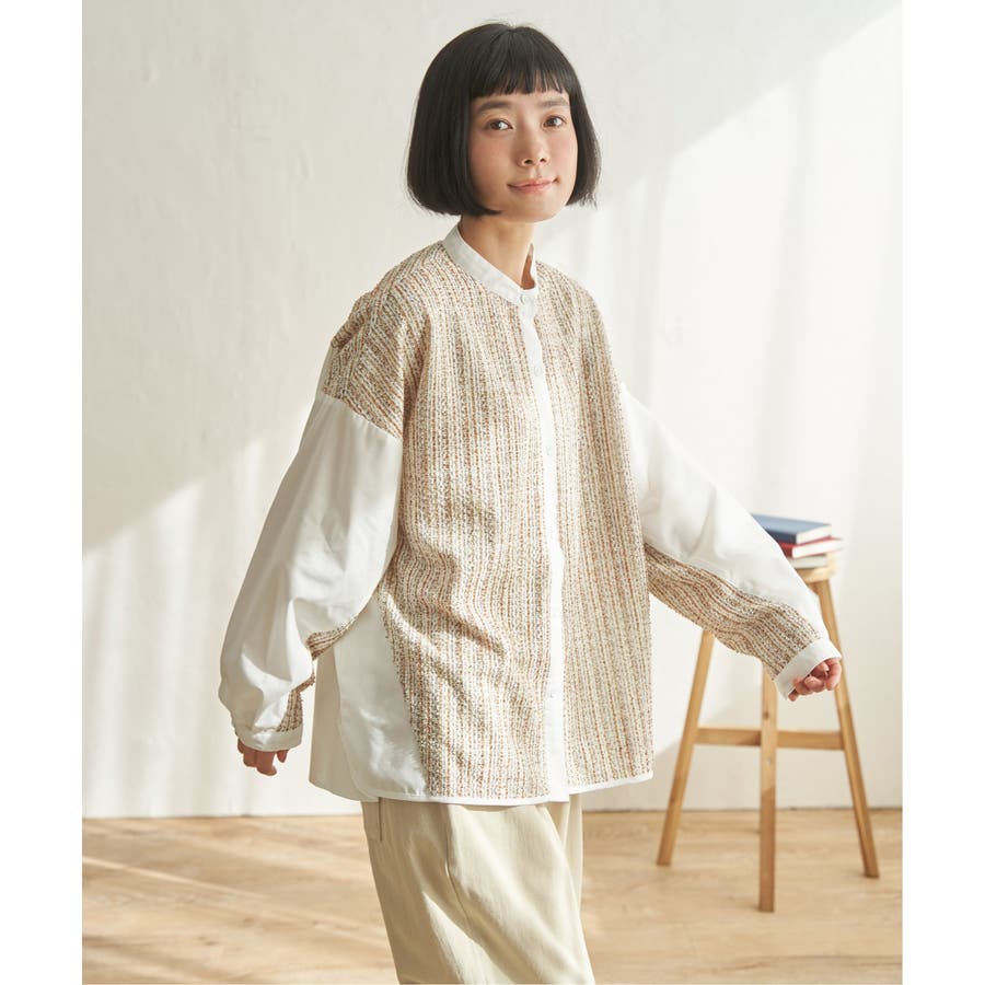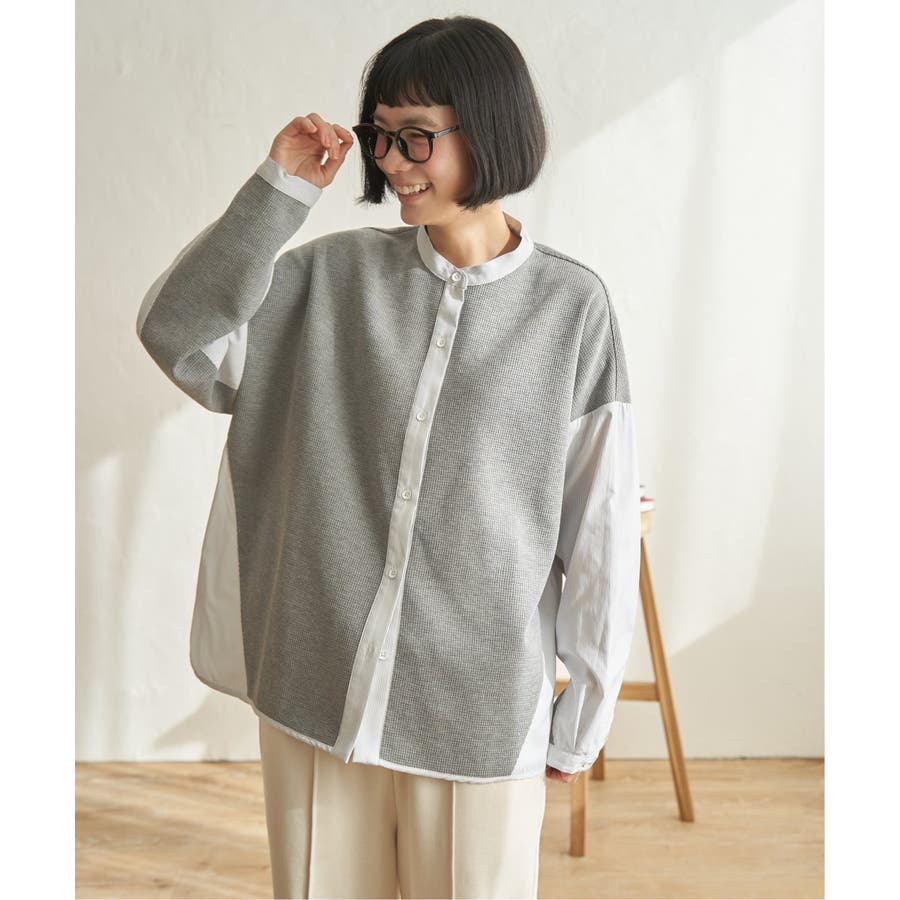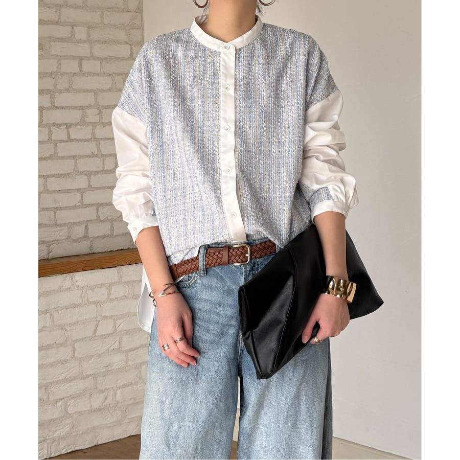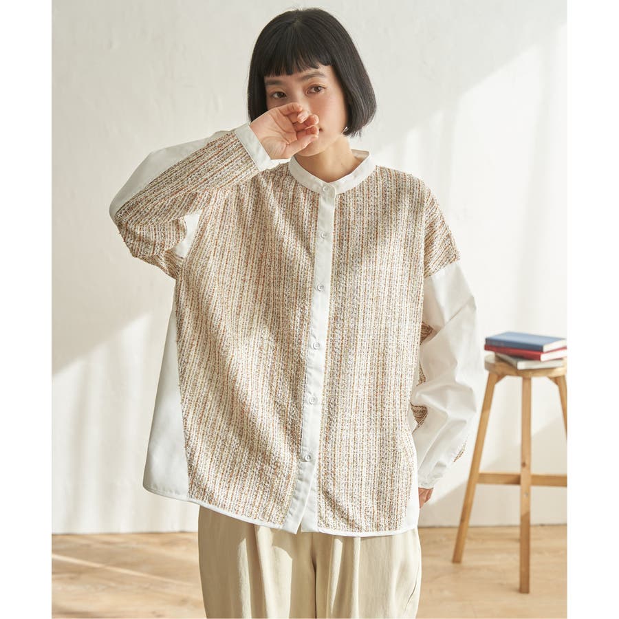 春らしいツイード/ワッフルとシャツ生地の切り替えで、一枚でサマになる便利シャツです。