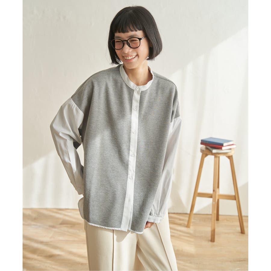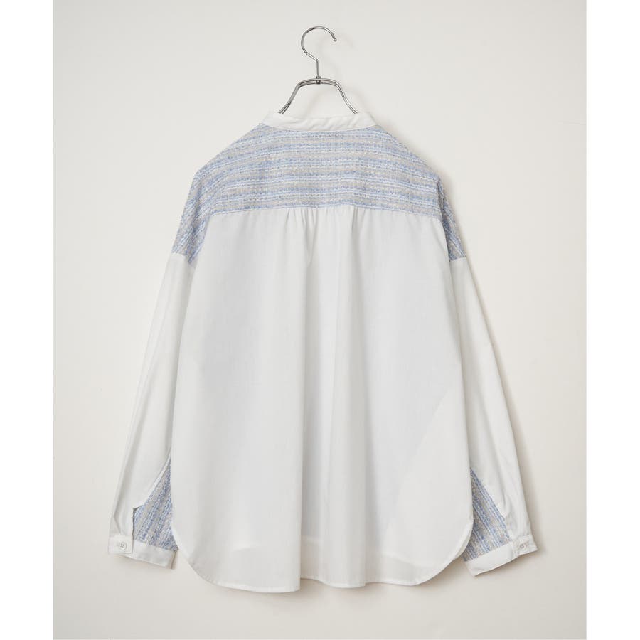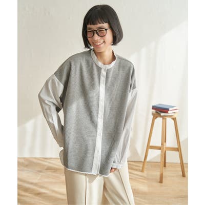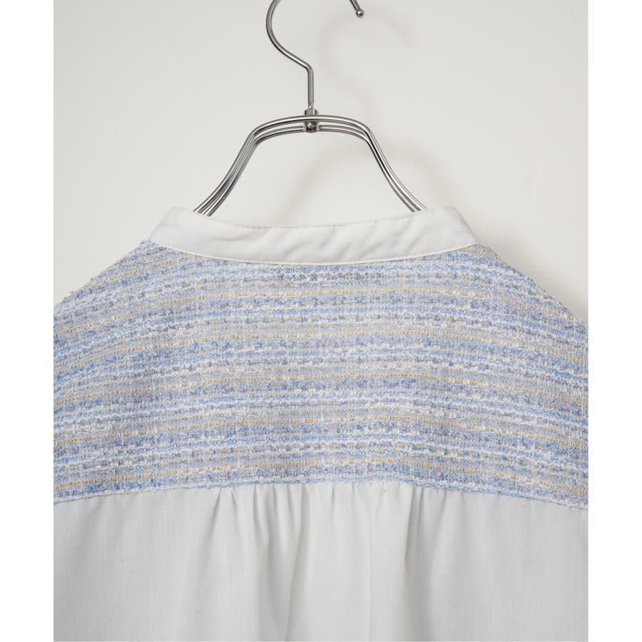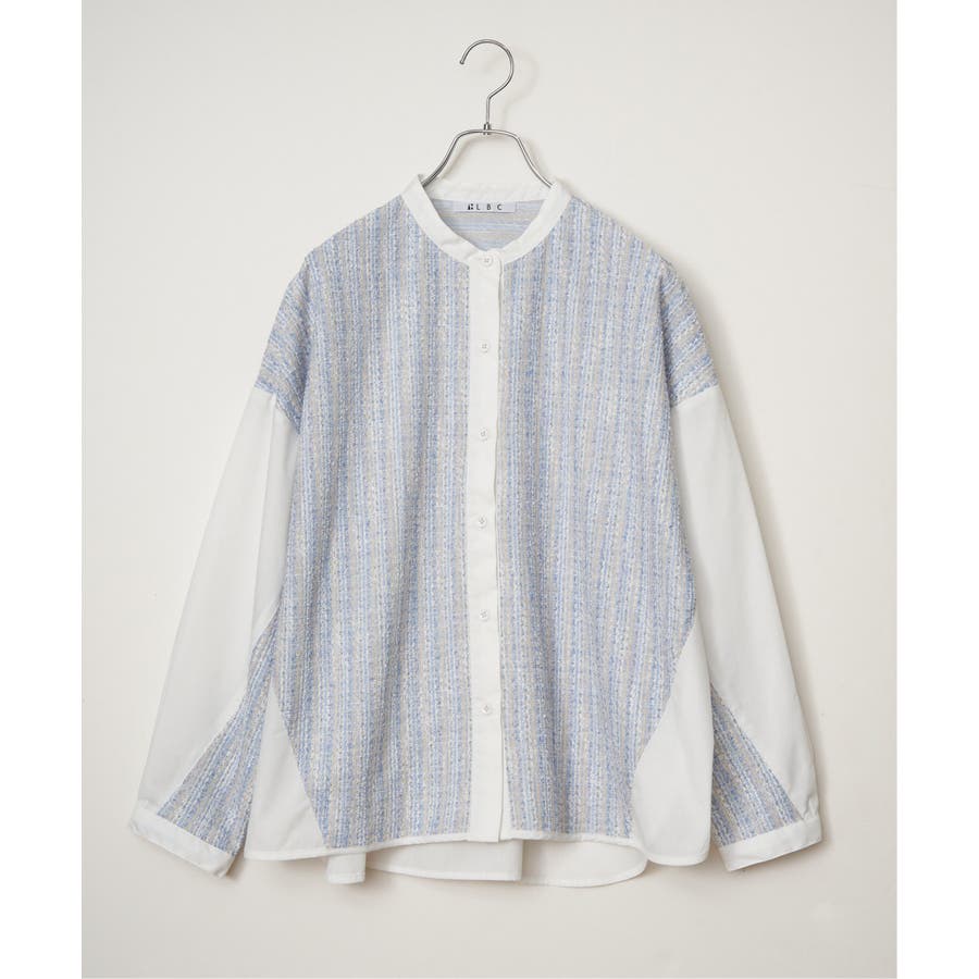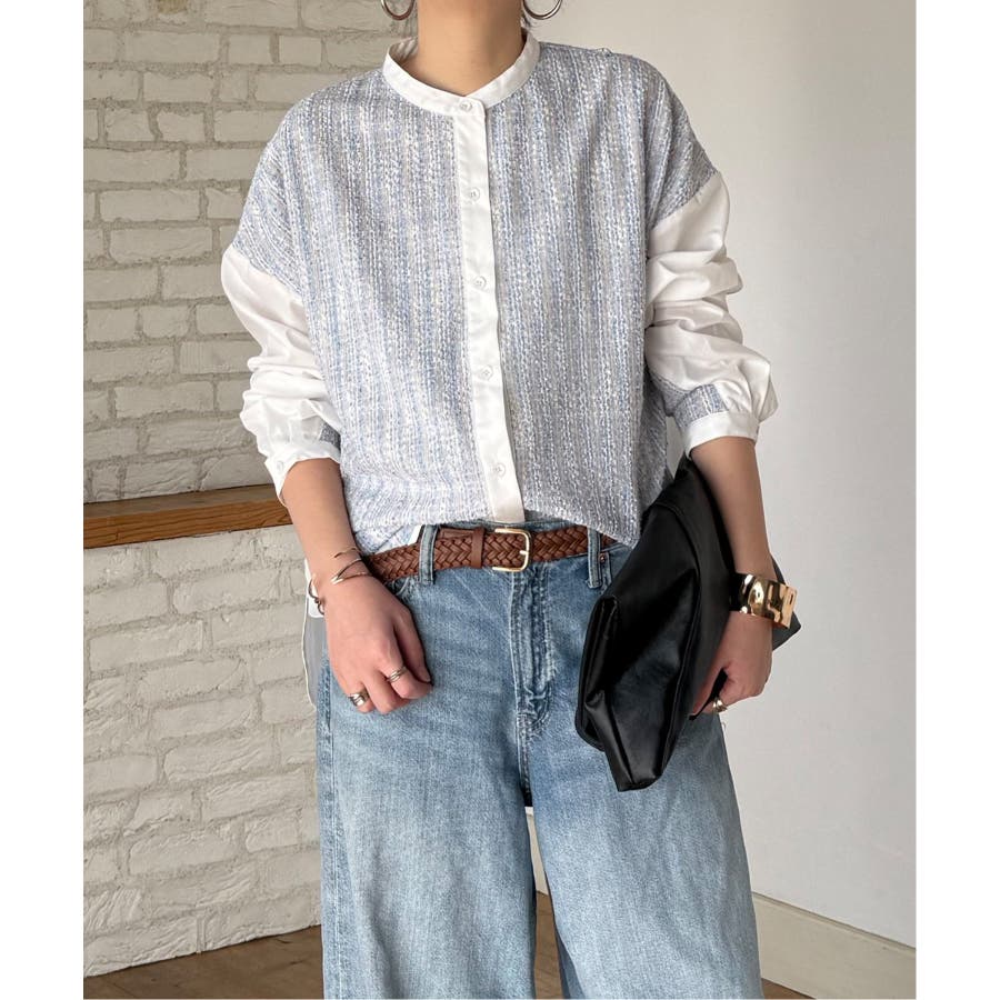 春らしいツイード/ワッフルとシャツ生地の切り替えで、一枚でサマになる便利シャツです。