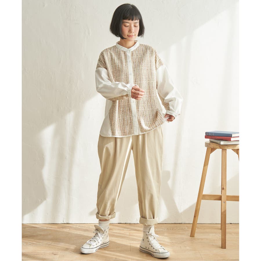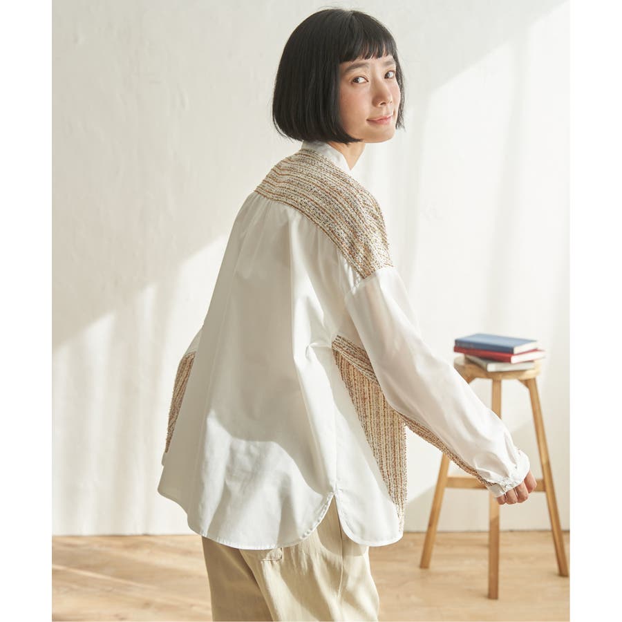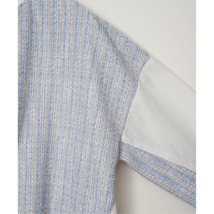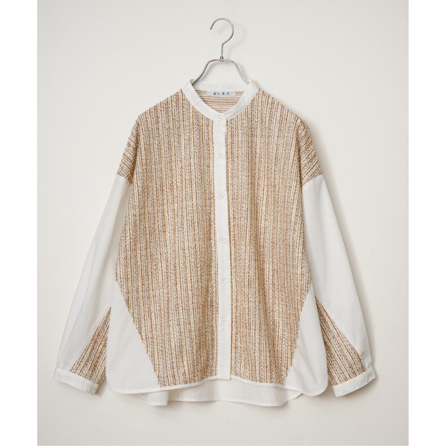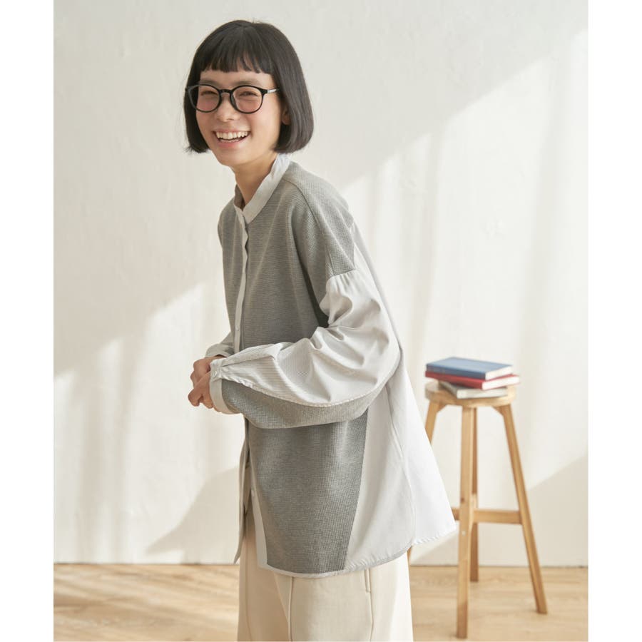 春らしいツイード/ワッフルとシャツ生地の切り替えで、一枚でサマになる便利シャツです。