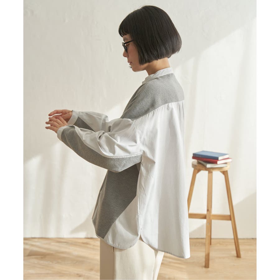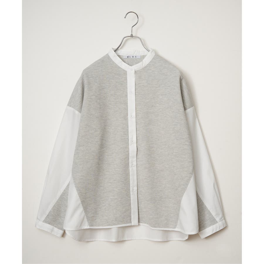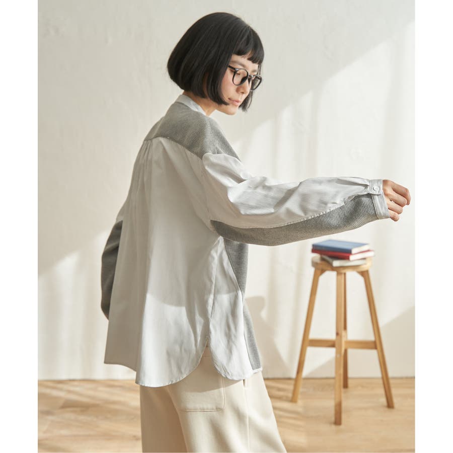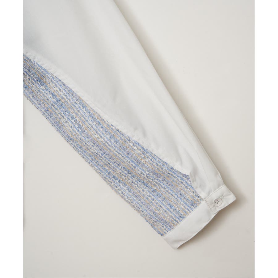 ツイード/ワッフル素材とシャツ生地を組み合わせた、異素材切り替えデザインのシャツ。