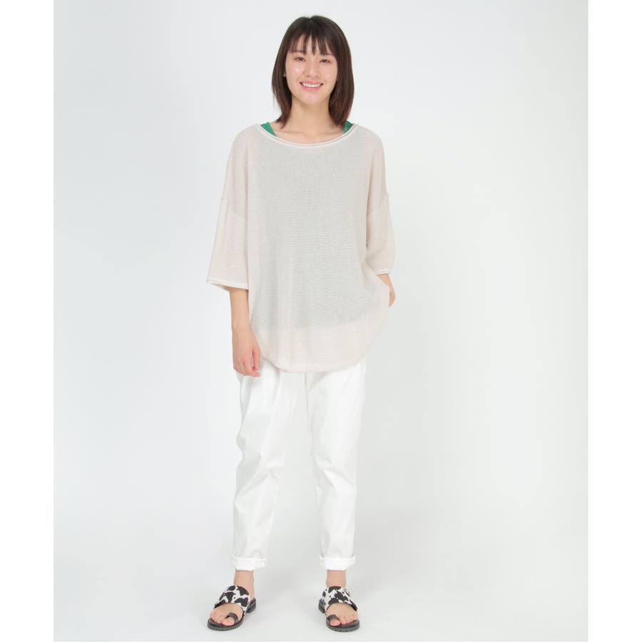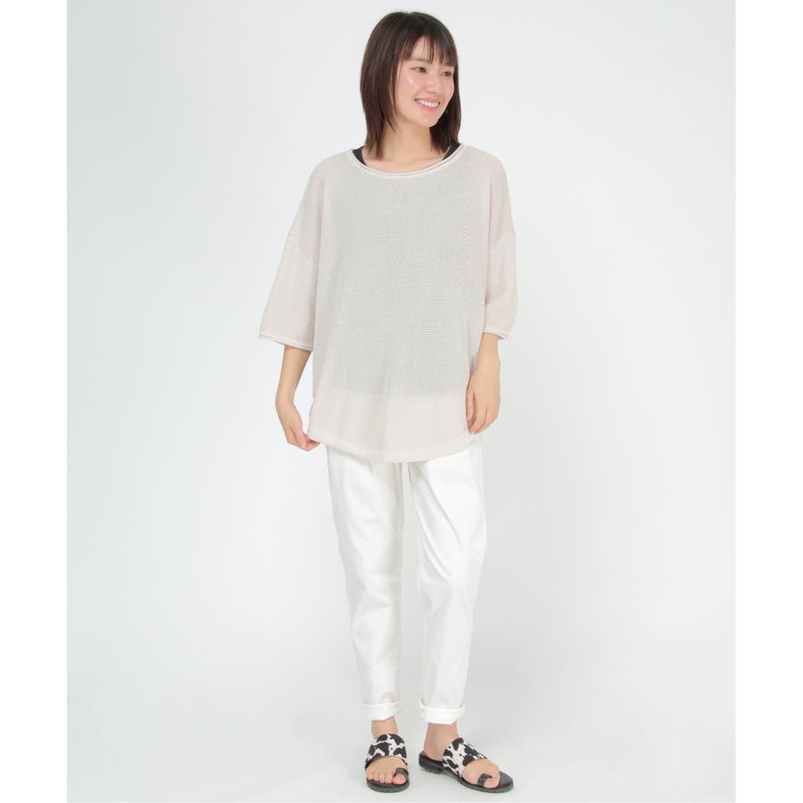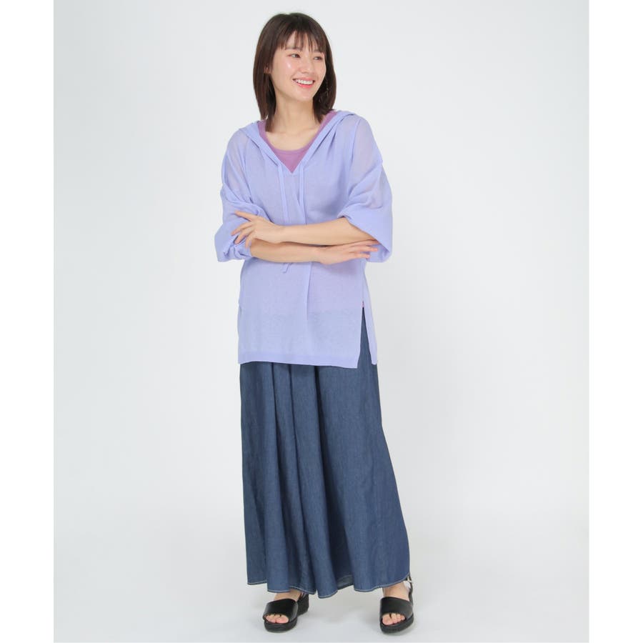 シャツやチュニック、シアー素材のトップスなどと合わせるレイヤードスタイルに活躍します。