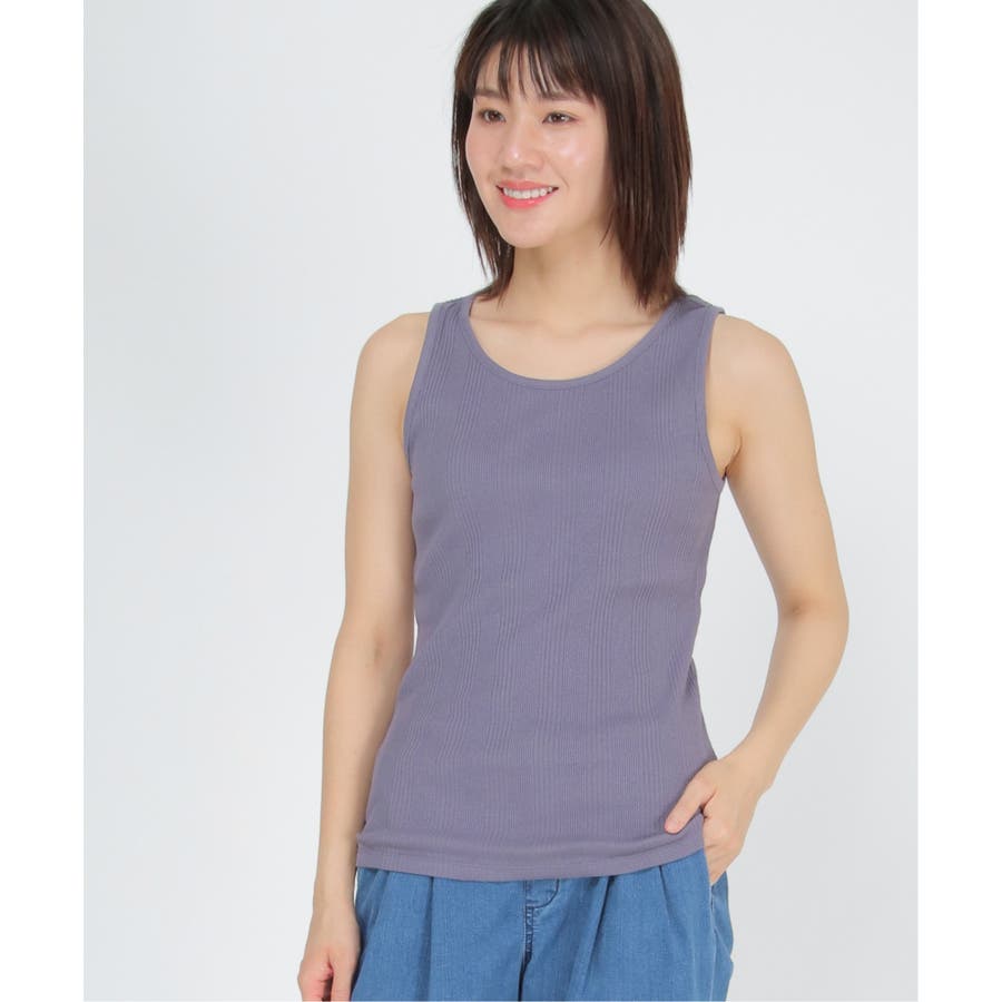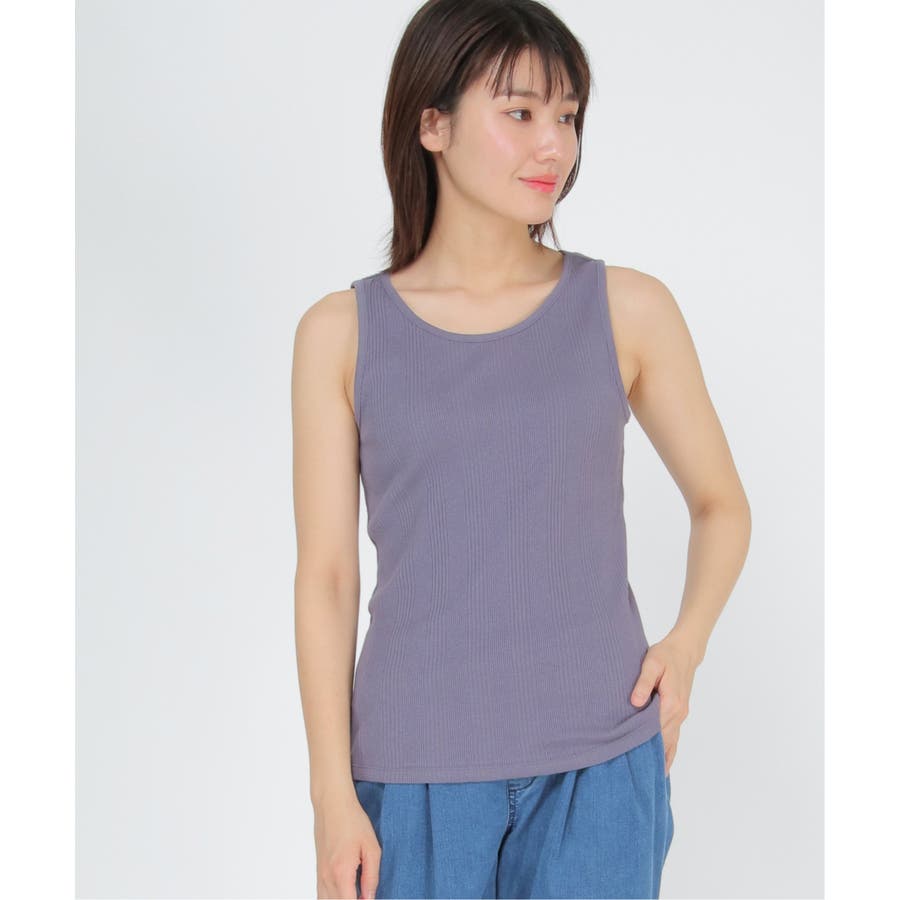 【チャコール】コットンUSAランダムテレコタンクトップ