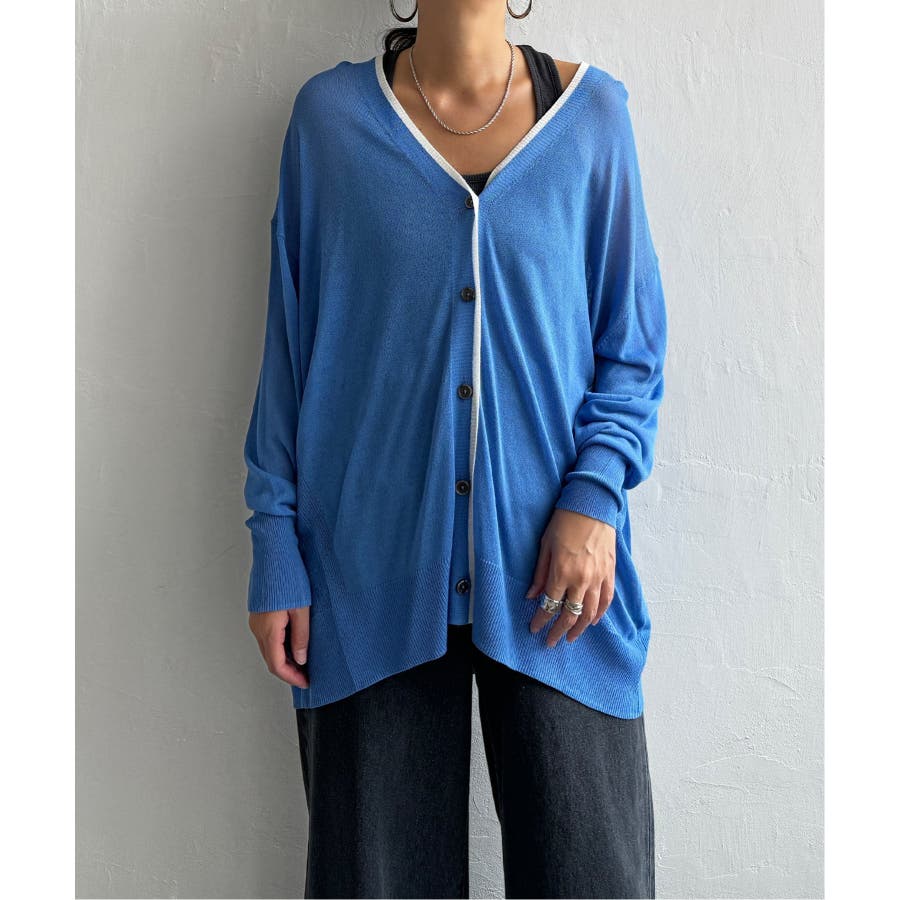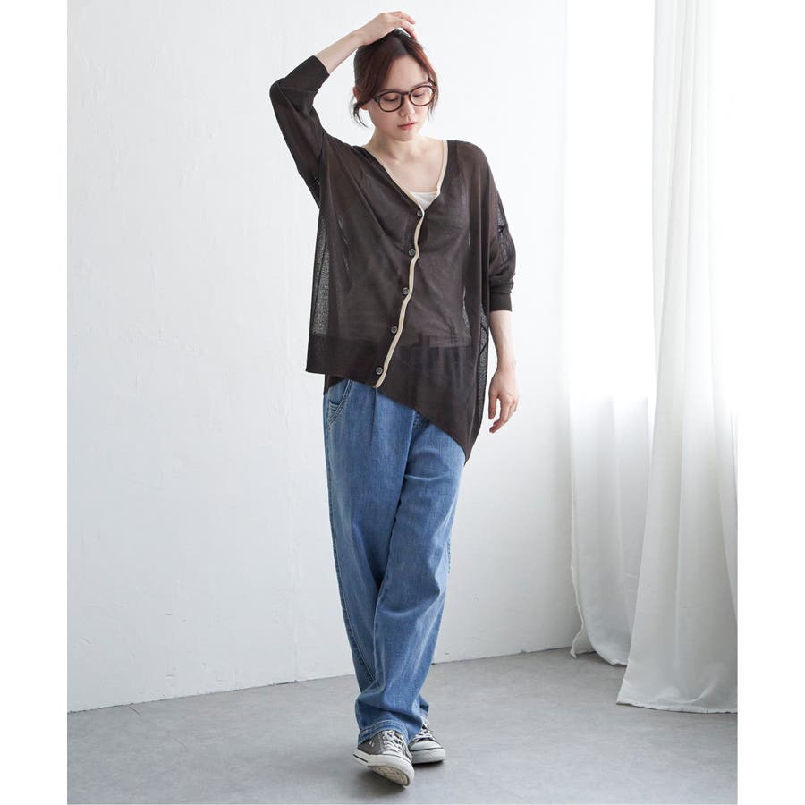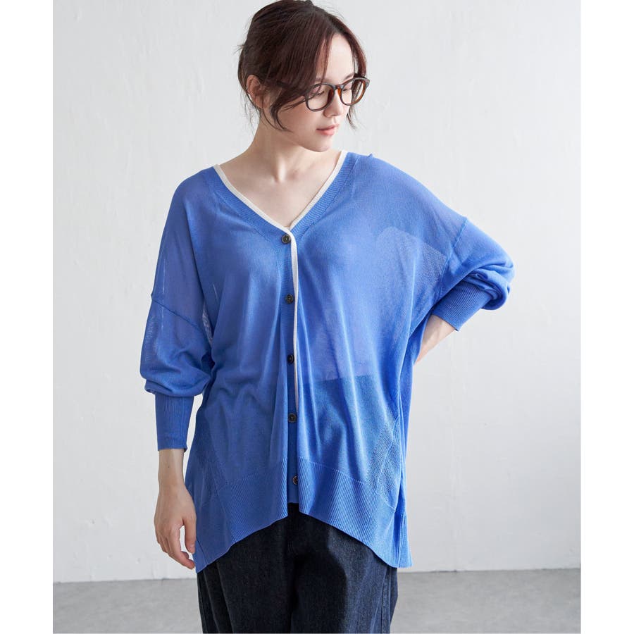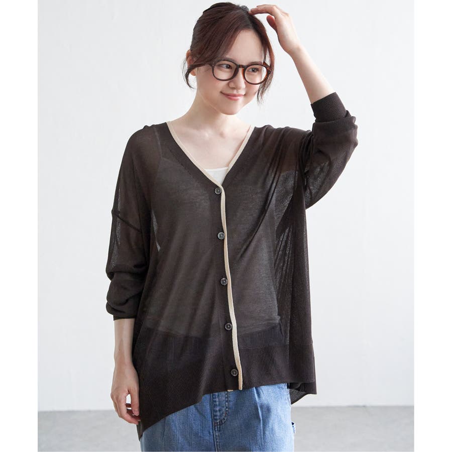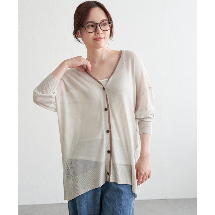 レーヨン×ナイロンのシアー感のあるニットカーディガン。