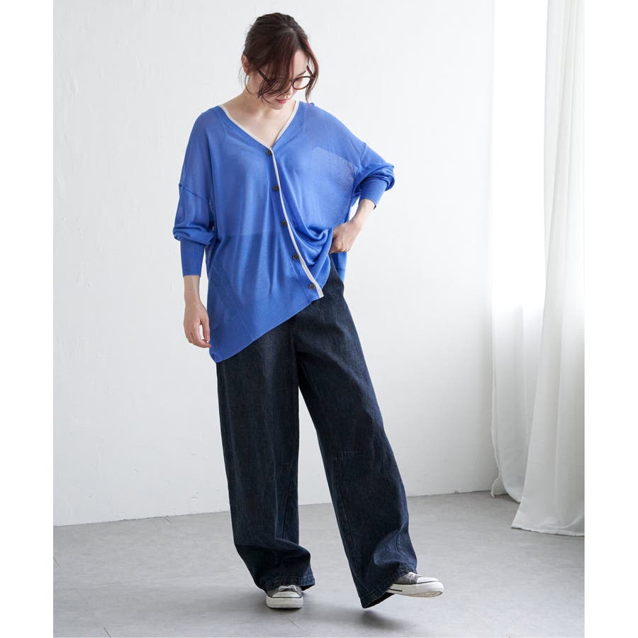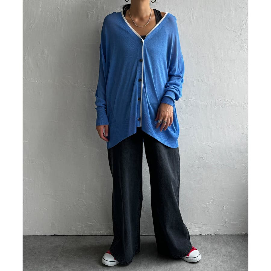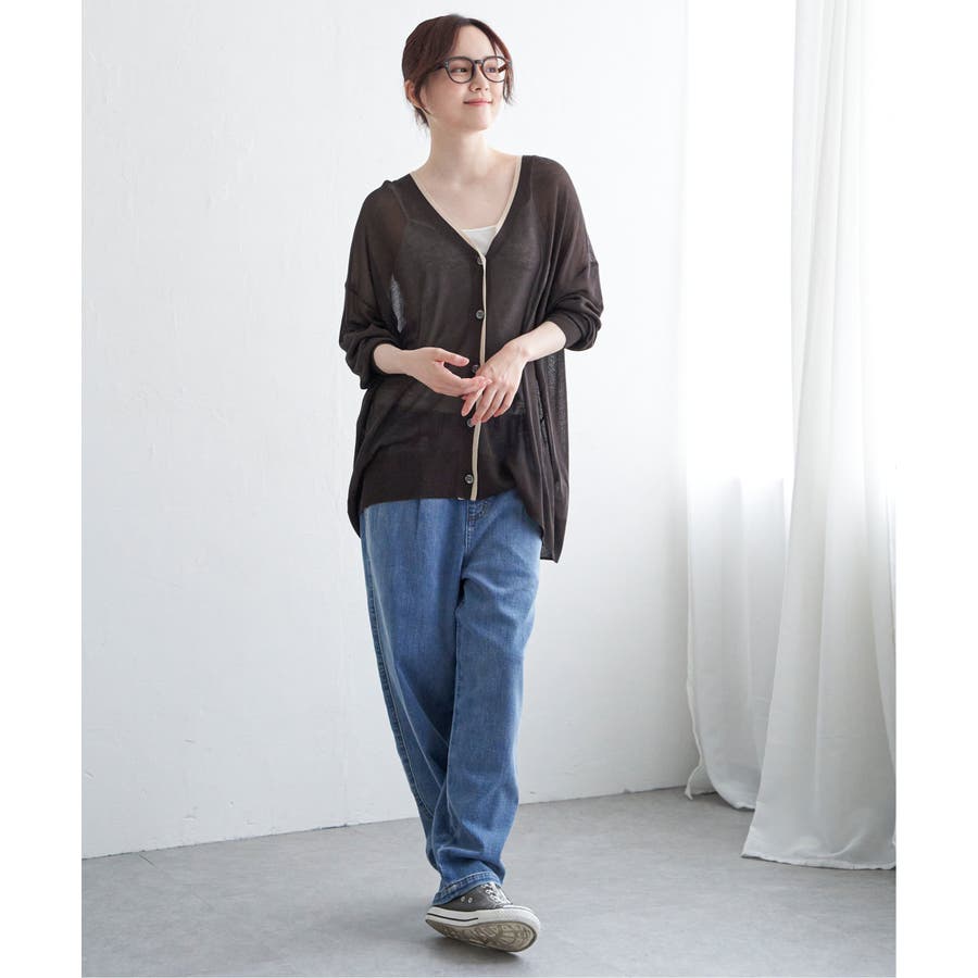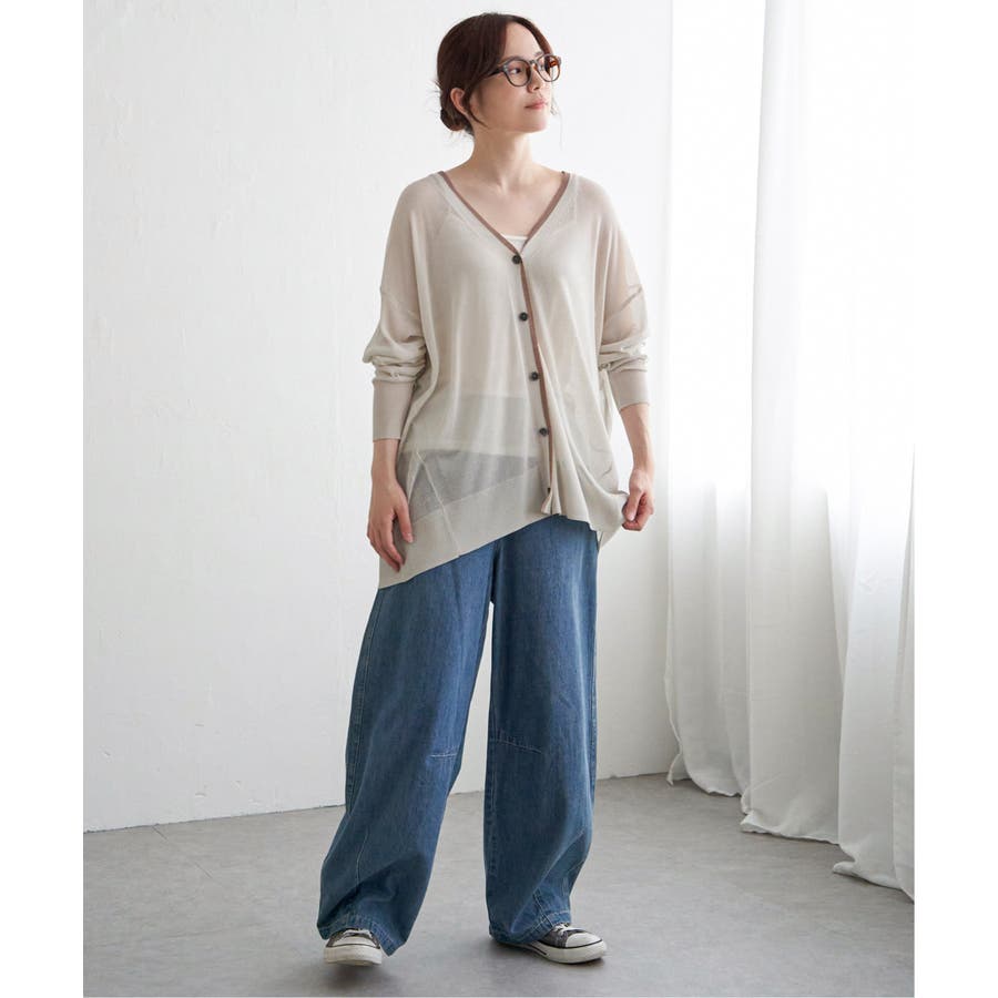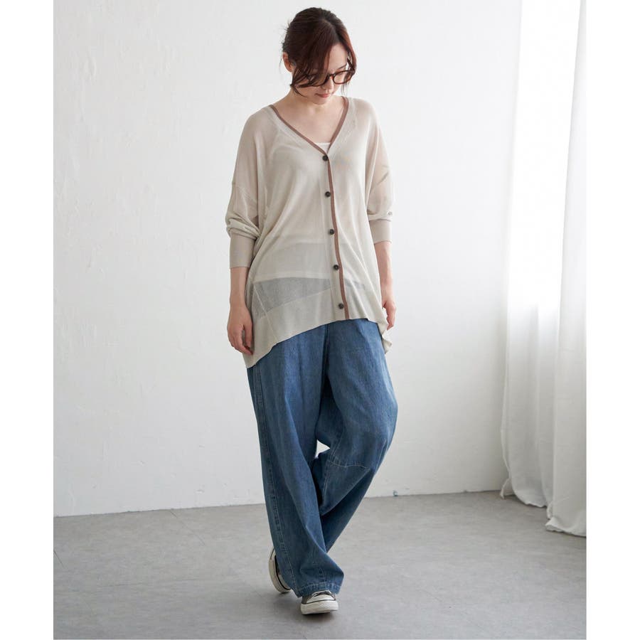 レーヨン×ナイロンのシアー感のあるニットカーディガン。