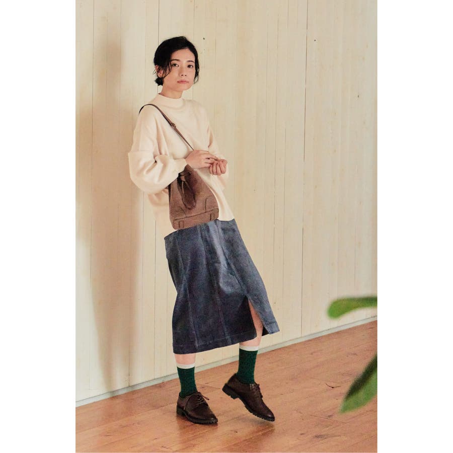 やや詰まりのあるモックネックで顔周りはスッキリ!