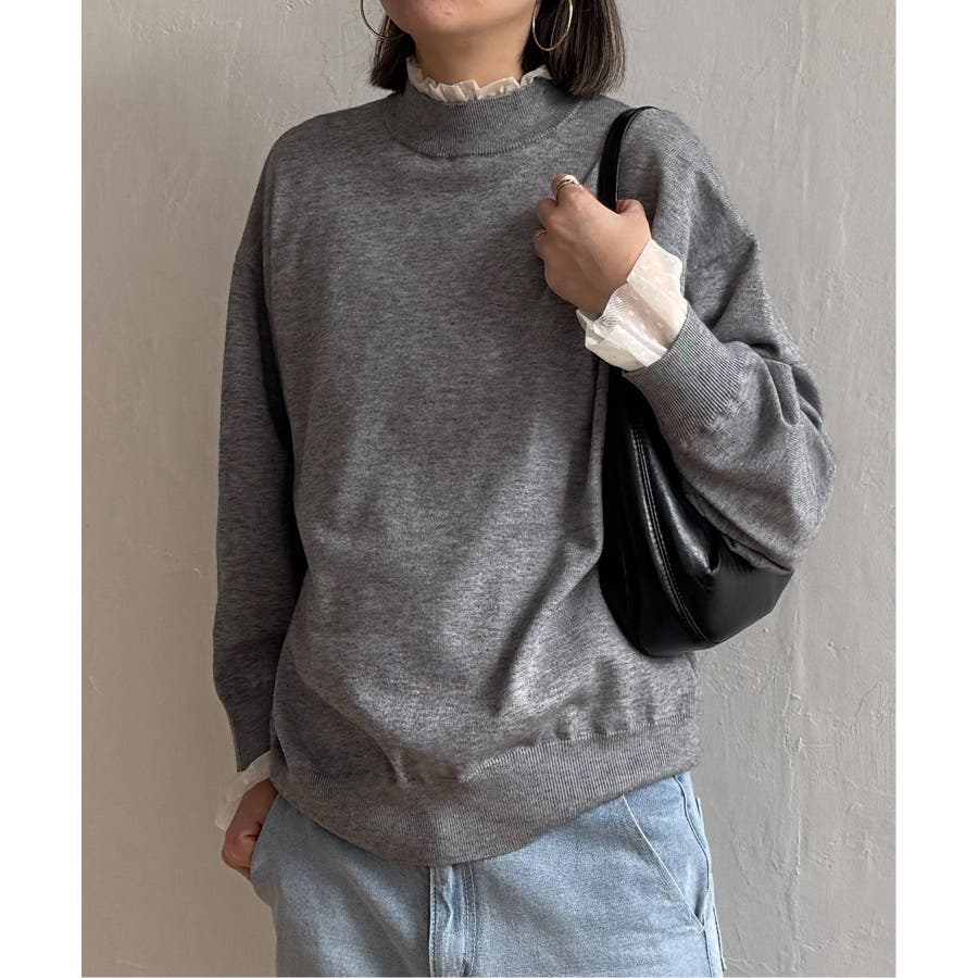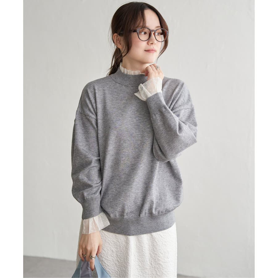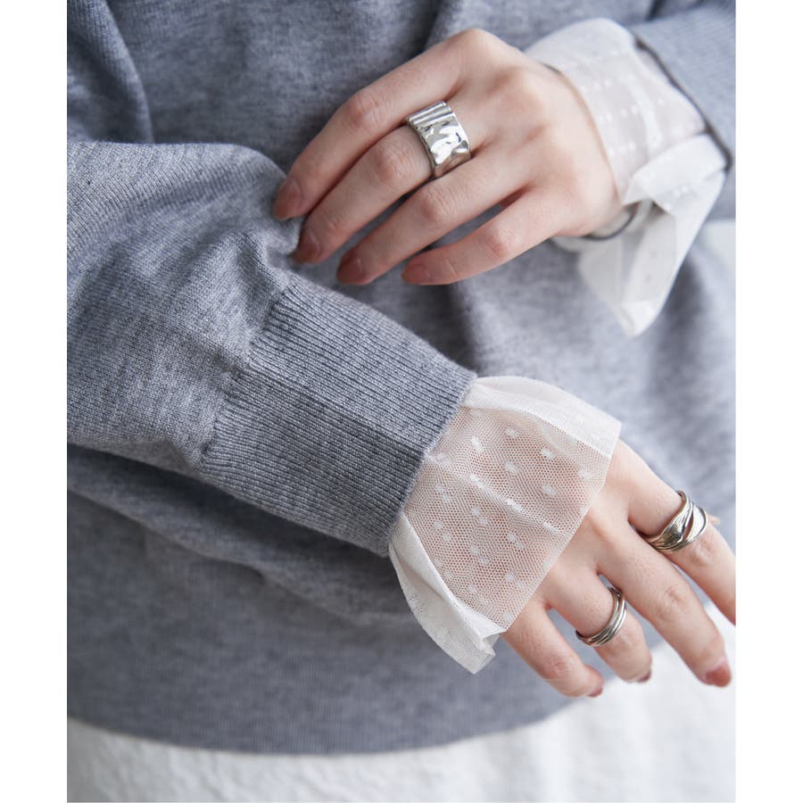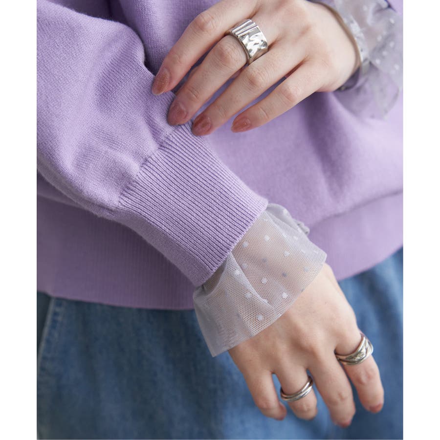 まるでレイヤードしているような、ドットチュール使いのニット。