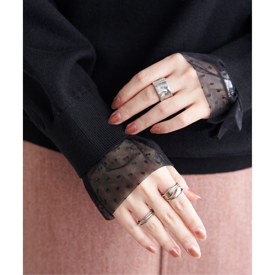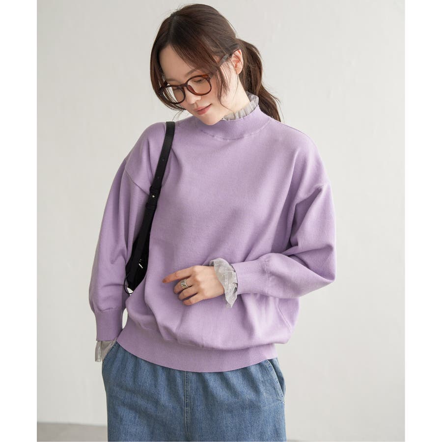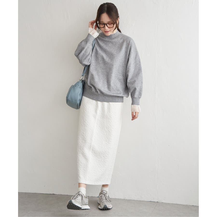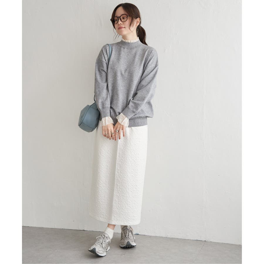 まるでレイヤードしているような、ドットチュール使いのニット。