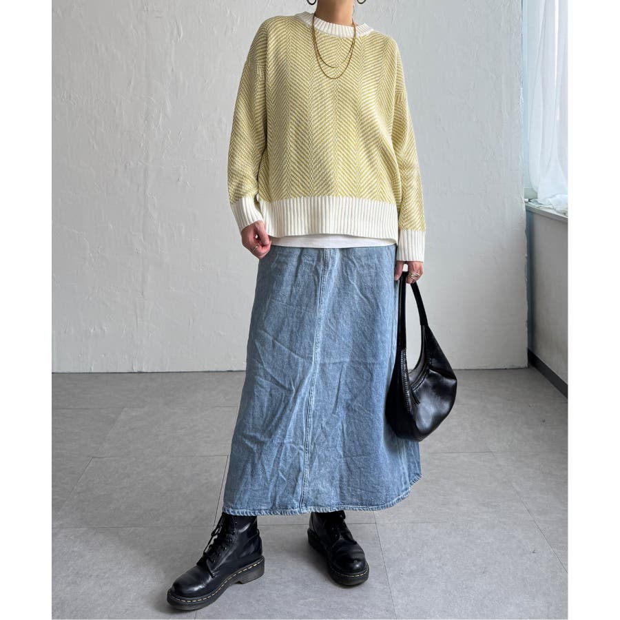 ベーシックな縦に入ったヘリンボン柄は、ニットもすっきり見せてくれる優秀デザイン。