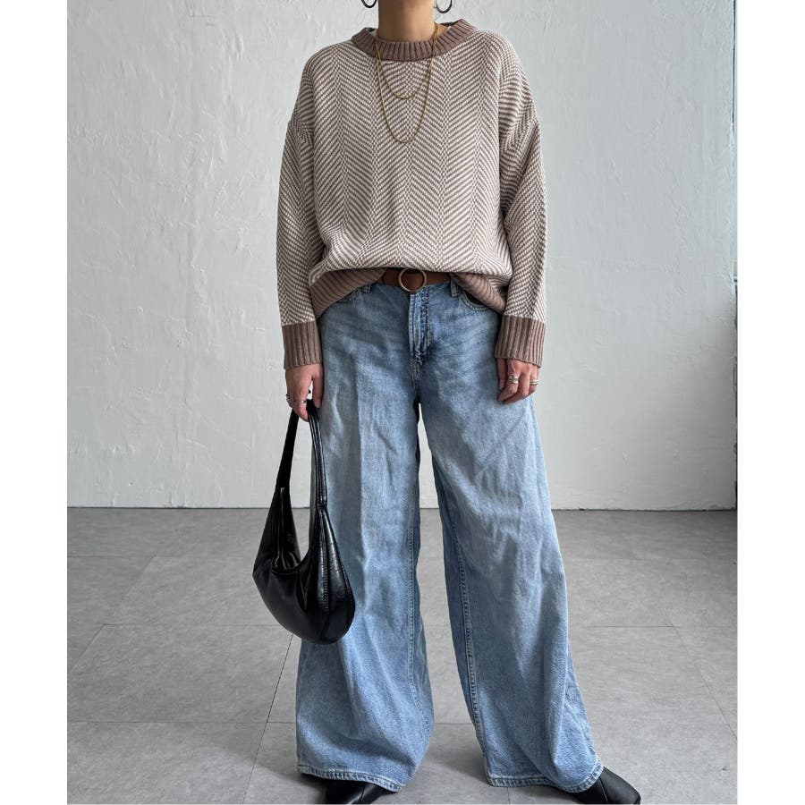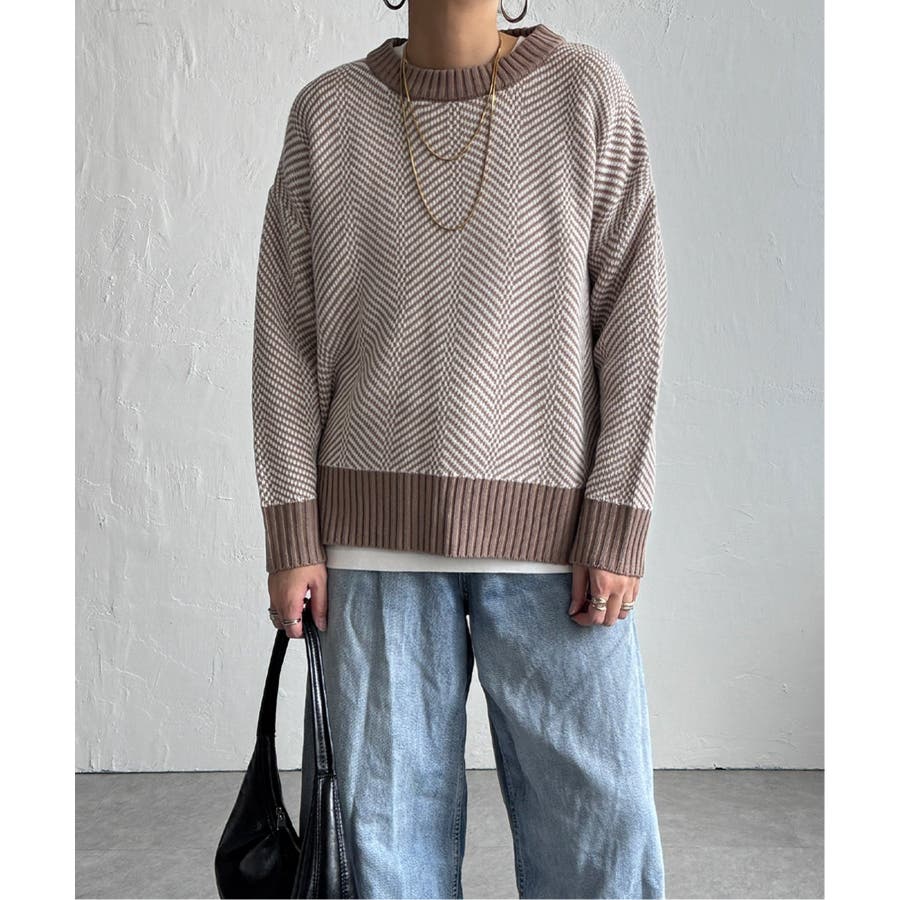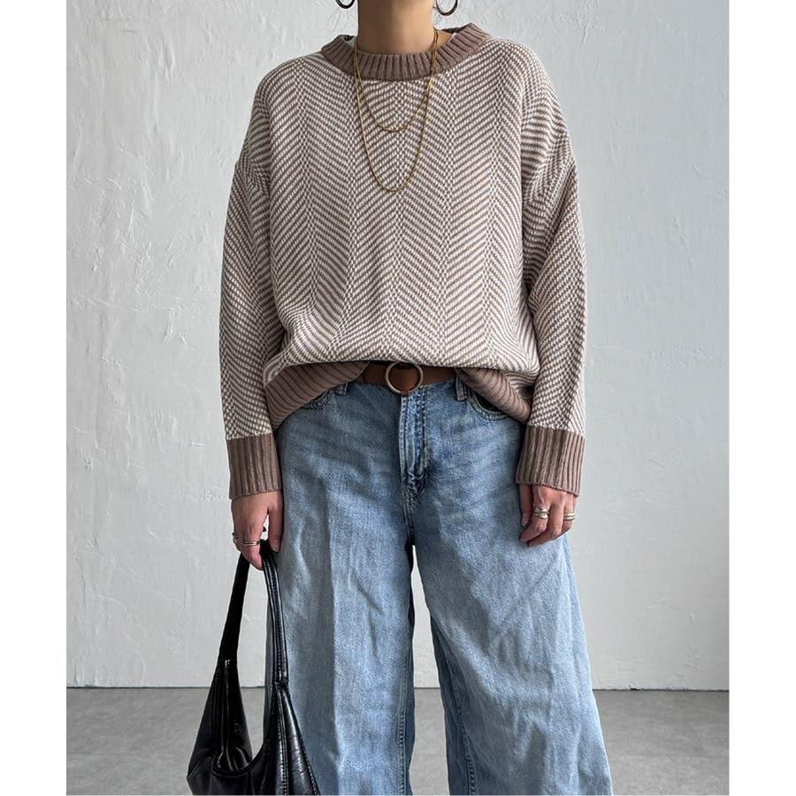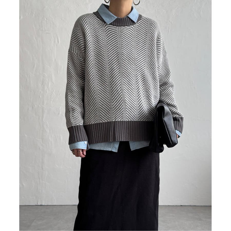 表情豊かなヘリンボン柄のニットプルオーバー。
