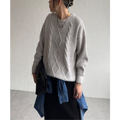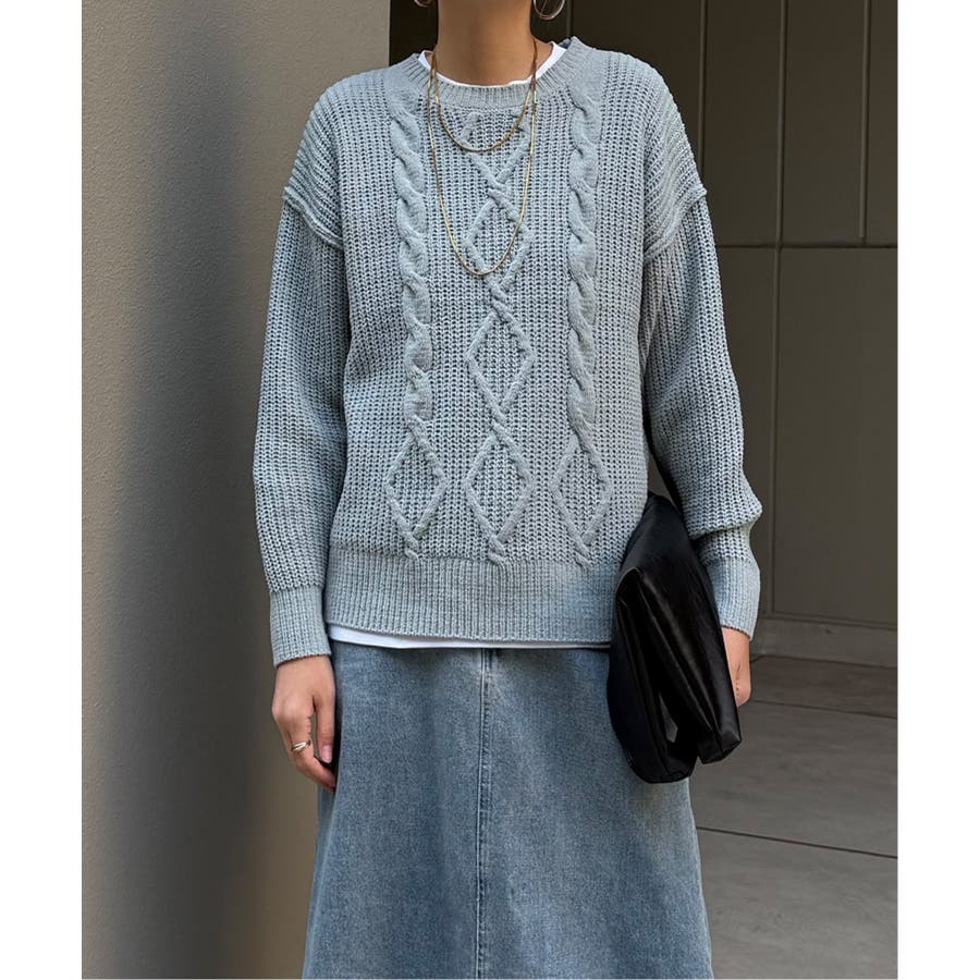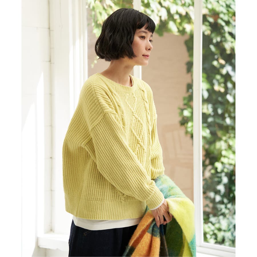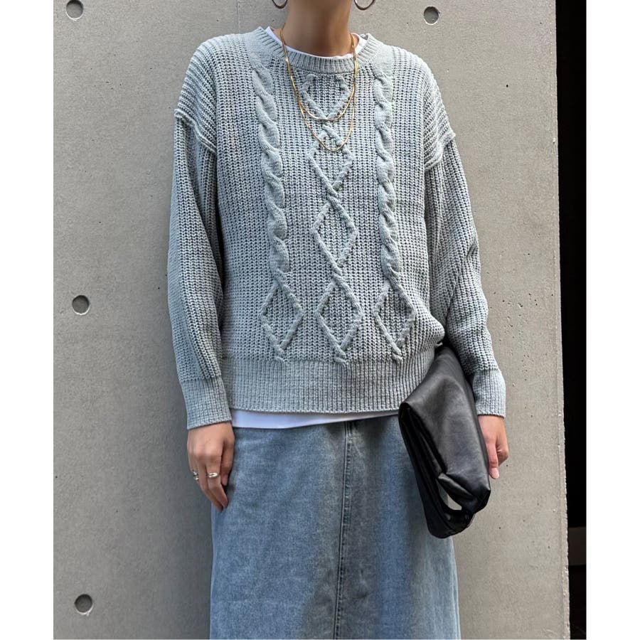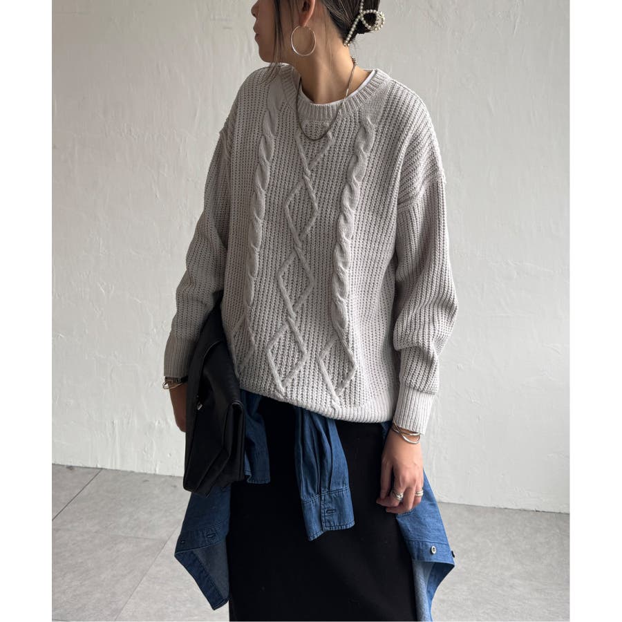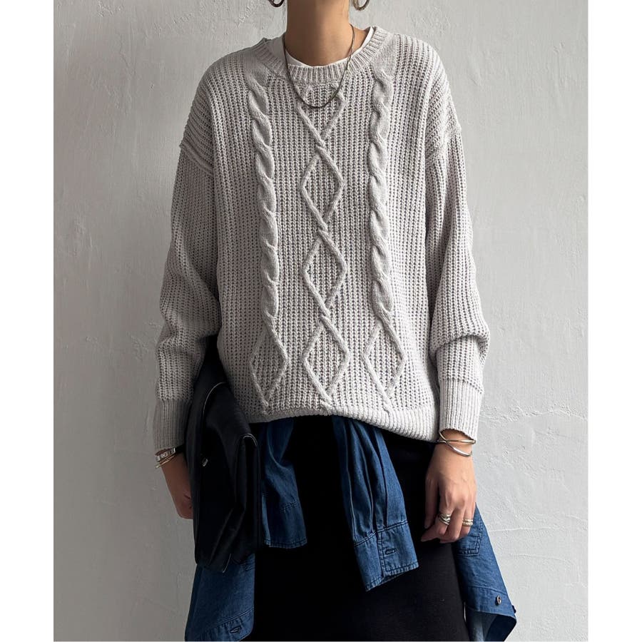 立体感のあるケーブル編みが、シンプルな着こなしにも奥行きを与えてくれます。