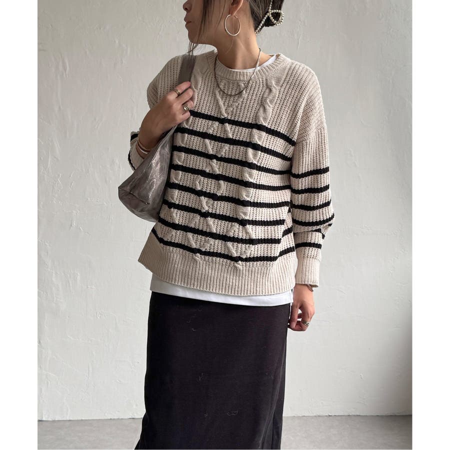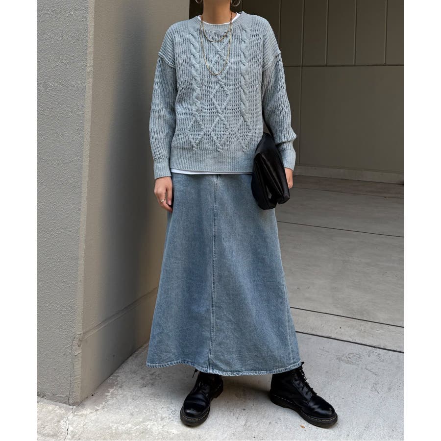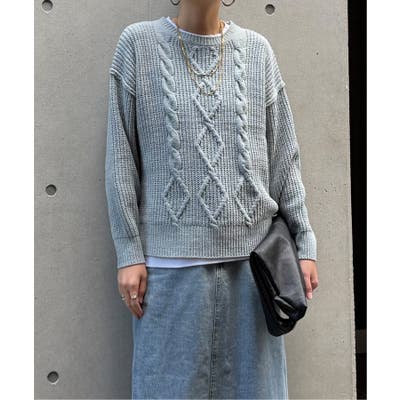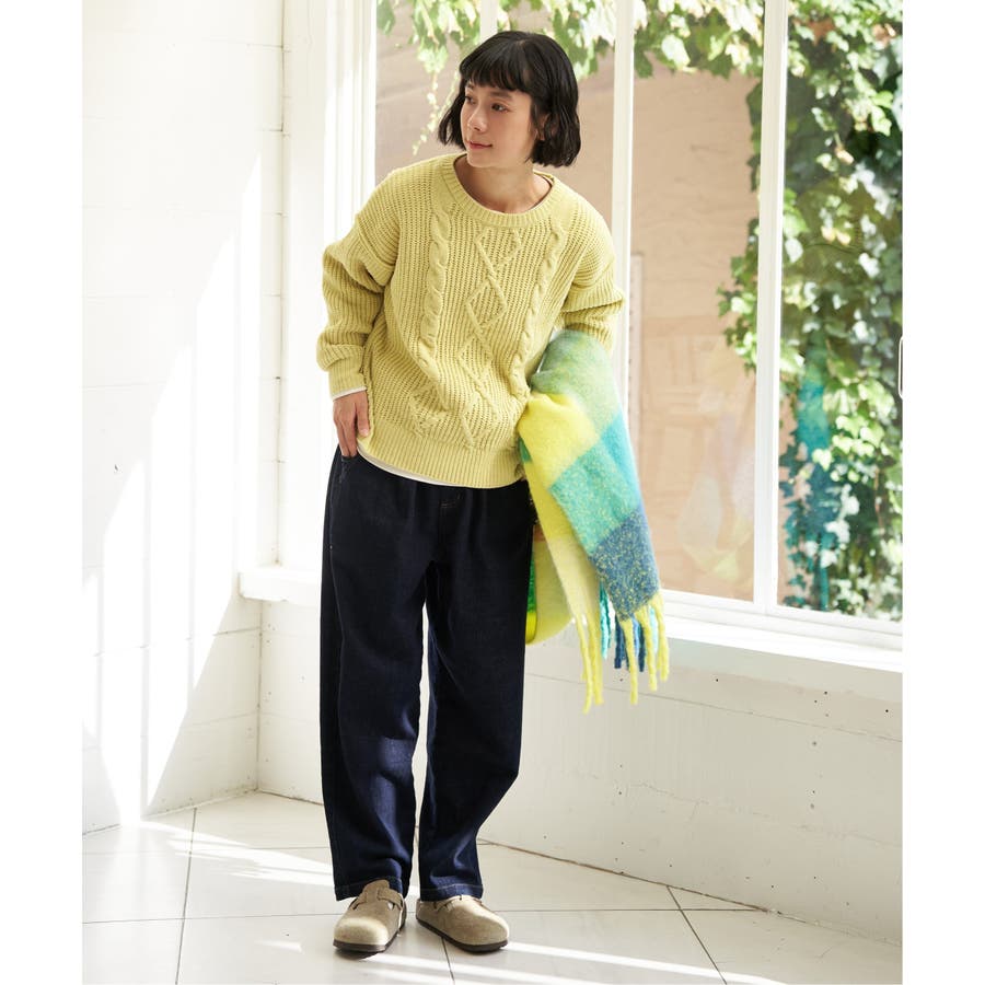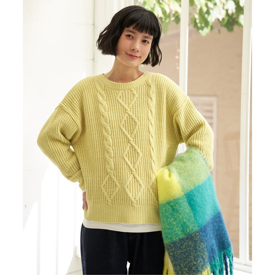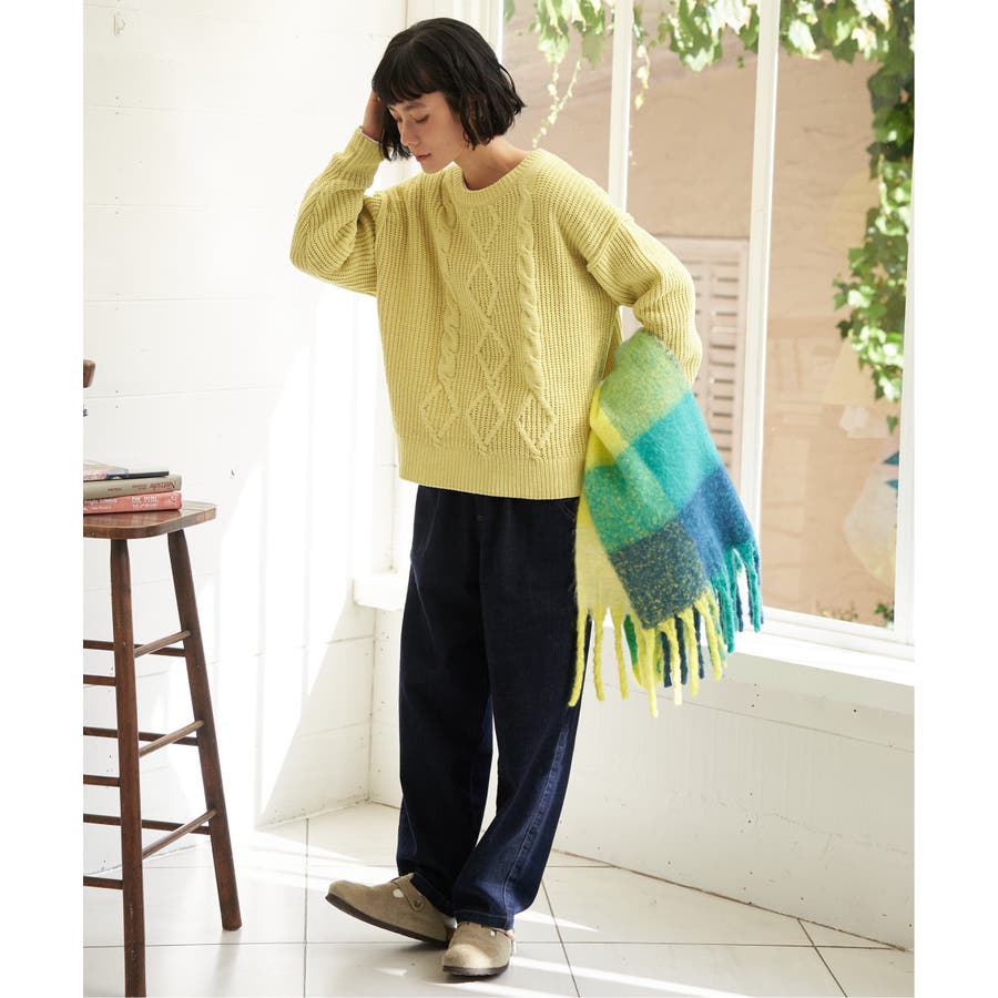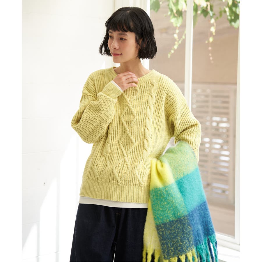 立体感のあるケーブル編みが、シンプルな着こなしにも奥行きを与えてくれます。