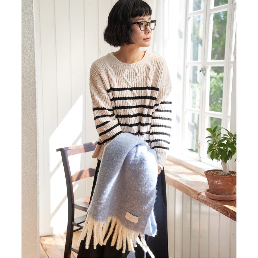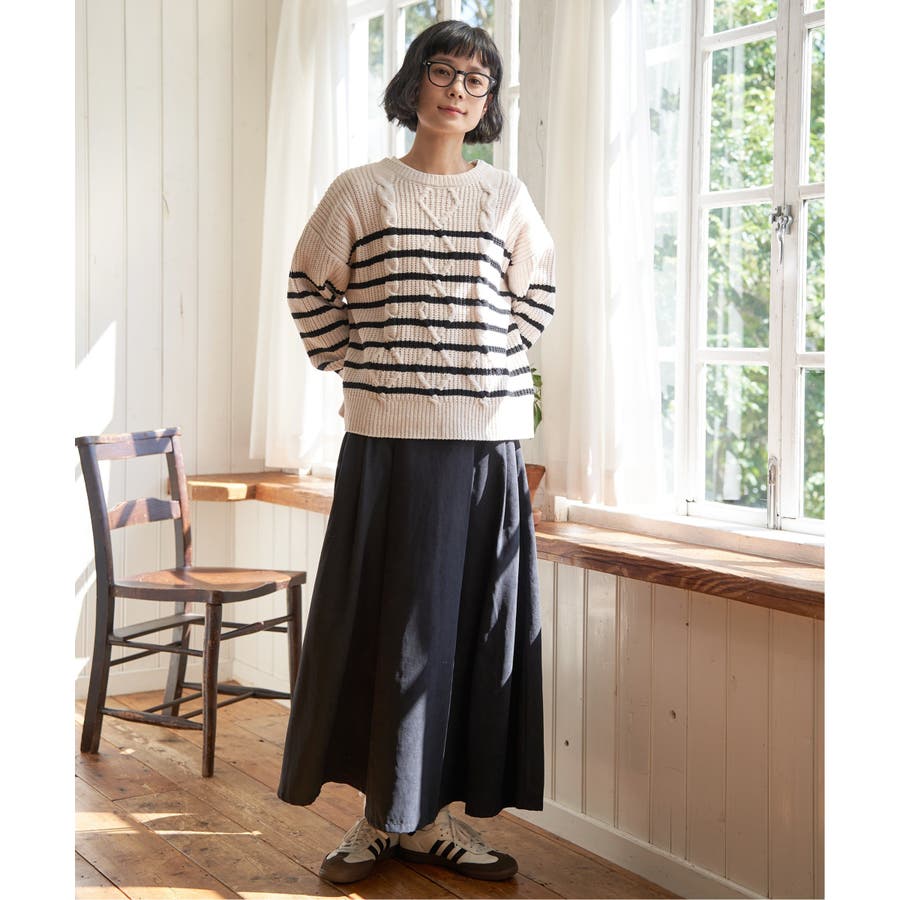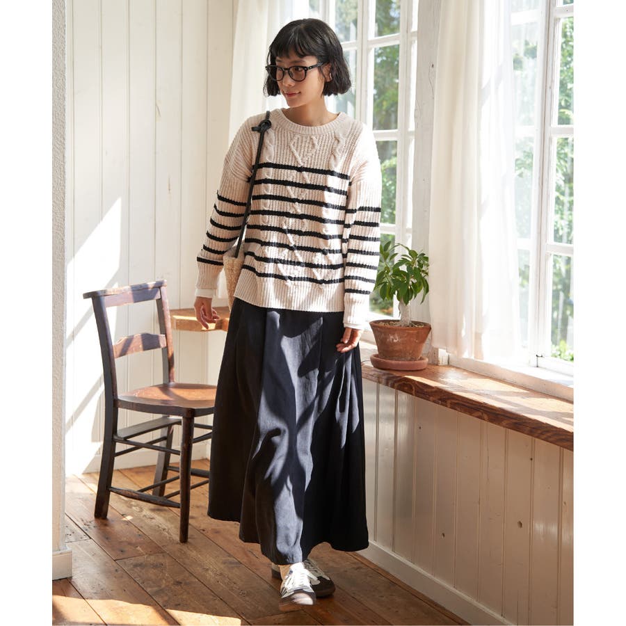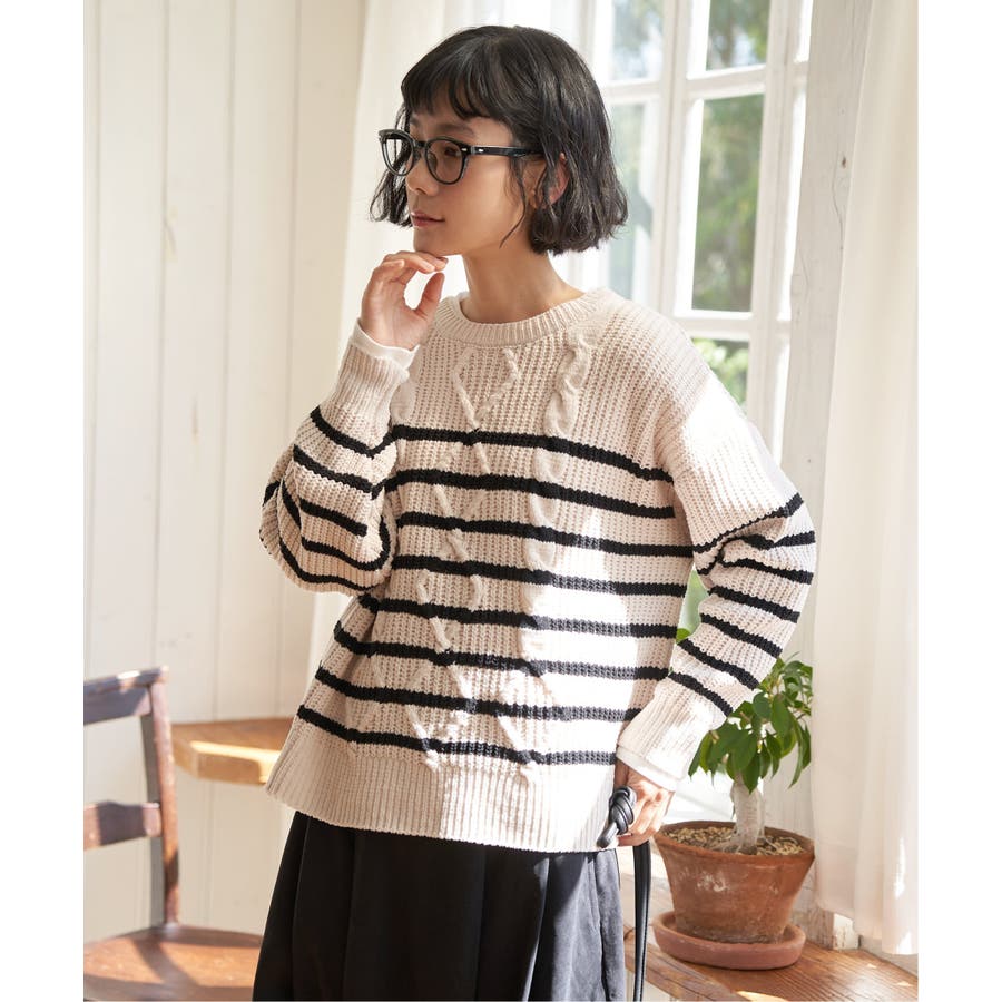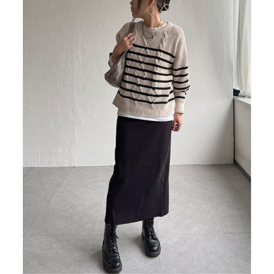 立体感のあるケーブル編みが、シンプルな着こなしにも奥行きを与えてくれます。