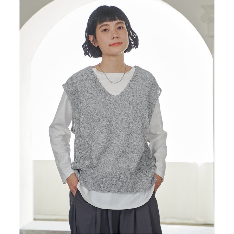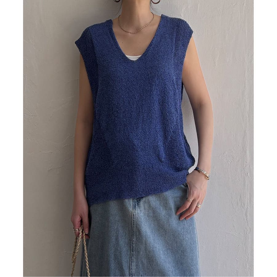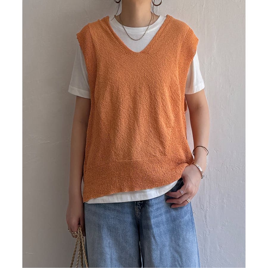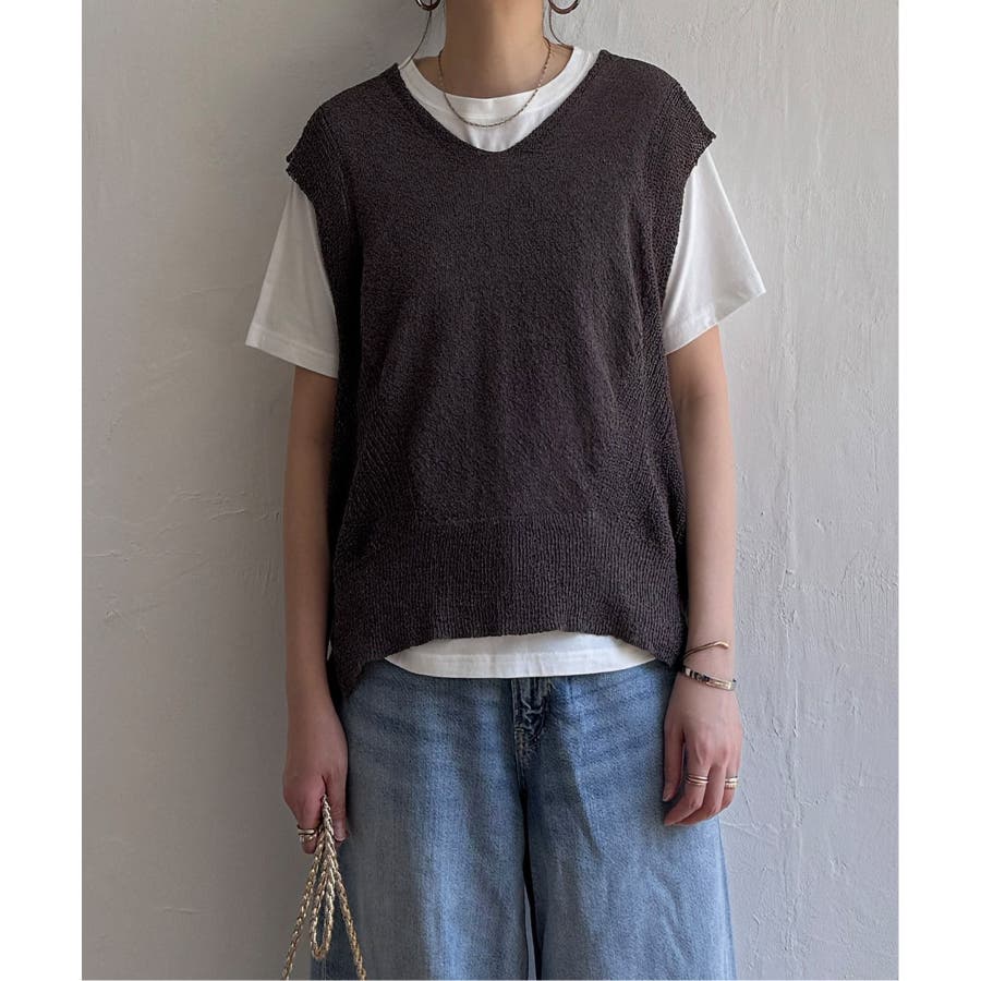 アクセサリーのように気軽にレイヤードできる便利なベストです。