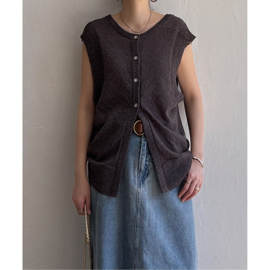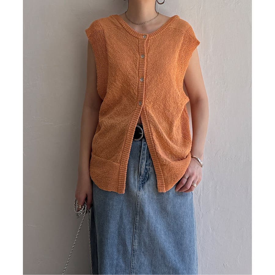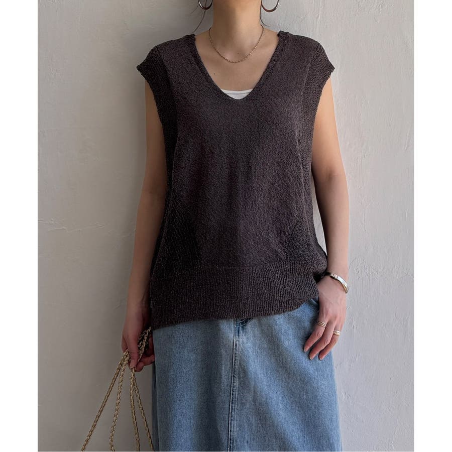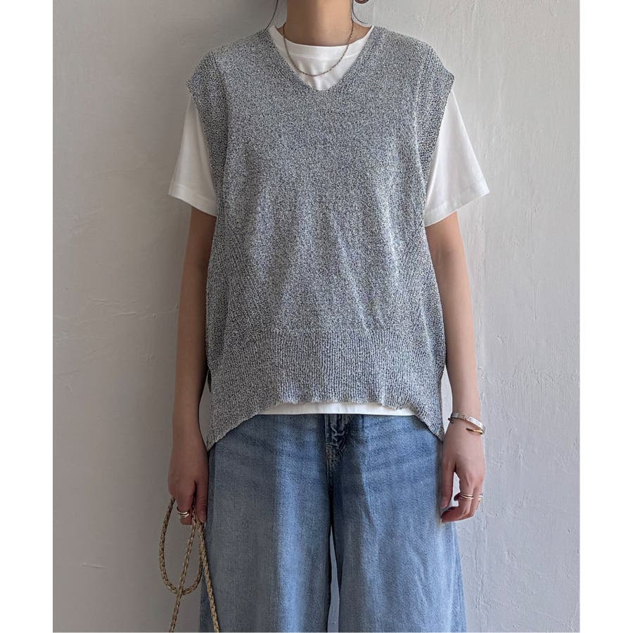 アクセサリーのように気軽にレイヤードできる便利なベストです。