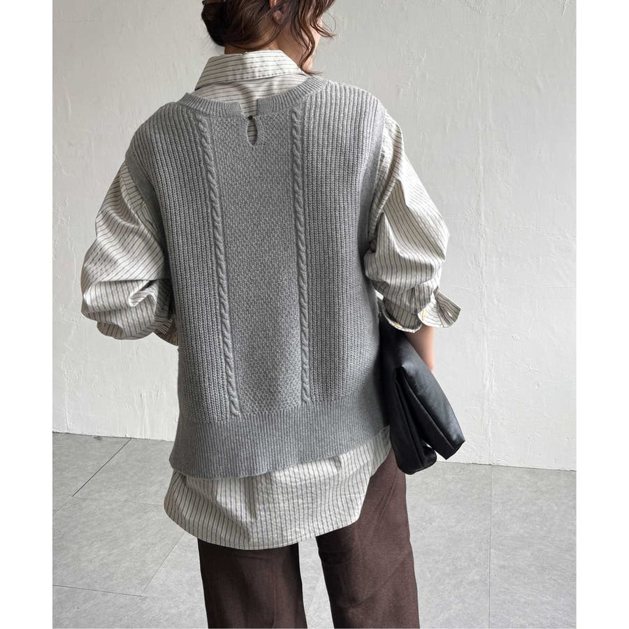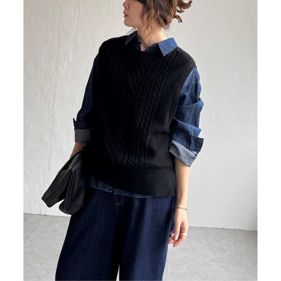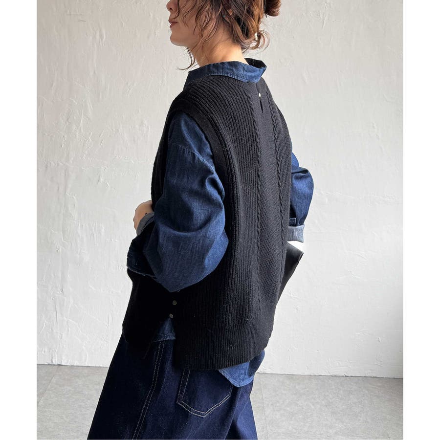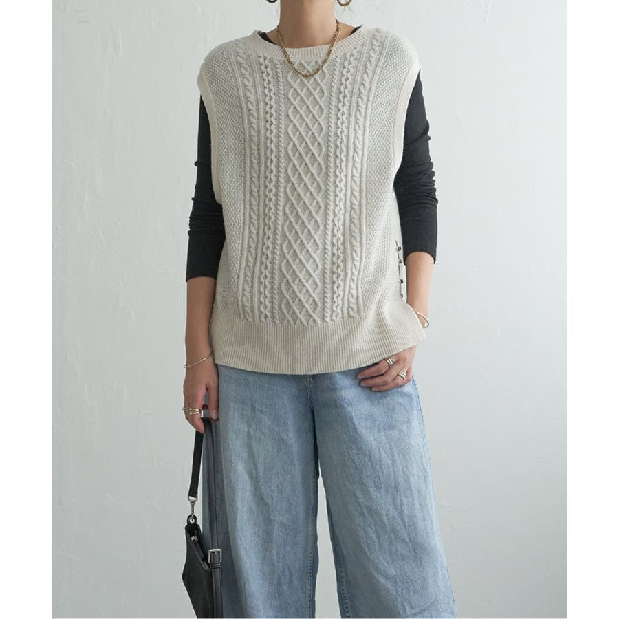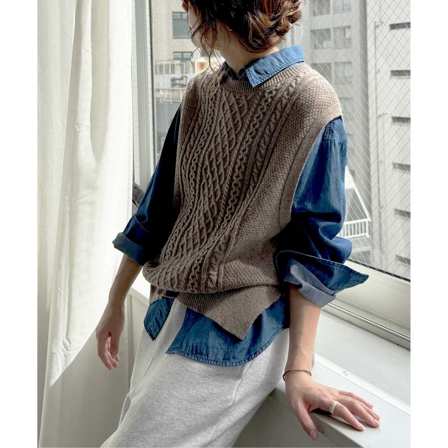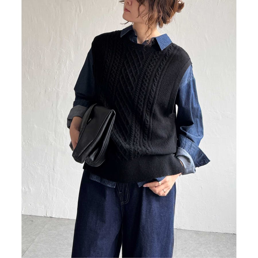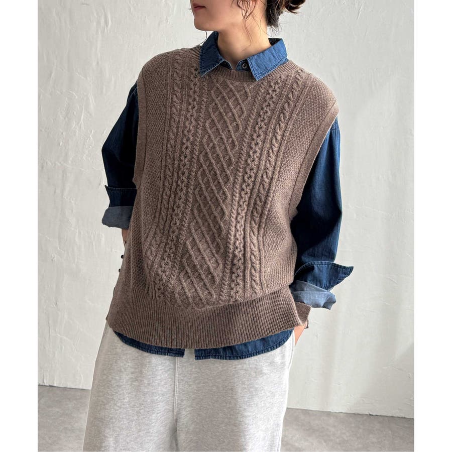 立体感のあるケーブル編みが、コーディネートにあたたかみと奥行きをプラスしてくれるニットベスト。