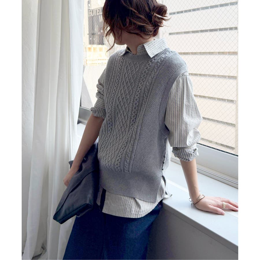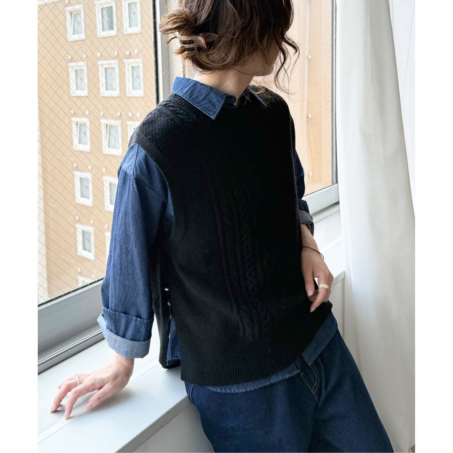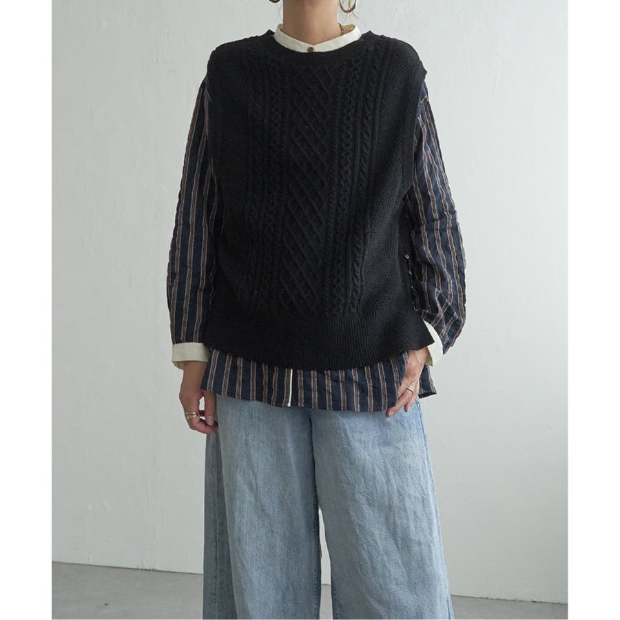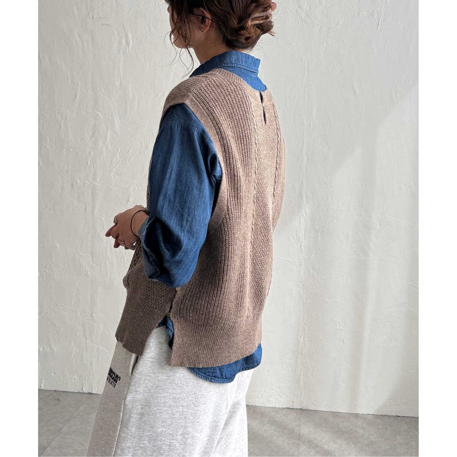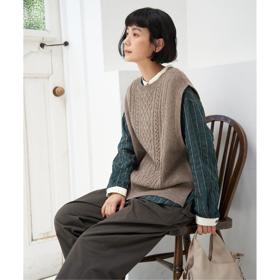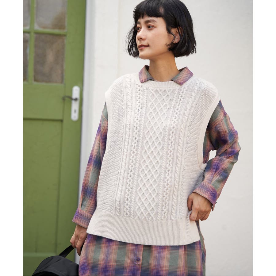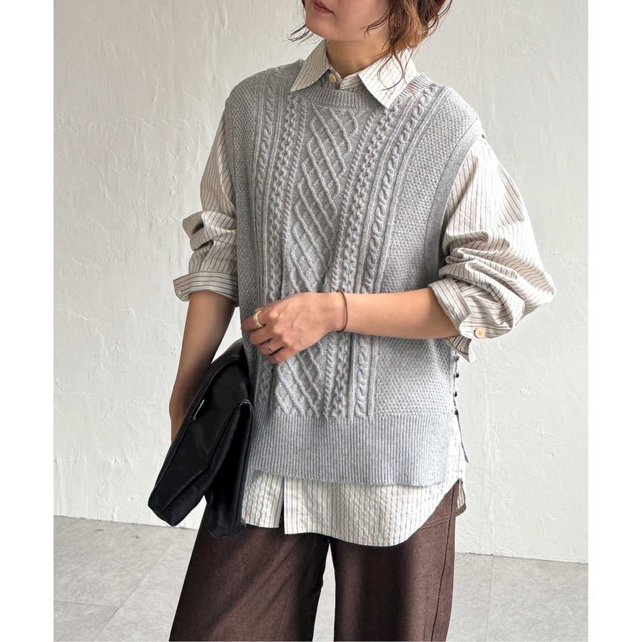 立体感のあるケーブル編みが、コーディネートにあたたかみと奥行きをプラスしてくれるニットベスト。
