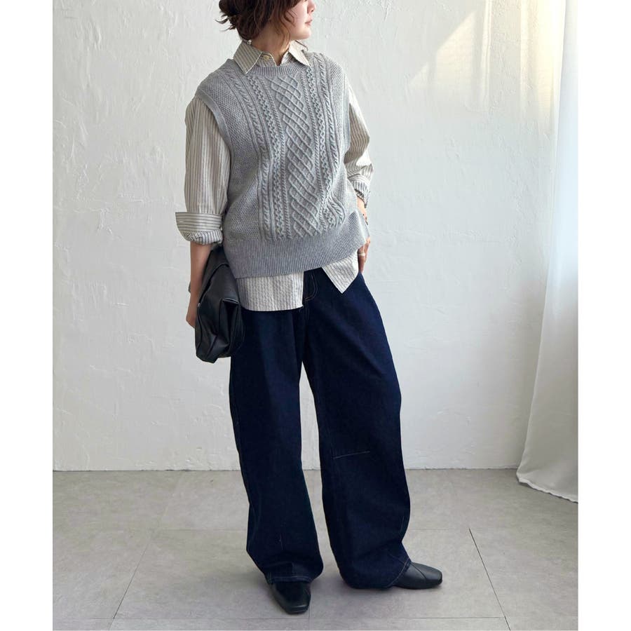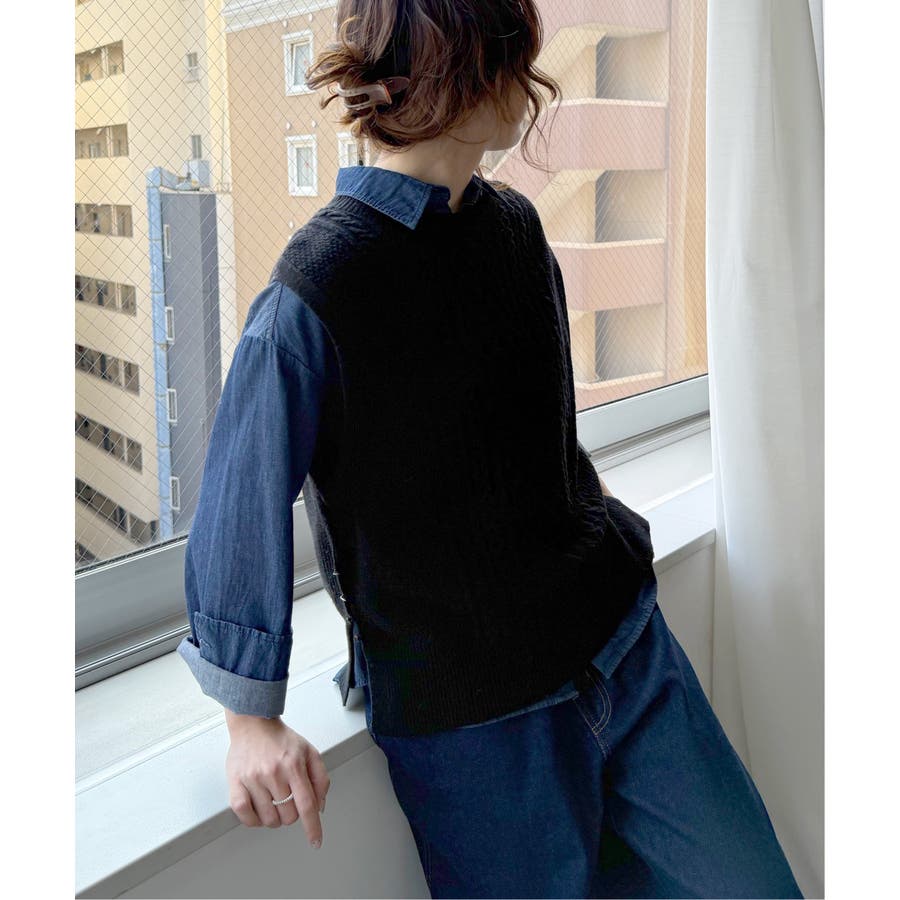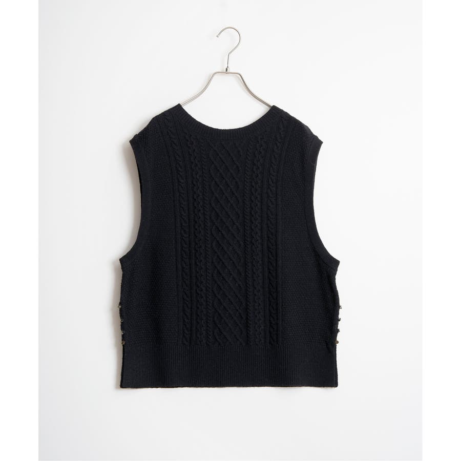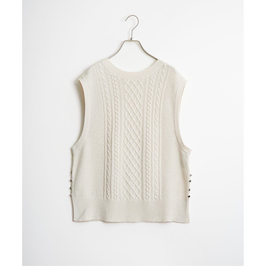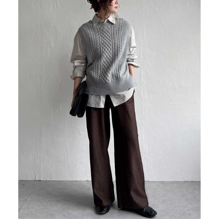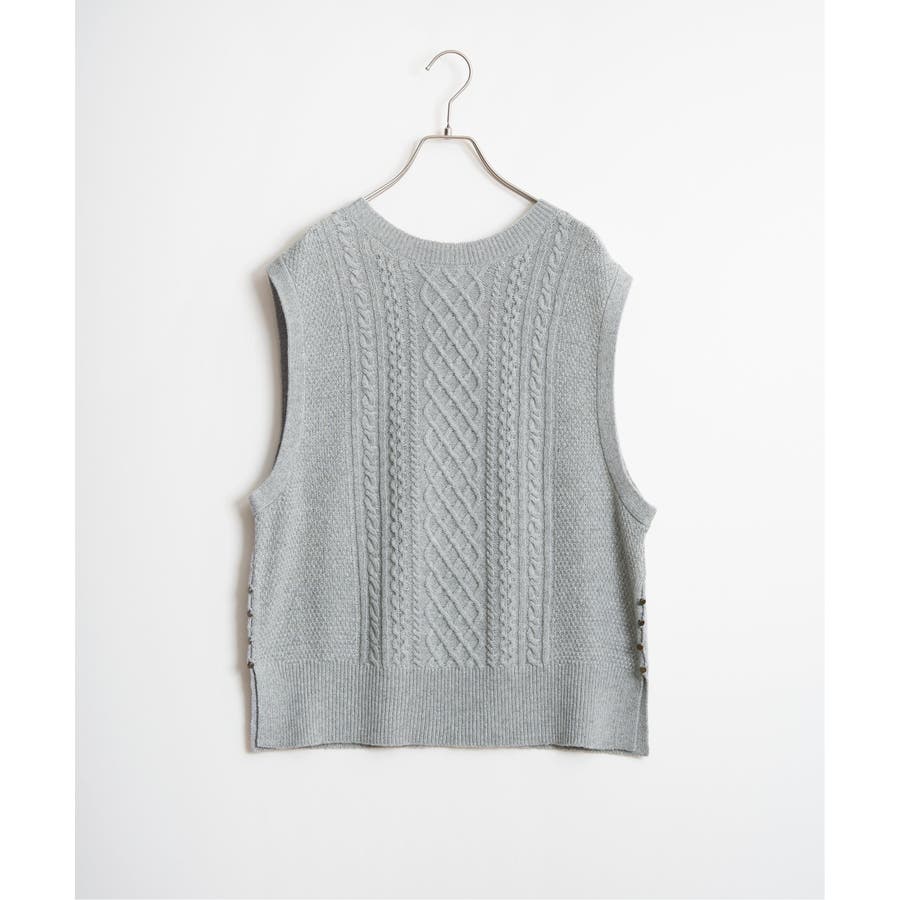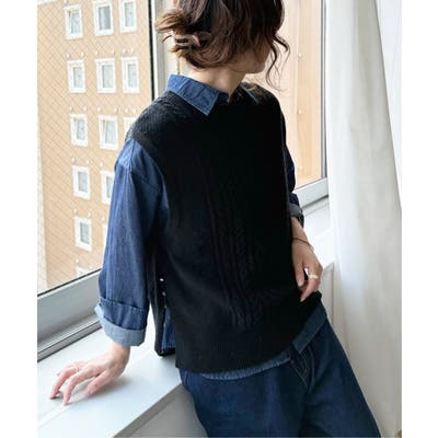 立体感のあるケーブル編みが、コーディネートにあたたかみと奥行きをプラスしてくれるニットベスト。