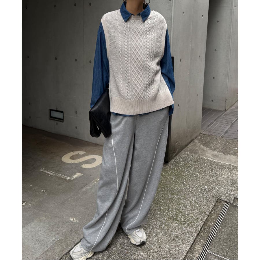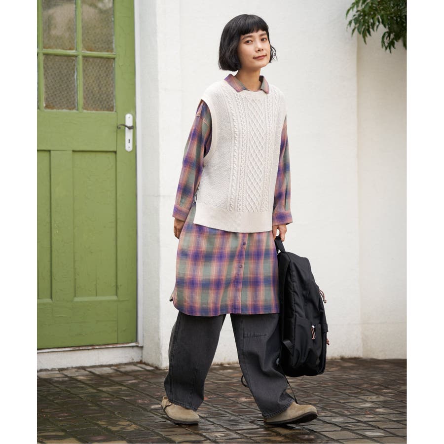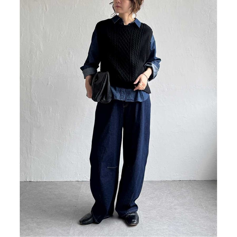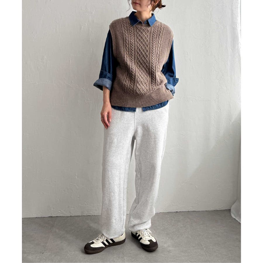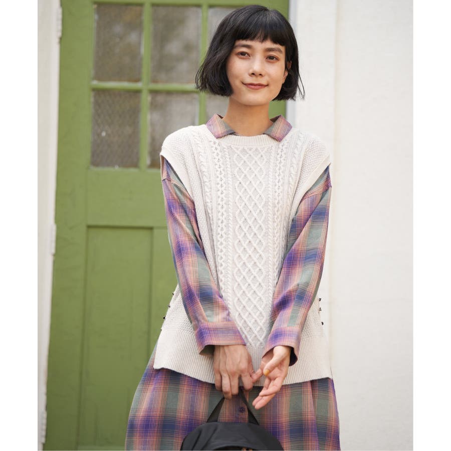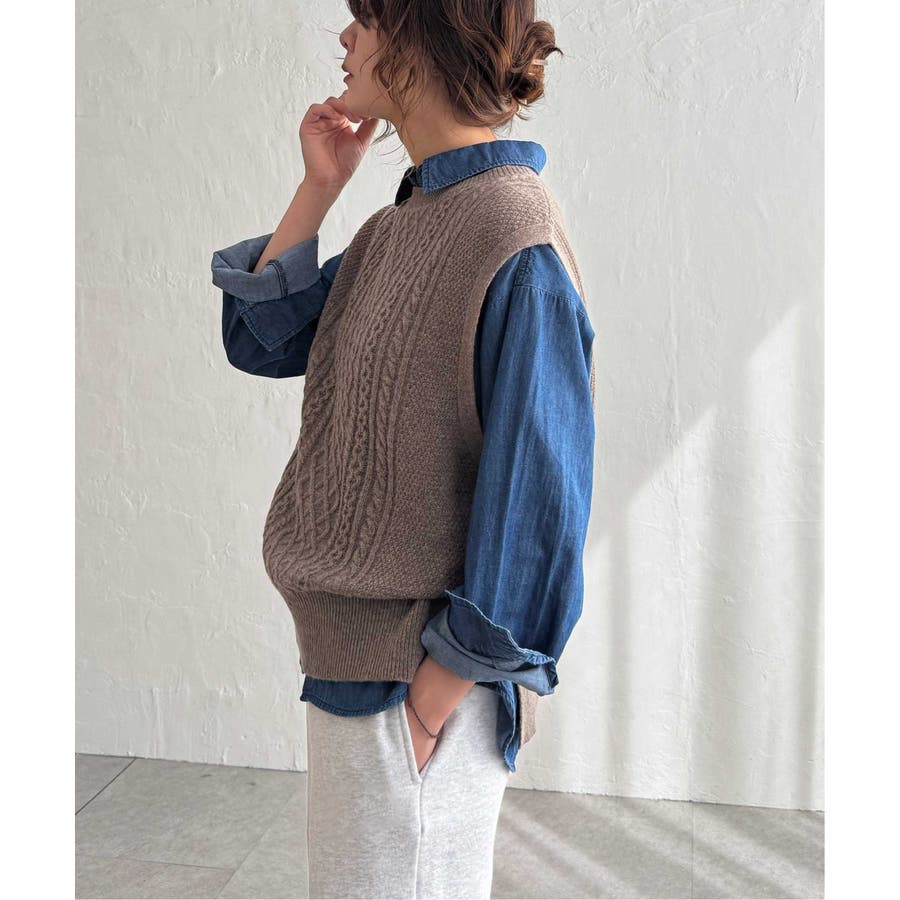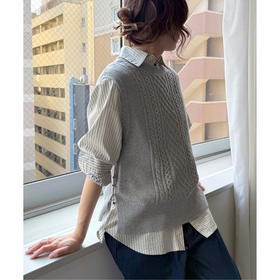 立体感のあるケーブル編みが、コーディネートにあたたかみと奥行きをプラスしてくれるニットベスト。