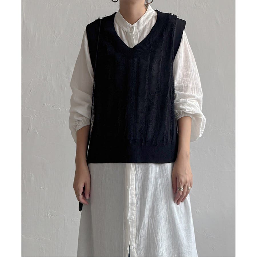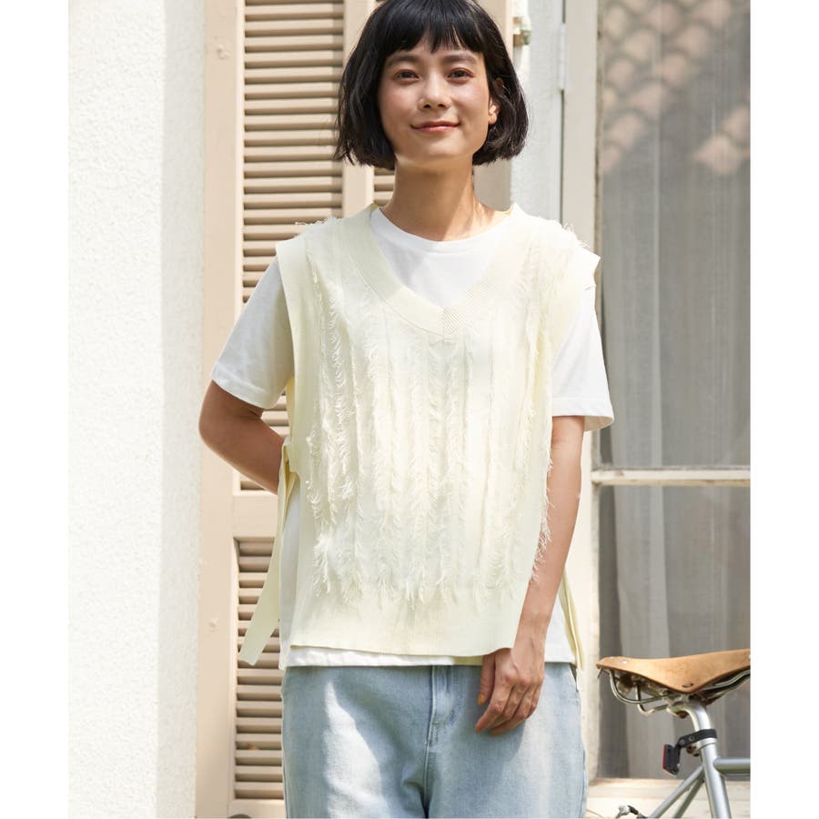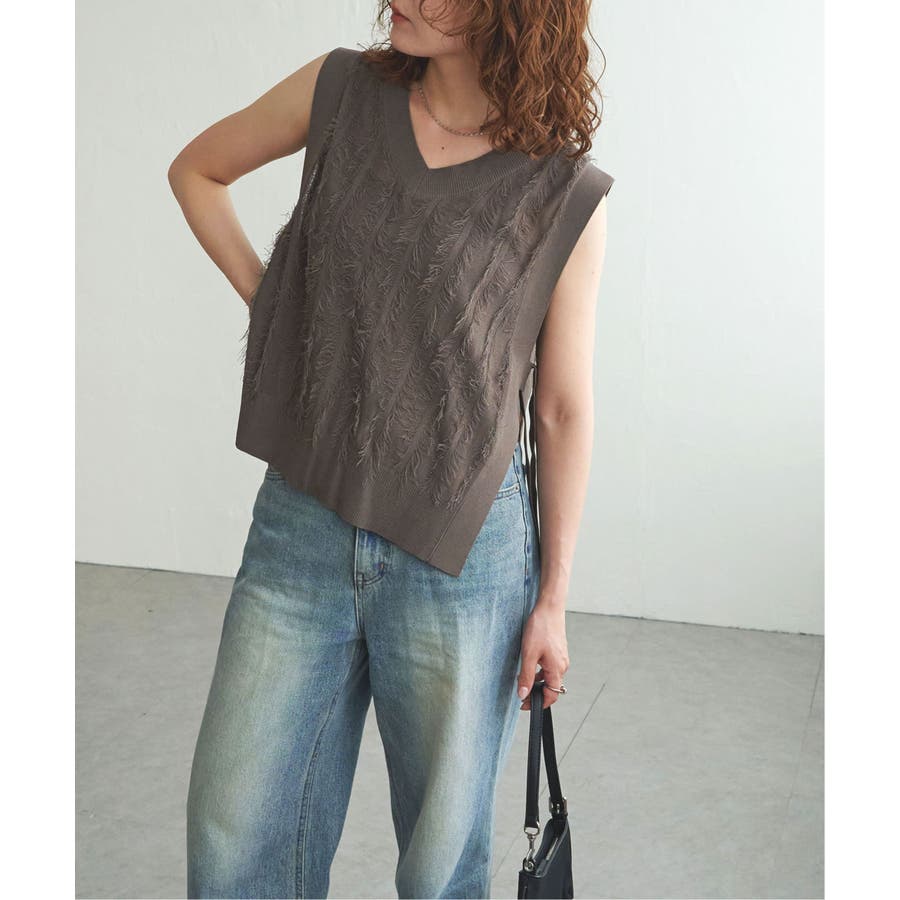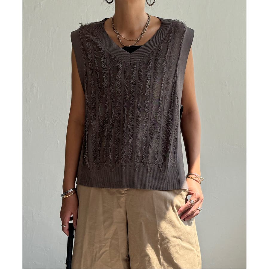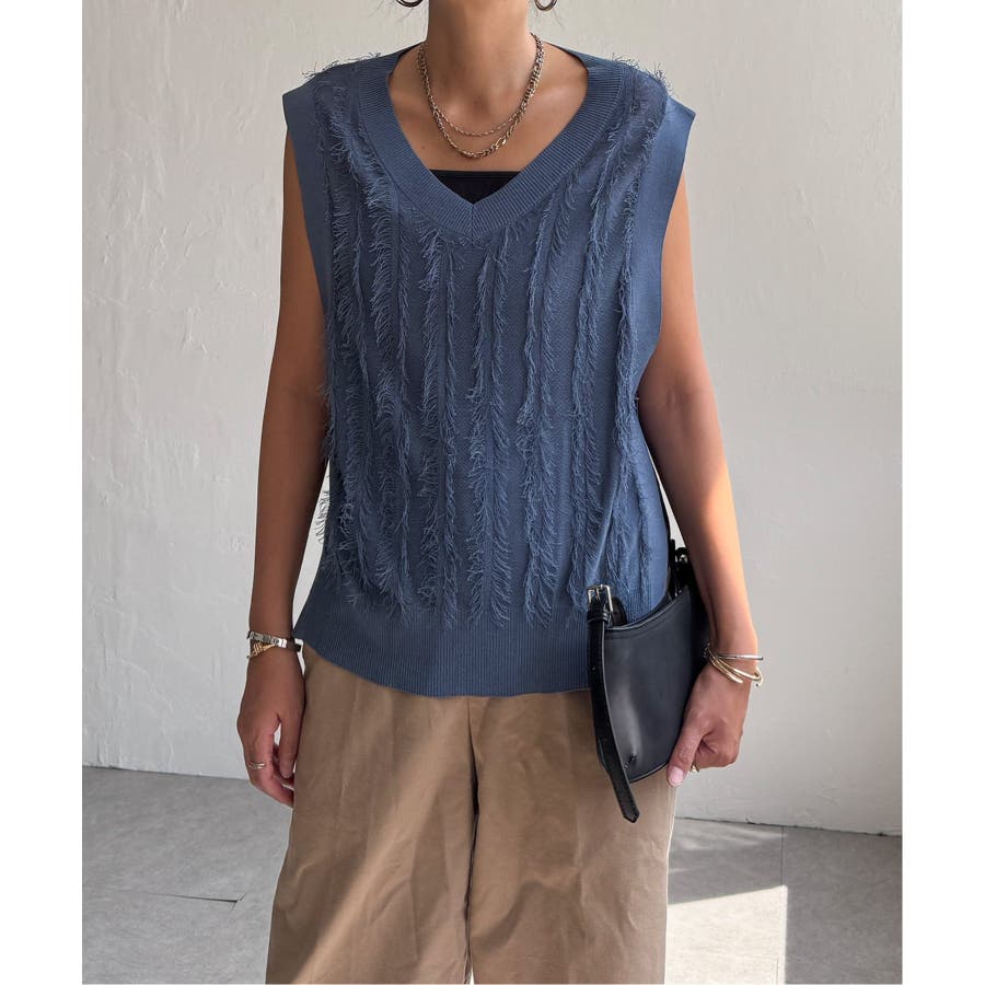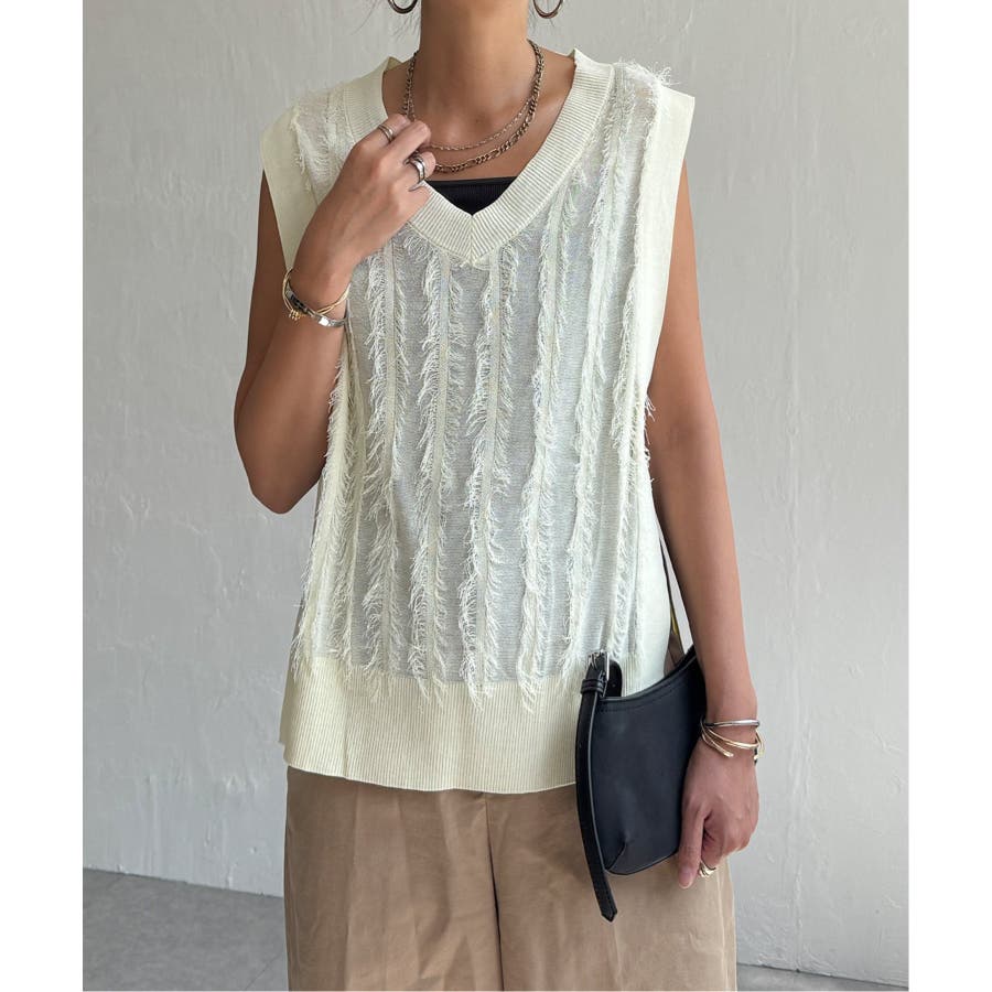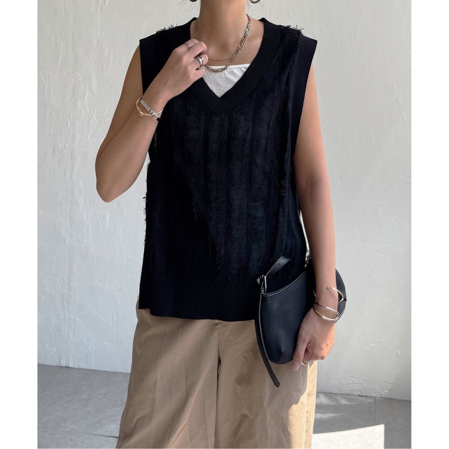 旬な印象のフリンジ使いがポイントのニットベスト。