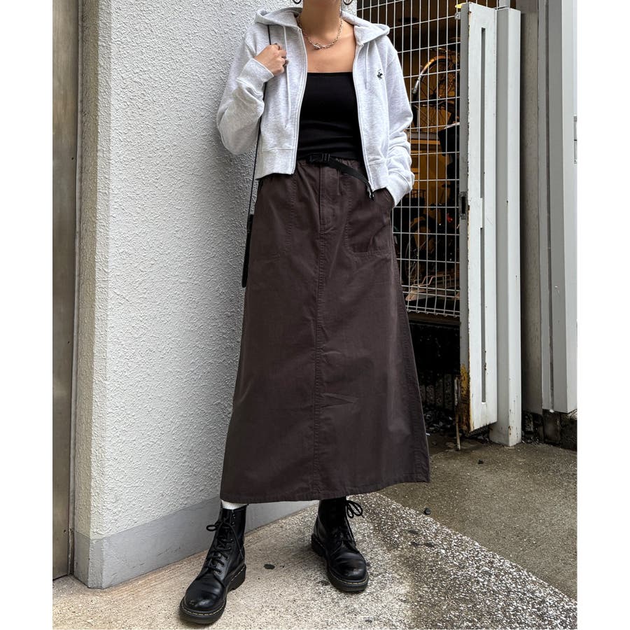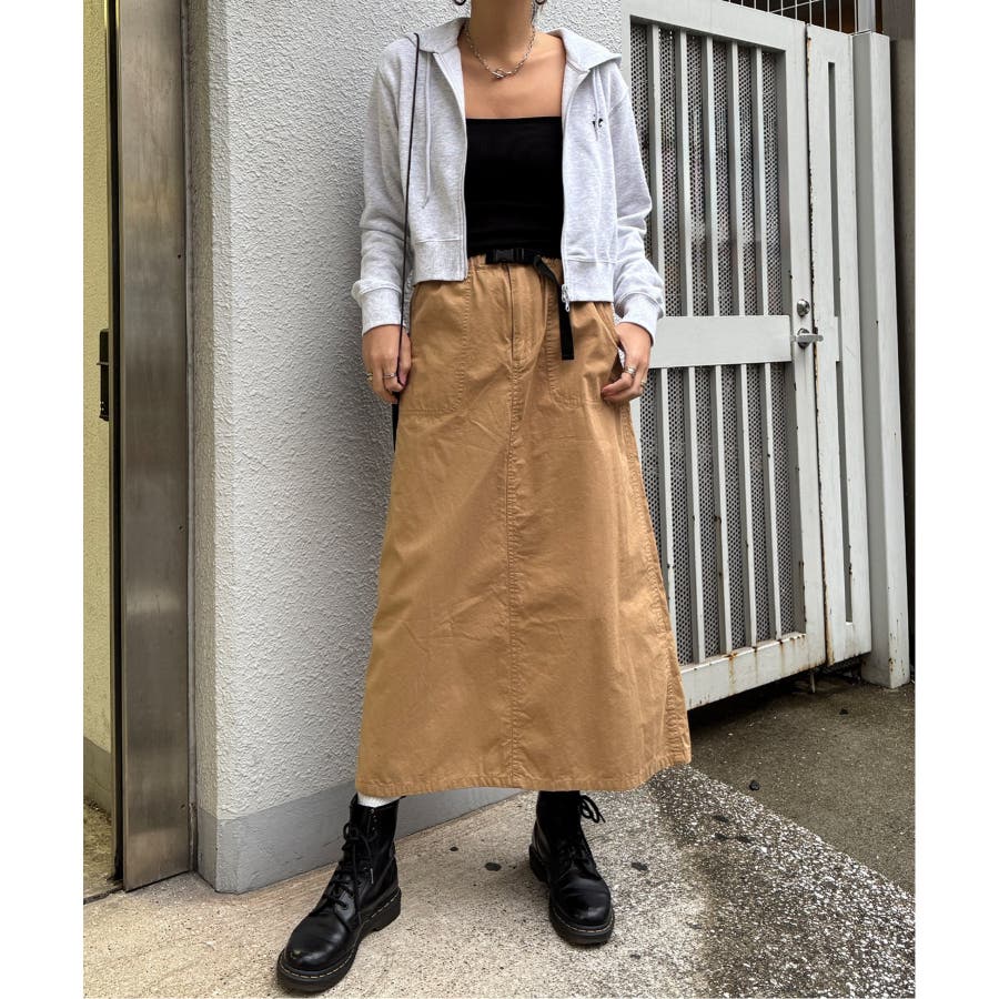 カジュアルなワークテイストを台形スカートに落とし込んだスカート。