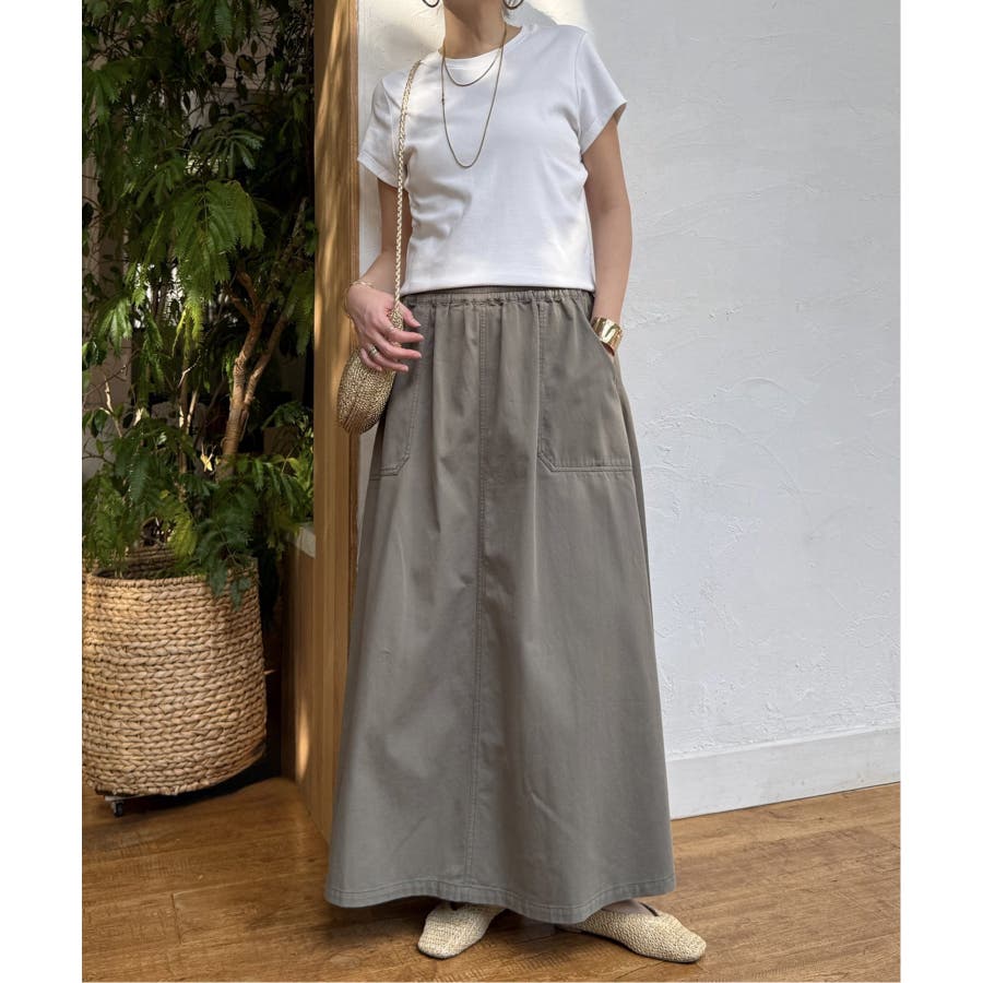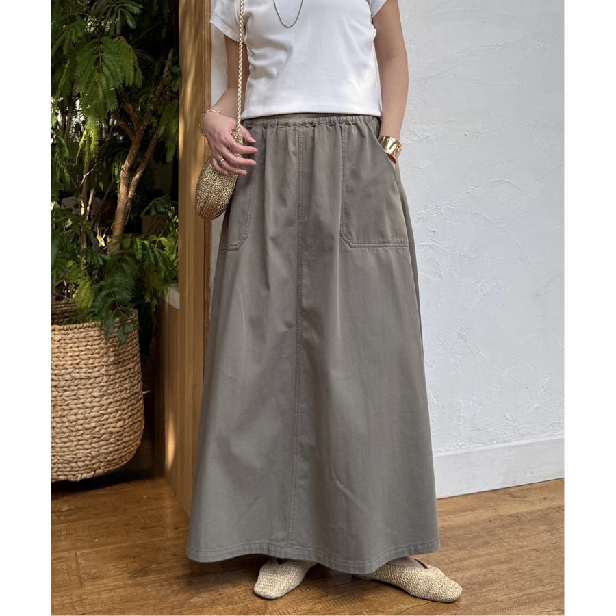 ワークポケットがアクセントのフレアスカート。