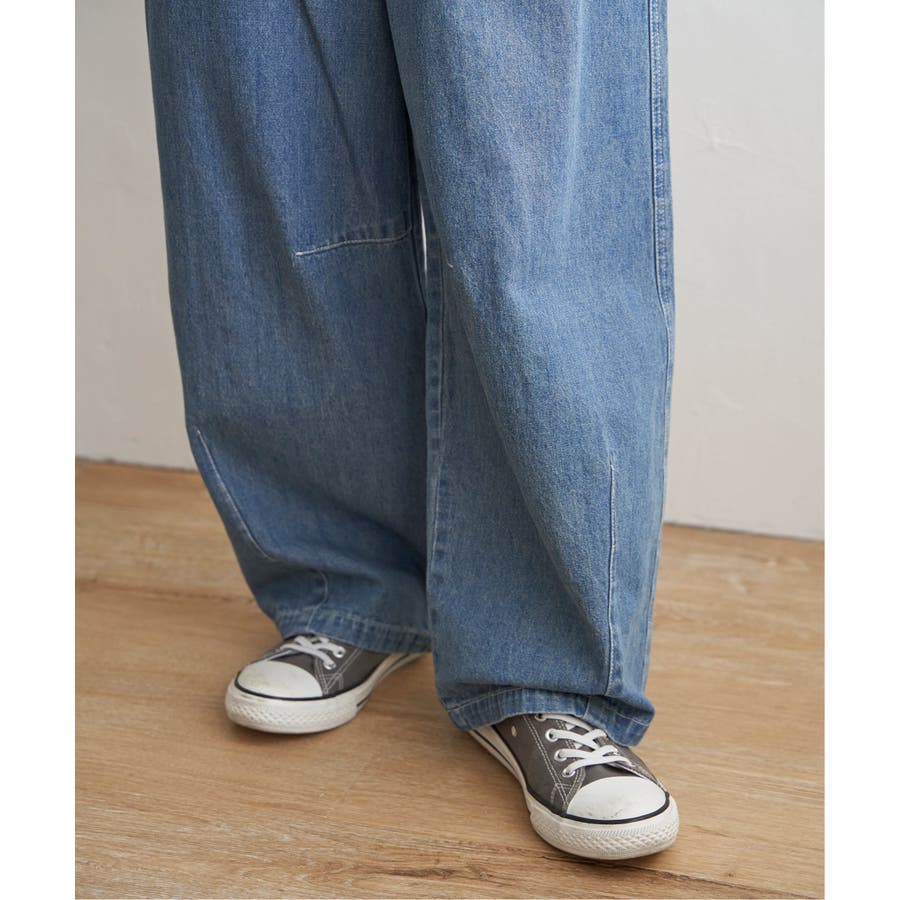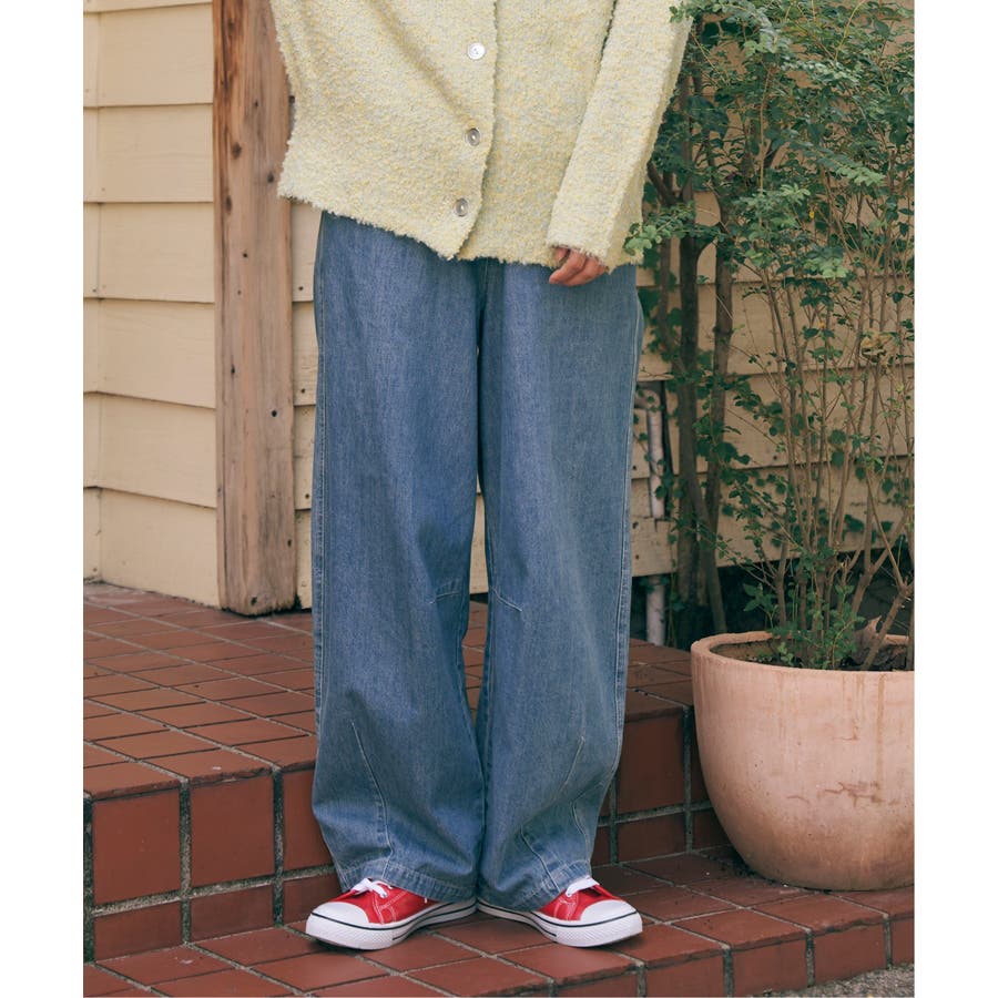裾上にステッチを加えカーブを描いたラインが特徴のカーブデニムパンツ。