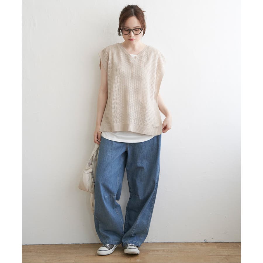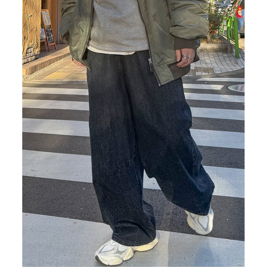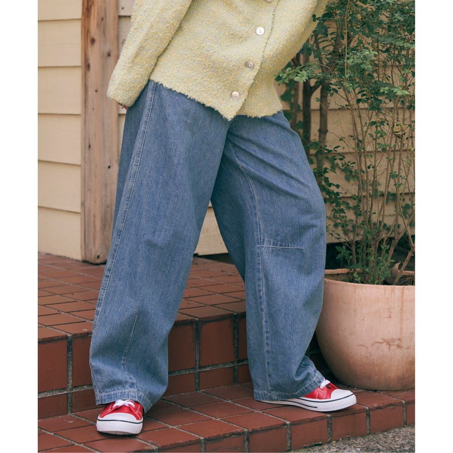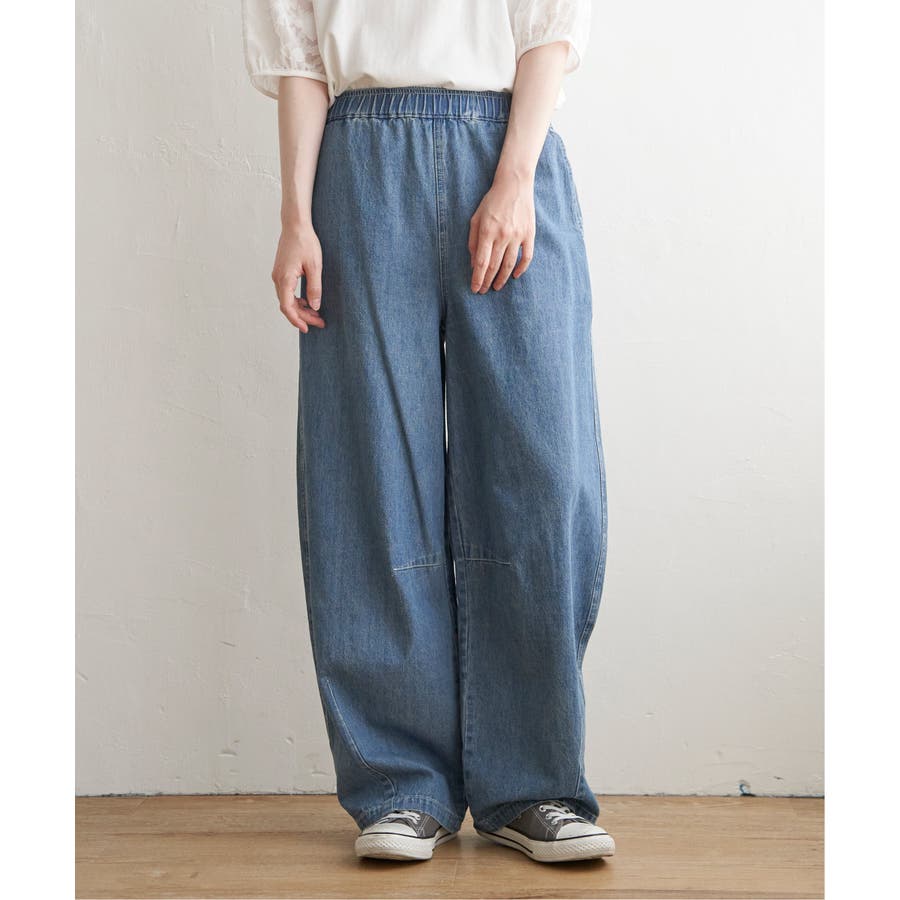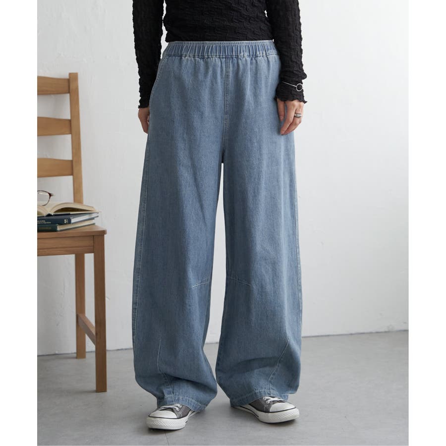 カーブデニム、ウエストゴム仕様。